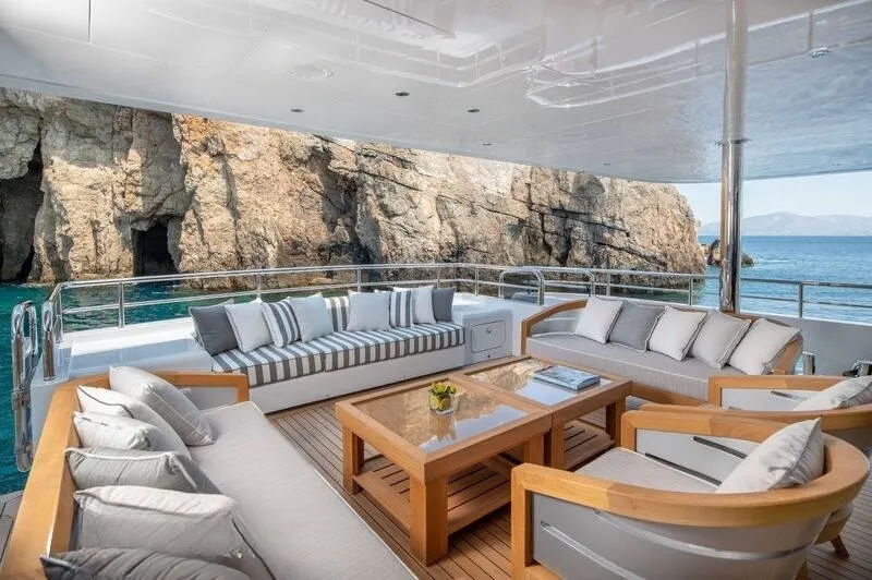 Boji offers a sanctuary of comfort and elegance with five beautifully appointed cabins. Wake up to breathtaking sea views in the master suite, complete with a private study and opulent his-and-her bathroom. Additional double and twin cabins provide a restful retreat for up to 11 guests, each promising a gentle awakening to the sound of waves. The accommodations are designed to cater to families and friends alike, blending privacy and togetherness in perfect harmony.