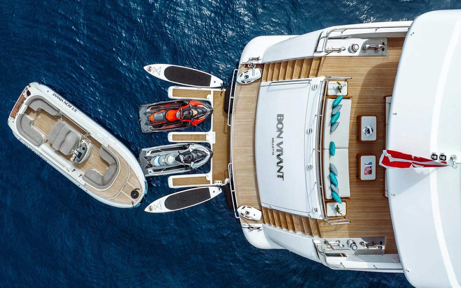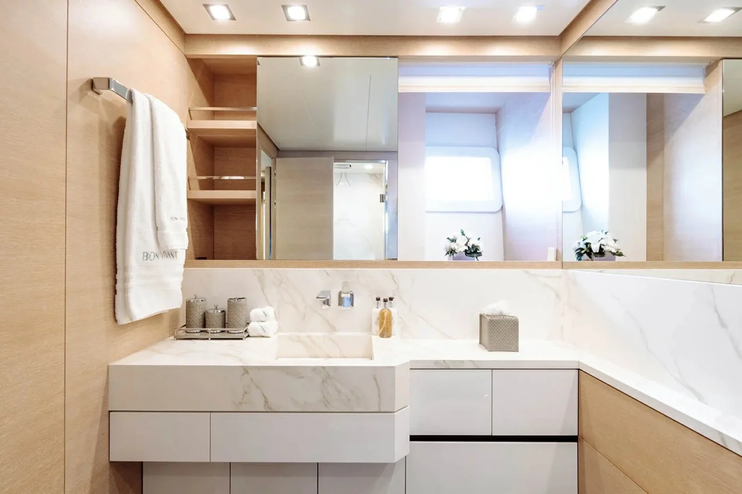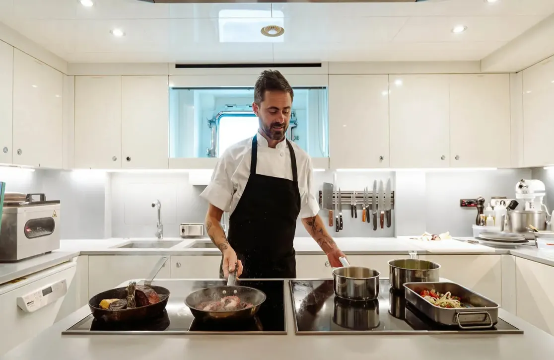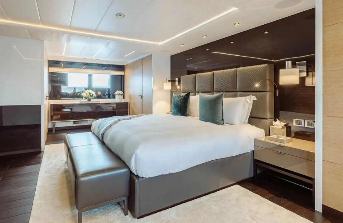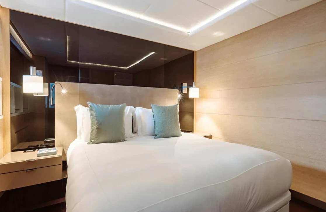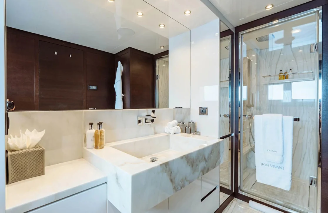 Bon Vivant welcomes up to 12 guests across six impeccably designed cabins, each offering a haven of tranquility and style. Wake up to the gentle sound of waves in the master suite, located conveniently on the main deck, or enjoy the plush surroundings of the VIP and double cabins. For larger groups, the three twin cabins offer flexible arrangements without compromising on comfort. Each room is a sanctuary, promising restful nights and rejuvenating mornings, as the sea breeze whispers through the portholes.
