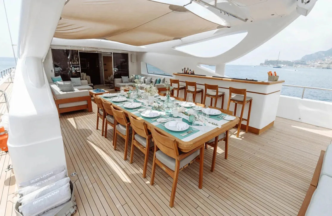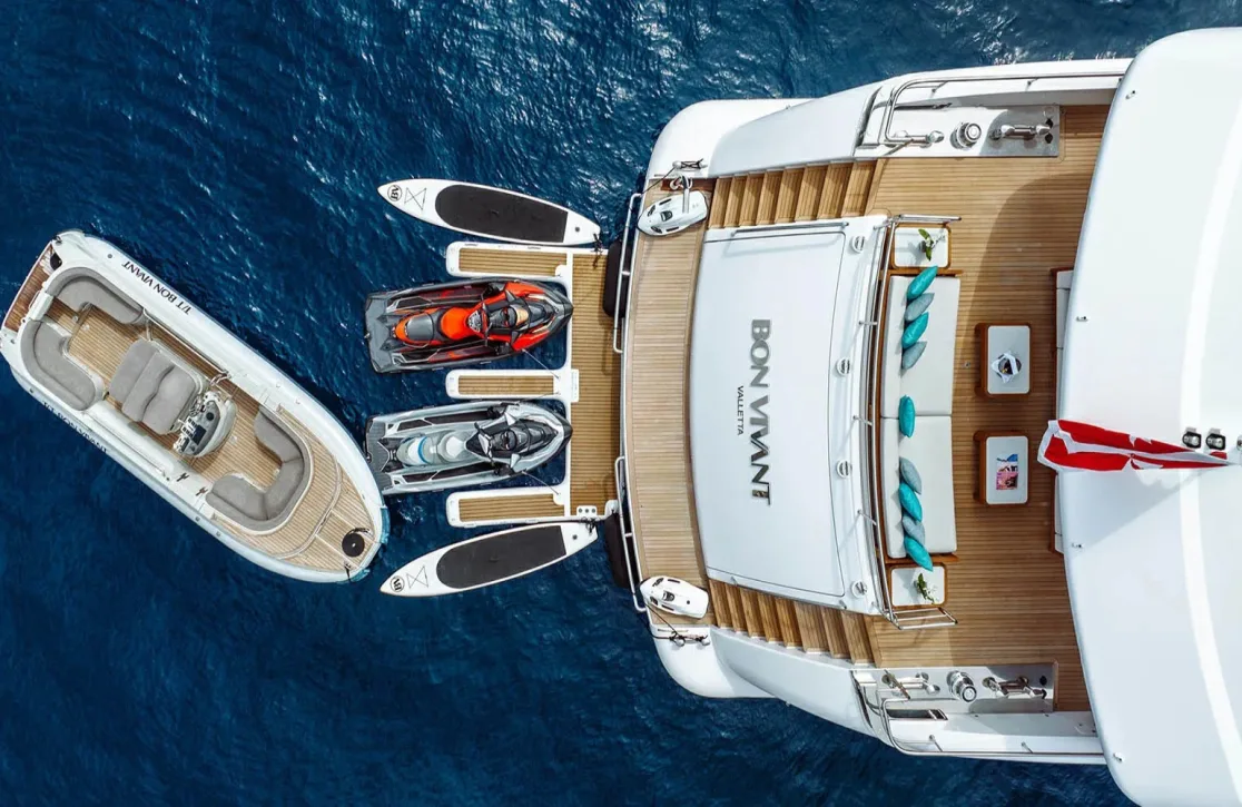 Step into a world of refined comfort on Bon Vivant, where each space is designed to elevate your journey. The sun deck beckons with inviting sunpads, perfect for leisurely afternoons under the Mediterranean sun. As the day winds down, the deck jacuzzi offers a tranquil retreat, where you can unwind with a glass of something chilled, watching the sunset paint the sky. For those seeking a more active experience, the onboard gym provides state-of-the-art equipment to keep you invigorated. Every moment is seamlessly connected with Wi-Fi throughout, allowing you to stay in touch as you indulge in the art of relaxation.