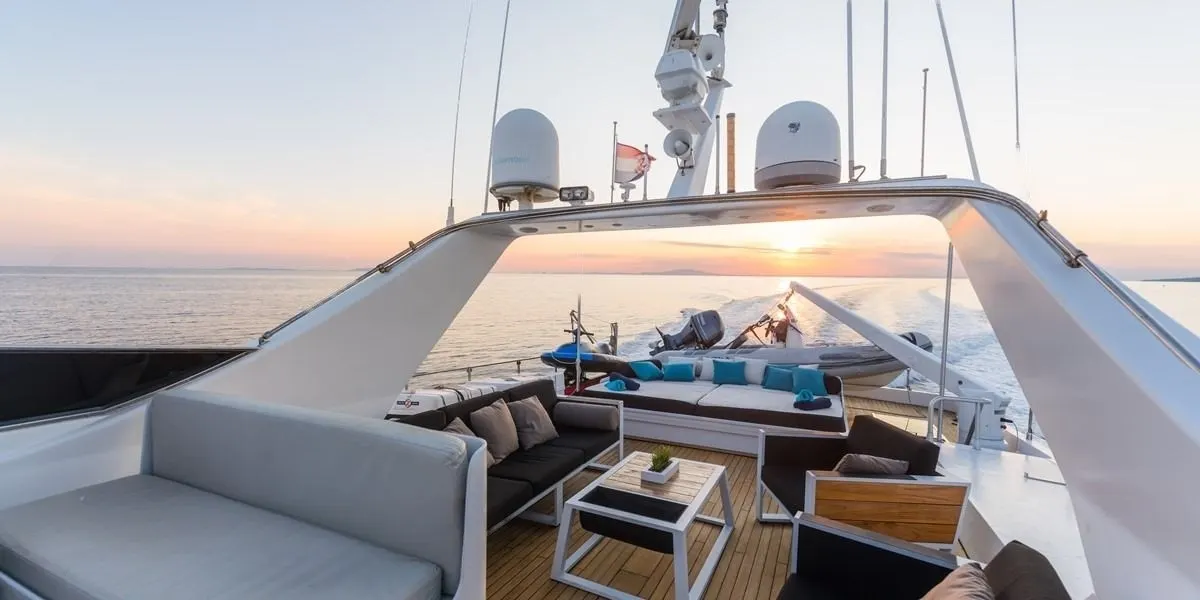 Embark on a journey aboard the 27-meter masterpiece, Bora Bora, where the whisper of the sea meets the hum of powerful twin engines. Crafted with precision by CNL – Cantieri Navali Lavagna, this vessel glides effortlessly across the waves, offering a seamless blend of elegance and adventure. As she cruises comfortably at 20 knots, guests are invited to explore both the tranquility of secluded coves and the vibrant allure of bustling harbors. Aboard Bora Bora, the world is your oyster, with every destination offering a new vista and every moment an opportunity to savor the sublime. The combination of a robust aluminium hull and superstructure not only ensures a smooth passage but also invites guests to indulge in the art of slow living, where time expands and experiences deepen.