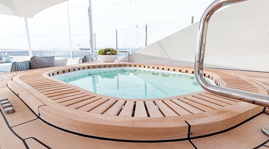 From sunrise to sunset, Calypso I offers a sanctuary of refined comforts and open-air indulgences. The sun deck beckons with plush sunpads, inviting you to bask in the warmth while sipping on a refreshing cocktail prepared just for you. As the day unfolds, retreat to the Jacuzzi for a soothing soak or maintain your wellness routine with the yacht’s gym equipment. As the evening approaches, gather in the beach club, where the gentle lapping of waves forms a serene soundtrack to your conversations.