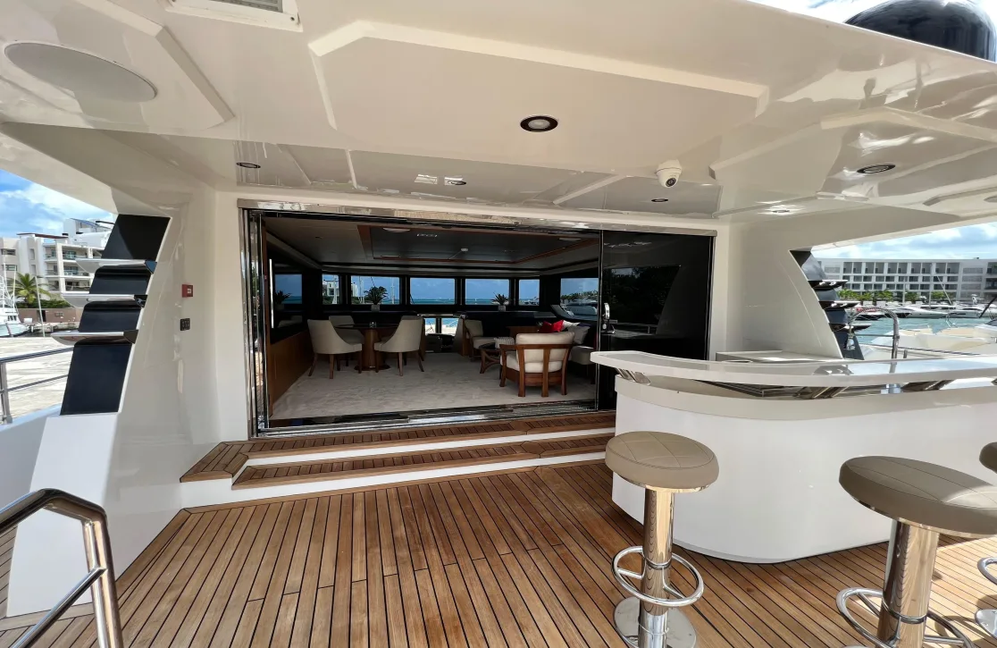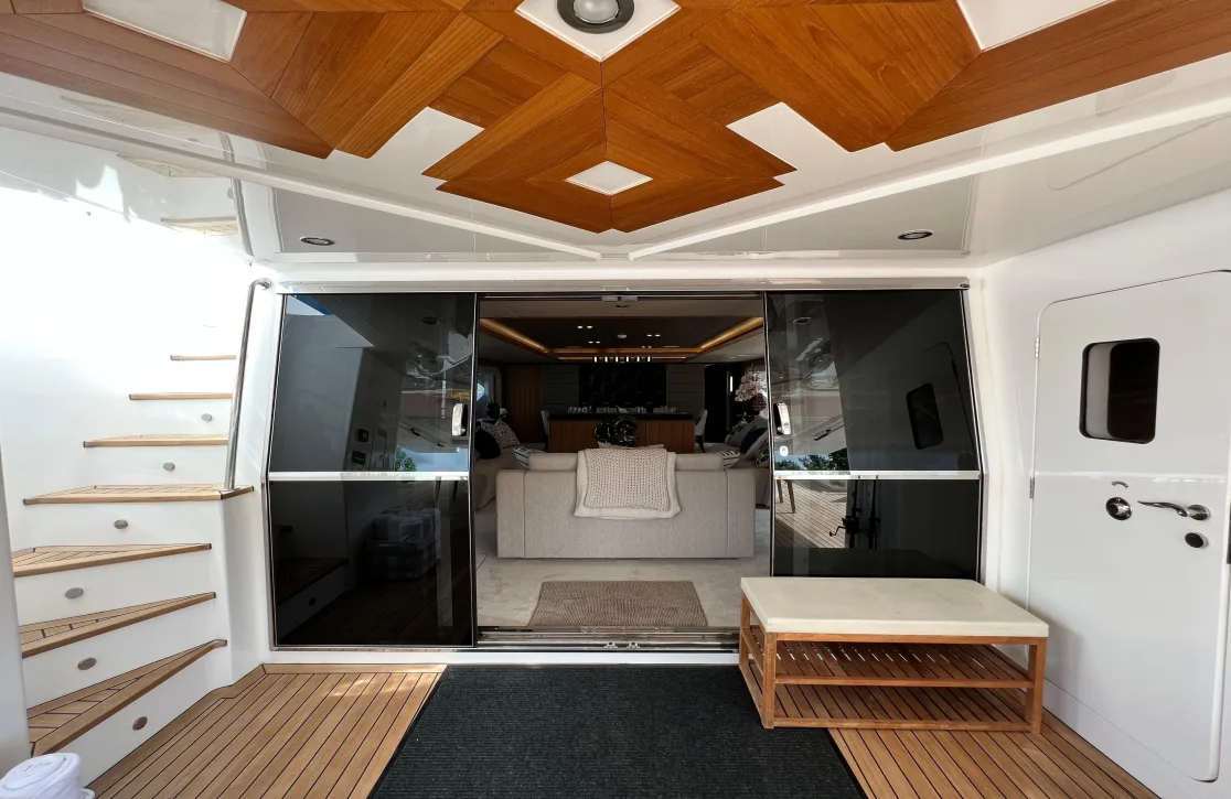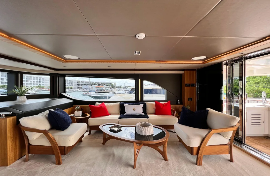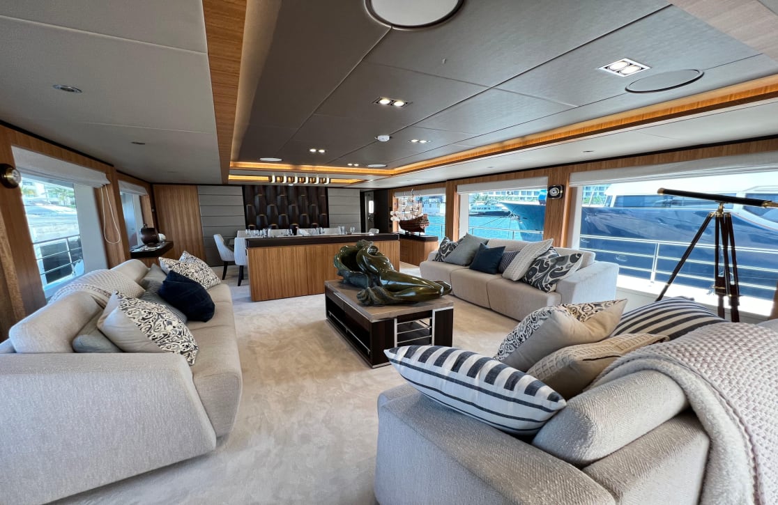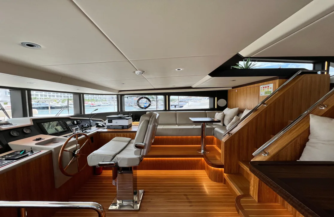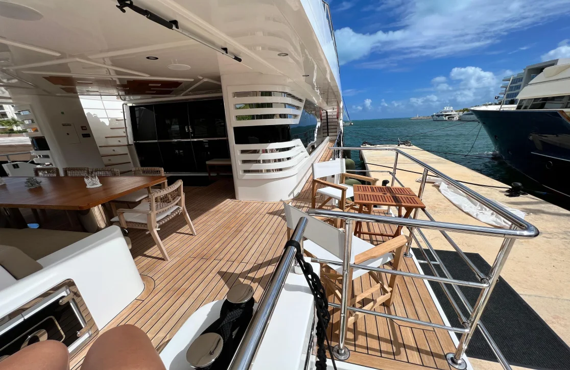 Aboard Carobelle, each day unfolds with a promise of indulgence and relaxation. The expansive sun deck invites you to bask under the sun’s gentle embrace, while the deck jacuzzi offers a sanctuary of warmth and serenity, perfect for evening reflections under a star-studded sky. The yacht’s air-conditioned interiors ensure you remain enveloped in comfort, regardless of the sun’s intensity. At-anchor stabilizers provide a tranquil environment, allowing you to enjoy the serene vistas unperturbed. Whether savoring a quiet moment on the sunpads or enjoying lively conversations in the social spaces, life aboard Carobelle is an experience of seamless comfort and refined elegance.
