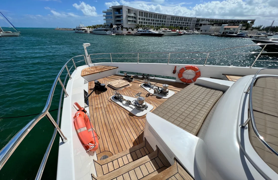 Embark on a voyage of discovery aboard Carobelle, a masterpiece of nautical craftsmanship from the renowned Gulf Craft shipyard. This 32-meter vessel, launched in 2018, is a testament to sophisticated Emirati design, promising an unforgettable journey across azure waters. As you glide seamlessly at a cruising speed of 10 knots, with the potential to reach thrilling speeds of up to 18 knots, Carobelle offers an unparalleled opportunity to unwind and explore both on and off the yacht. With a range of 1,500 nautical miles, your itinerary can be as adventurous as your spirit desires, whether you’re seeking hidden coves or vibrant coastal towns.