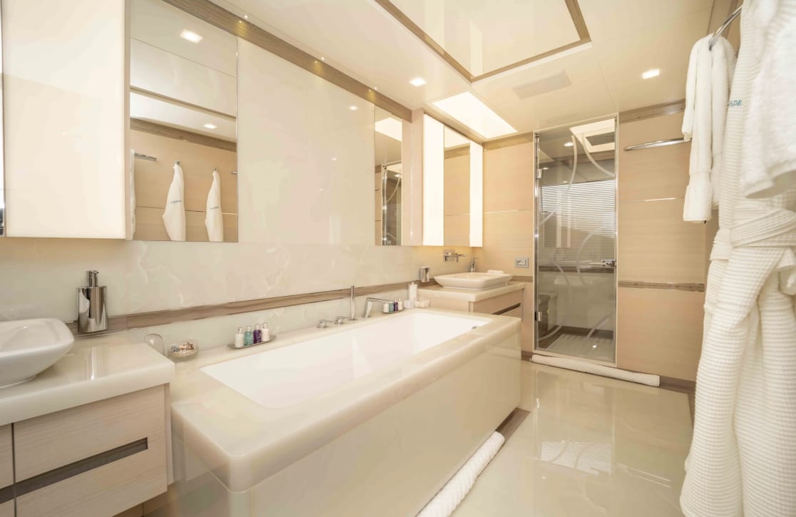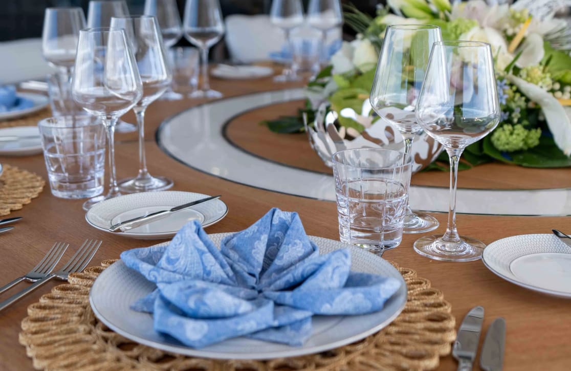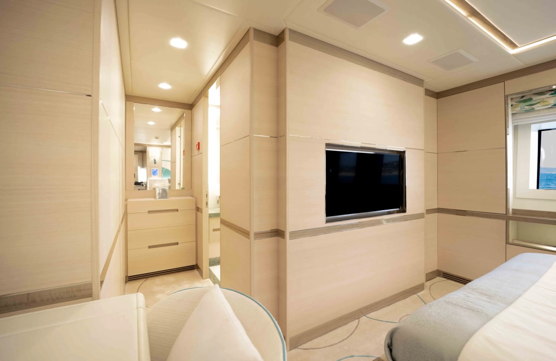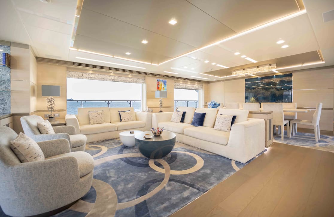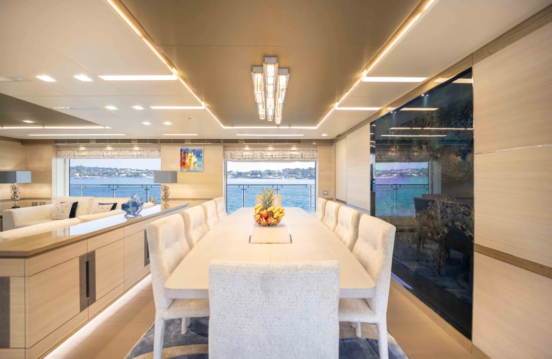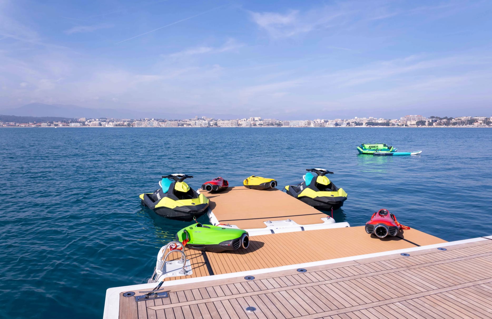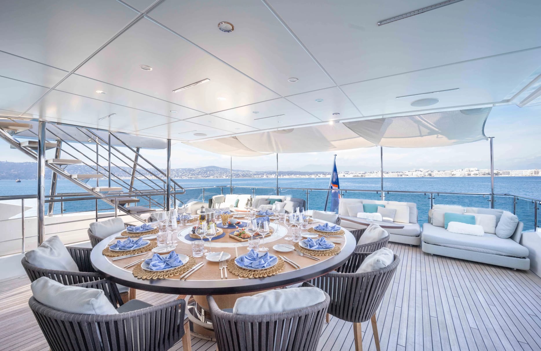 Onboard Charade, every moment is an invitation to indulge. As you step into her refined interiors, designed by the acclaimed RWD, a world of warmth and elegance unfolds. Unwind with the soothing melodies of the onboard piano as the sun dips below the horizon, or enjoy a quiet evening in the foredeck seating area, where an intimate table awaits your next al fresco dining experience. The deck Jacuzzi provides a perfect retreat for witnessing the ever-changing seascape, while the sun deck, with its plush sunpads and exterior bar, invites you to relax with a refreshing drink in hand. Charade ensures seamless connectivity with high-speed Wi-Fi, keeping you in touch with the world while you immerse yourself in this floating sanctuary.