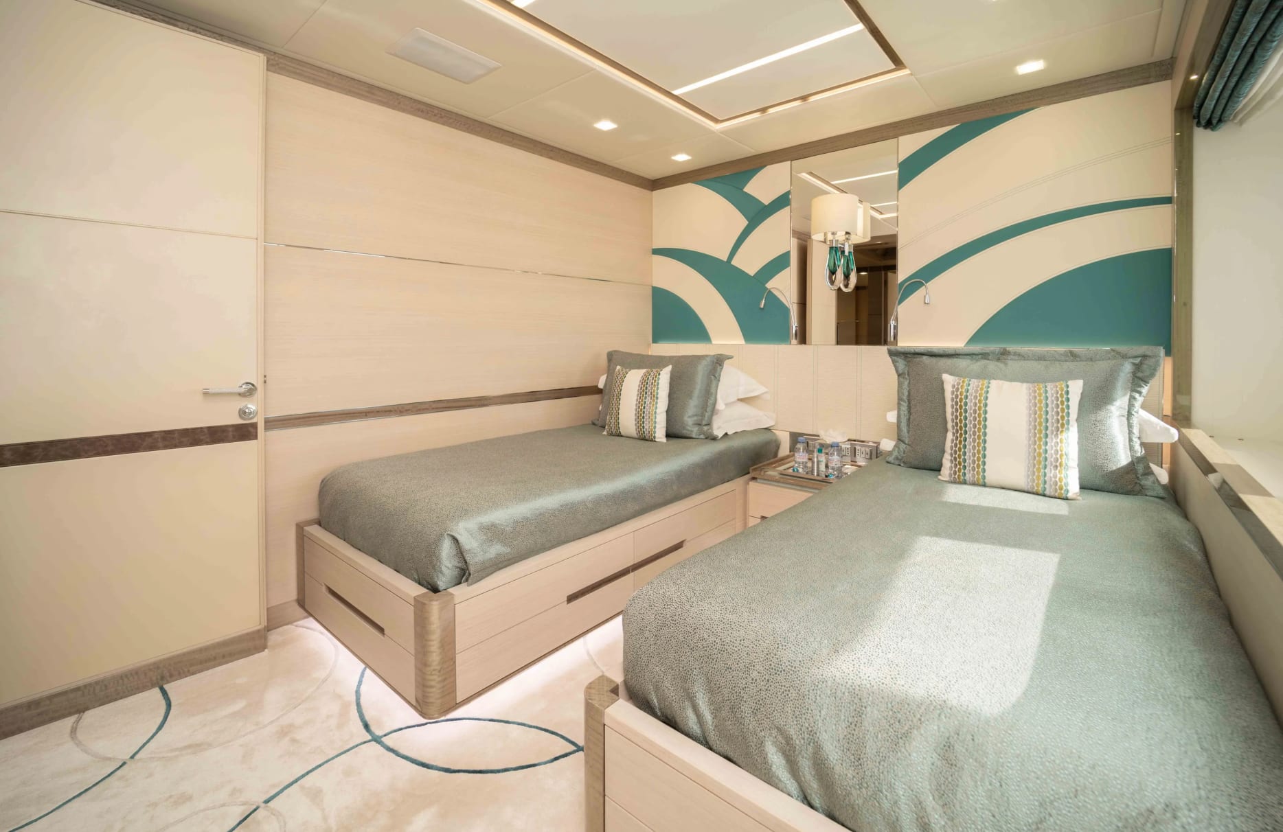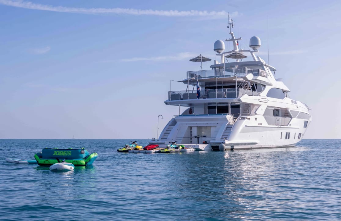 Imagine a voyage aboard the elegant Charade, a 125-foot masterpiece crafted by Benetti, where your journey is as exhilarating as your destination. With the capacity to host up to 10 guests, Charade offers both grandeur and intimacy, allowing you to explore the world’s most breathtaking coastlines with ease. Her sleek, modern design glides effortlessly through the waves, cruising comfortably at 18 knots with the possibility of reaching a thrilling 22 knots. As you embark on a week-long adventure, the gentle hum of her twin MTU engines and the allure of endless nautical miles promise both serenity and exploration.