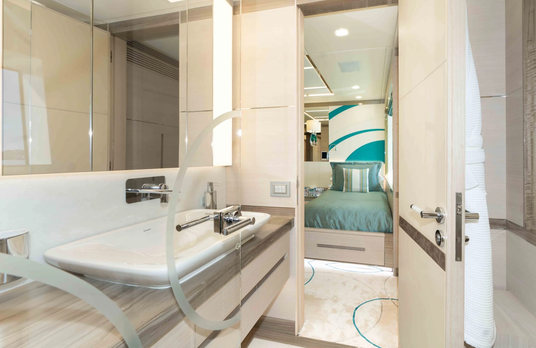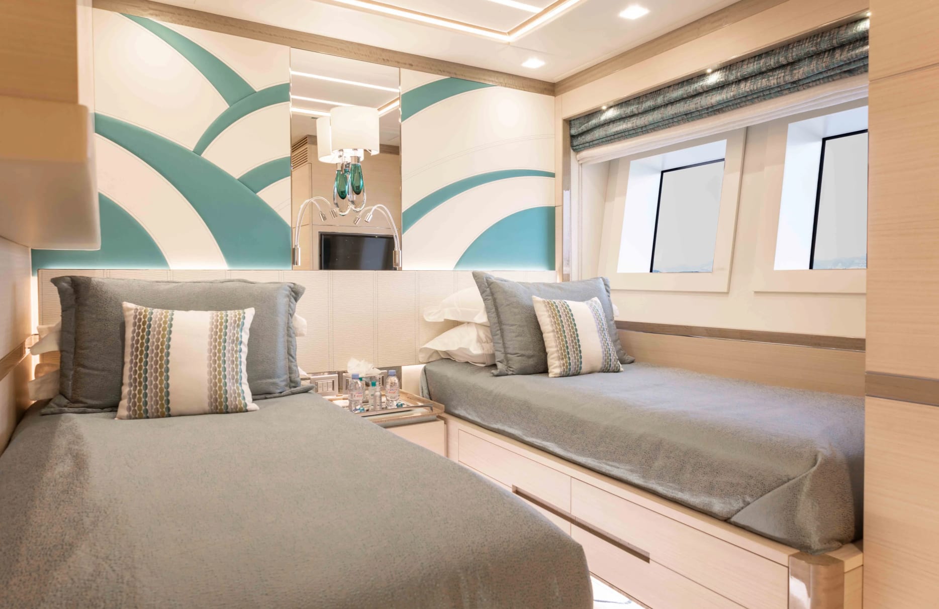 Charade’s accommodations are an epitome of comfort and sophistication, designed to host up to 10 guests across five exquisite cabins. The centerpiece is the full-beam master suite, a serene haven complete with his and her bathrooms, offering an unparalleled level of privacy and space. Each morning, awaken to the gentle lapping of the waves, the sunlight filtering through expansive windows, and the promise of another day of discovery on the horizon. The additional double and twin cabins are equally inviting, each a sanctuary of rest and rejuvenation, ensuring every guest’s experience is one of complete relaxation.