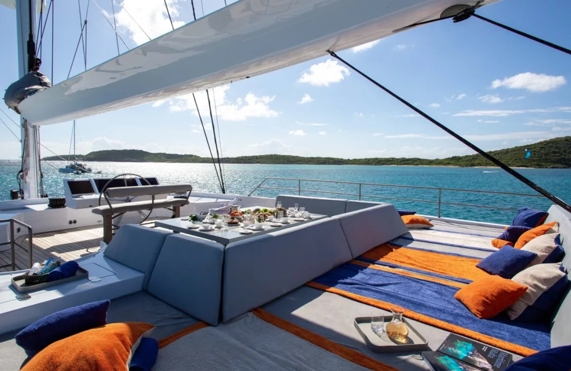 Onboard Che, every detail is curated to elevate comfort and style. The interiors, a seamless blend of sophistication and ease, envelop you in an atmosphere of refined elegance. State-of-the-art air conditioning maintains the perfect climate, while seamless Wi-Fi integration keeps you effortlessly connected with the world, or allows you to escape it entirely. As the sun sets, the deck transforms into a cozy haven for starlit dinners and conversations that linger long into the night. Whether basking in the sun’s embrace or enjoying quiet moments under a canopy of stars, Che’s ambiance is one of pure enchantment.