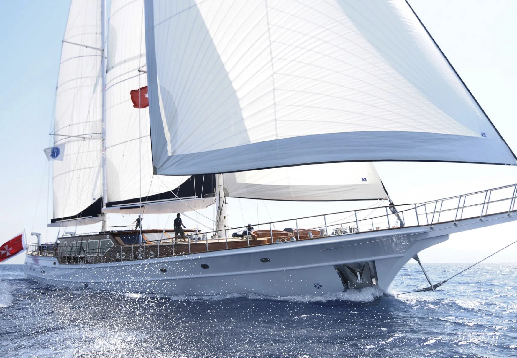 Step into a world of nautical elegance aboard Clear Eyes, a magnificent 43-meter sailing yacht crafted by Pax Navi Yachts. This vessel is not just a mode of transport but a passage into a week of unparalleled maritime discovery. As she glides gracefully at a speed of up to 13 knots, Clear Eyes promises far-reaching adventures across the Mediterranean, with a remarkable range of over 3,500 nautical miles. Her classic aesthetics are perfectly complemented by modern comforts, creating a seamless blend of tradition and innovation. Whether savoring sunny days on deck or exploring charming coastal towns, the experience aboard Clear Eyes is one of refined tranquility and endless exploration.