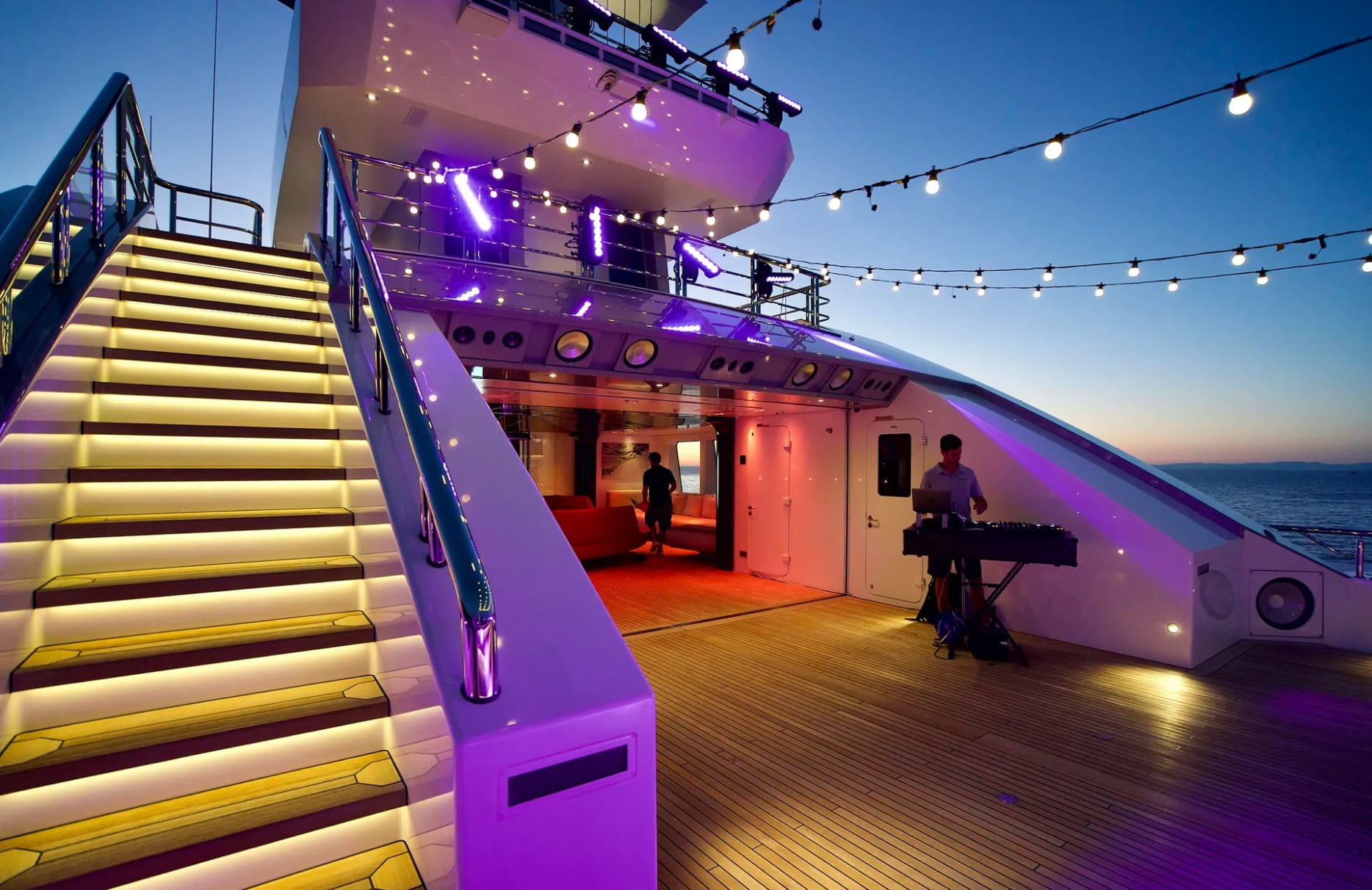 Aboard Cloudbreak, every detail is curated for your ultimate comfort and enjoyment. Picture starting your day with a workout in the fully equipped gym, followed by a leisurely swim in the pool, or perhaps a relaxing soak in the deck jacuzzi as you take in the breathtaking views. As evening falls, gather around the warmth of the fireplace, while the underwater lights illuminate the ocean beneath, creating a magical ambiance. The onboard spa offers a sanctuary of tranquility, while high-speed satellite communications and Wi-Fi keep you connected to the world at your leisure.