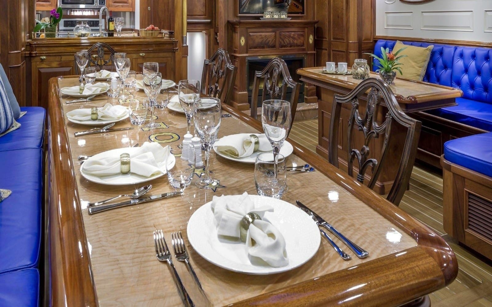 Columbia welcomes up to eight guests across four beautifully appointed cabins, each a sanctuary of tranquility. The master suite and three additional double cabins offer queen-sized beds, inviting you to restful sleep after a day of exploration. Wake up to the gentle sway of the sea and the promise of another day filled with possibilities. Each cabin is designed with thoughtful touches that ensure privacy and comfort, making your time aboard as restful as it is luxurious.