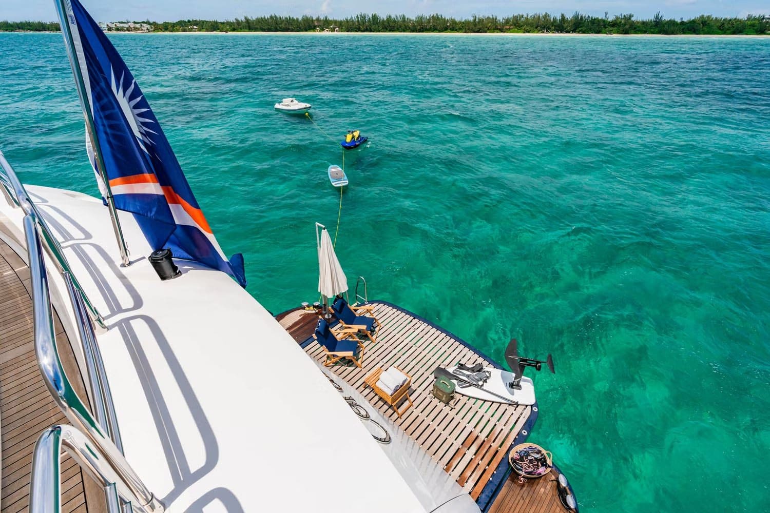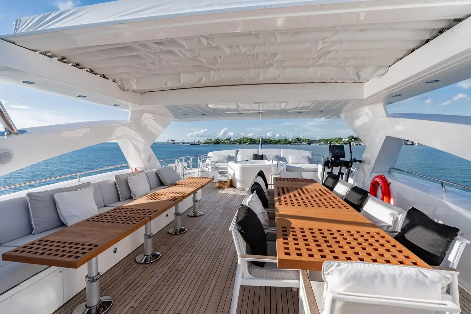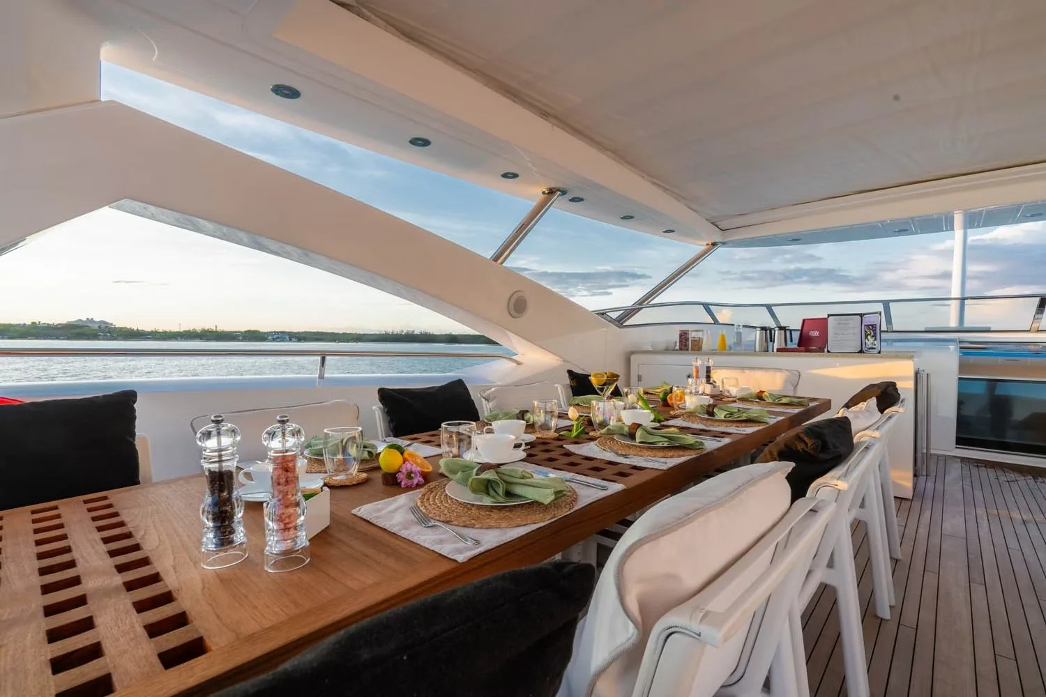 Onboard Corazon, every moment is tailored to delight, offering a sanctuary of relaxation and entertainment. As you unwind in the inviting beach club, the gentle breeze carries the scent of the ocean, while the jacuzzi offers a serene retreat under the sun’s golden rays. The sun deck provides the perfect setting for leisurely afternoons, where you can savor alfresco dining or simply enjoy the panoramic vistas. With air-conditioned interiors and seamless Wi-Fi connectivity, staying comfortable and connected is effortless. As evening falls, the yacht transforms into a haven of ambiance, with underwater lights casting an ethereal glow across the water’s surface.