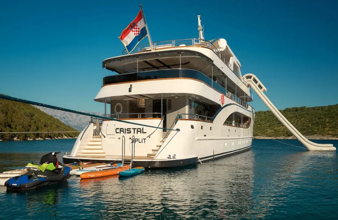 Chartering Cristal means embracing a lifestyle where comfort and entertainment are paramount. A dedicated crew of 11 professionals anticipates your every need, ensuring your experience aboard is nothing short of remarkable. With accommodations for up to 30 guests across 15 cabins, including a master suite, Cristal offers flexibility and privacy for your entire group. Each moment on board is an invitation to relax, explore, and revel in the joys of yachting, making every day aboard a unique chapter in your maritime journey.