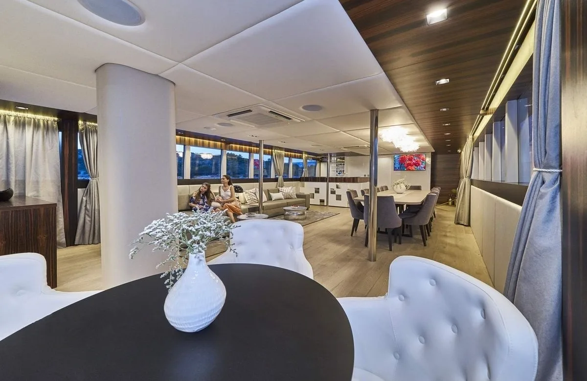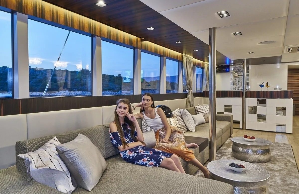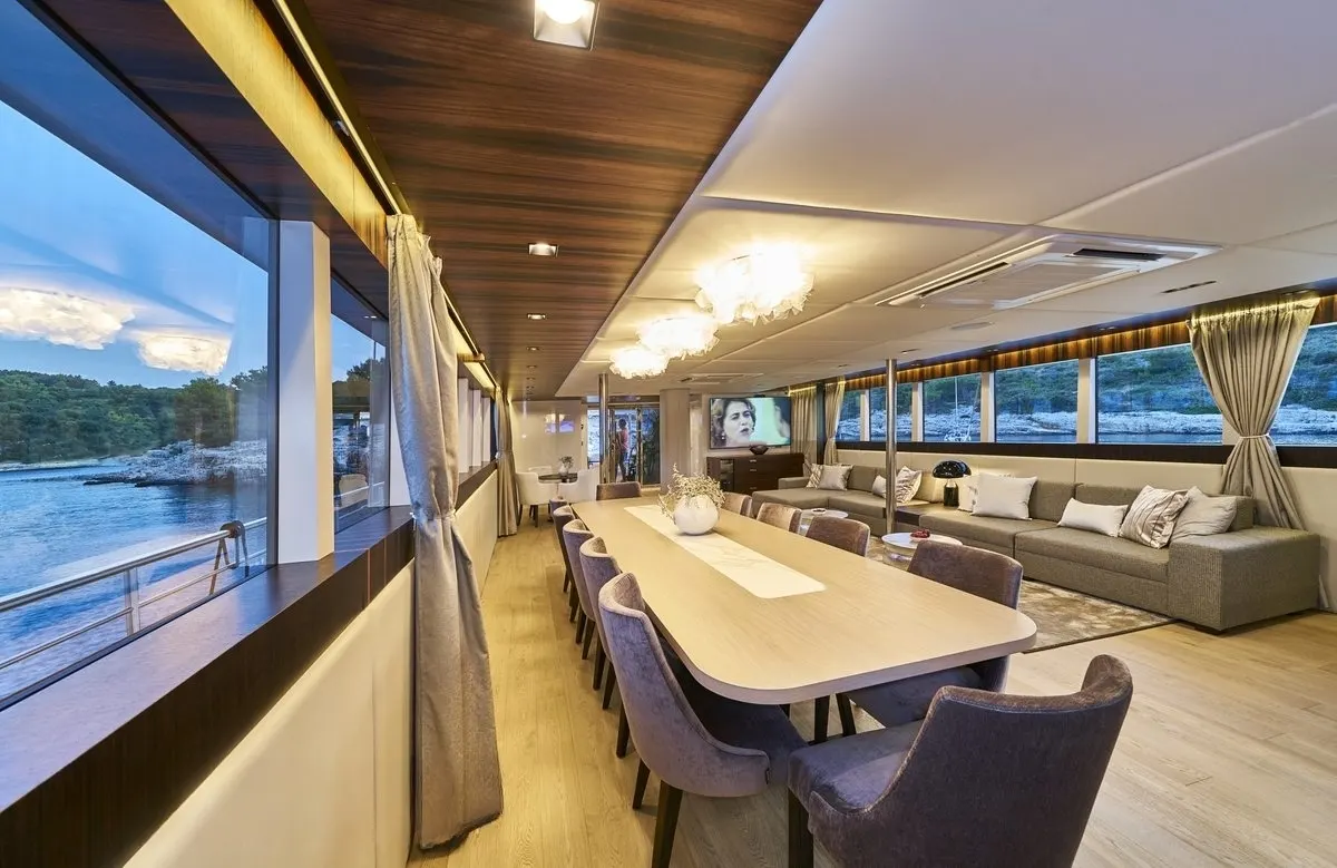 Dalmatino welcomes up to 12 guests into its six beautifully appointed cabins, each designed to offer a sanctuary of calm and elegance. The master suite, VIP cabin, and the mix of double and twin cabins ensure that every guest enjoys a personalized retreat. As you wake to the gentle sound of waves, the promise of a new day at sea beckons you to explore. Each room is a haven of comfort, where the art of rest is perfectly mastered, allowing you to recharge fully for the adventures ahead.
