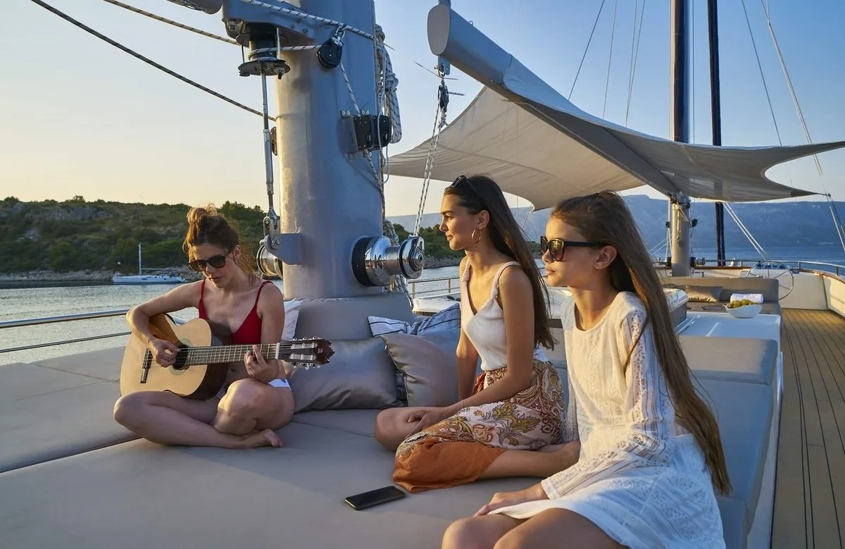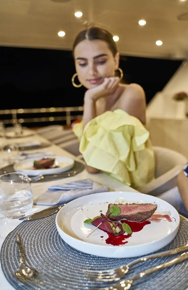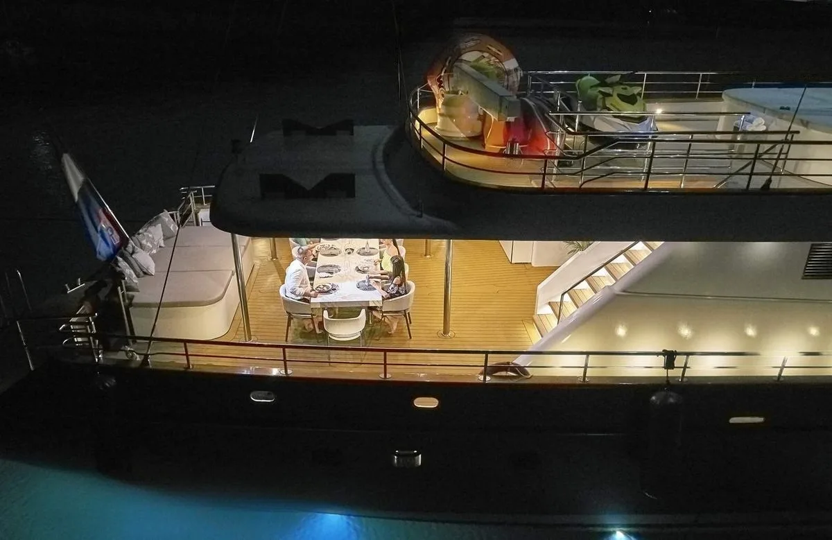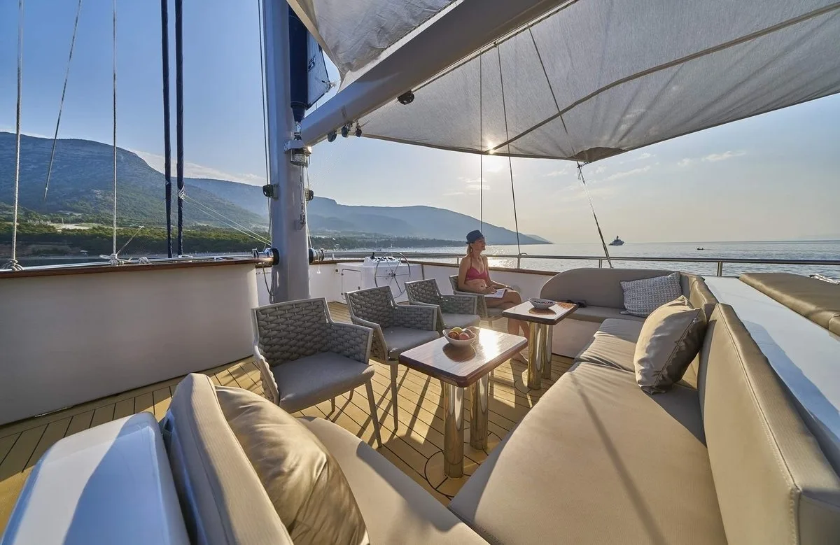 Aboard Dalmatino, each day unfolds with a blend of tranquility and excitement. Picture yourself unwinding in the deck jacuzzi as the sun sets over the horizon, or savoring a quiet morning on the sun deck, enveloped by the gentle sea breeze. With seamless Wi-Fi connectivity and air-conditioned interiors, every modern comfort is at your fingertips. The thoughtfully designed spaces invite you to indulge in both solitude and company, whether you’re sharing stories over a sumptuous meal or enjoying a moment of privacy with a book in hand.