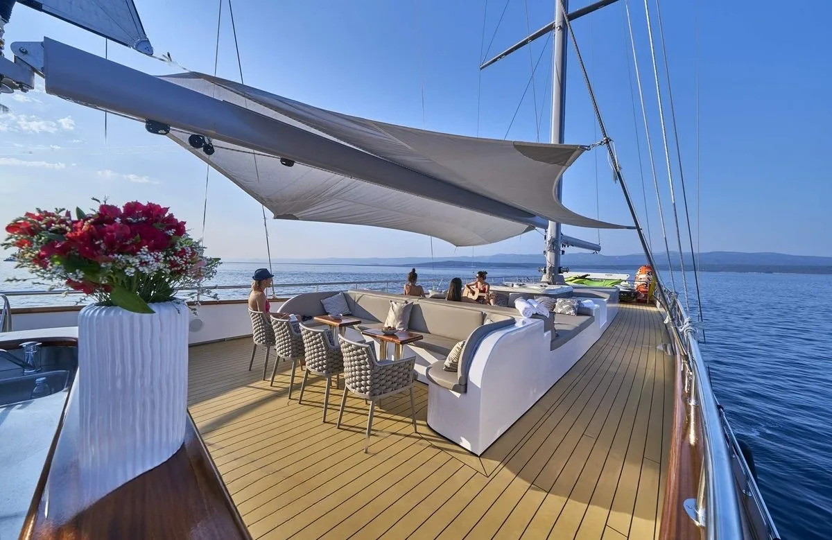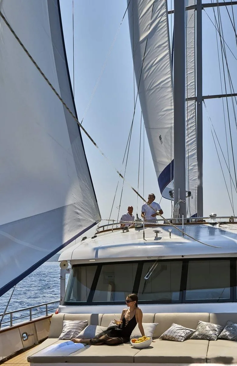 Imagine a week aboard the majestic Dalmatino, a 44-meter sailing yacht crafted with precision and care by the renowned Custom shipyard in 2019. This vessel seamlessly marries the thrill of open-sea exploration with the serene comfort of refined living. As you glide through azure waters at a smooth 9 knots, with the ability to reach speeds up to 12 knots, every moment becomes a memorable adventure. Whether you’re lounging on deck or exploring quaint coastal towns, Dalmatino offers a canvas for both relaxation and discovery, promising an unforgettable journey at sea.