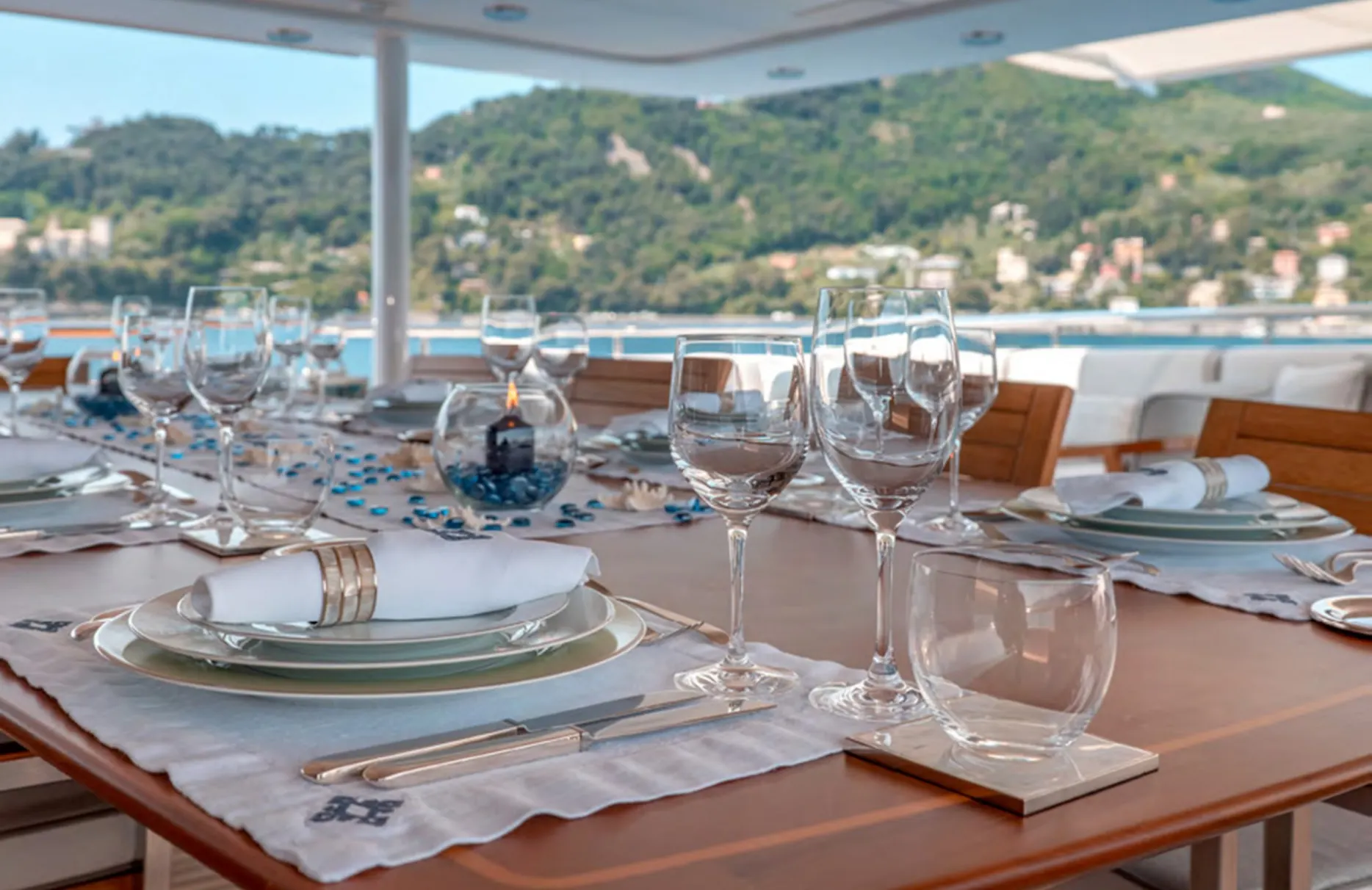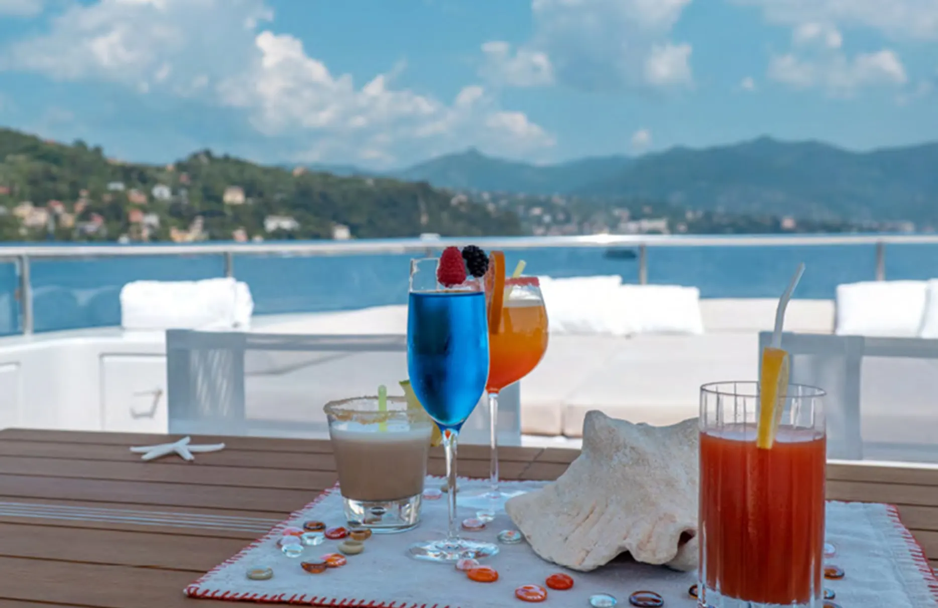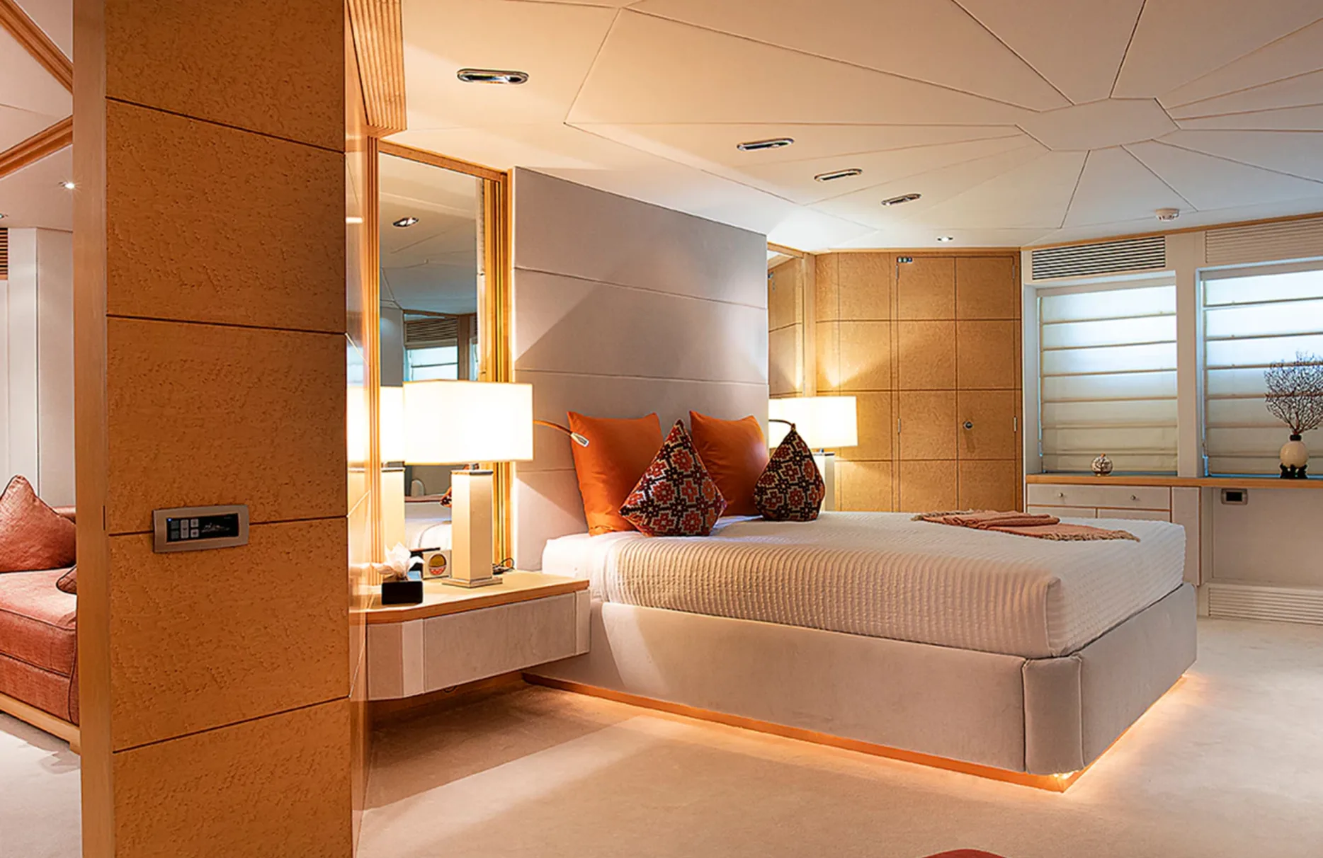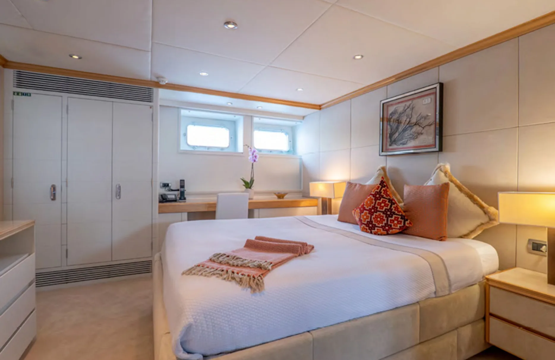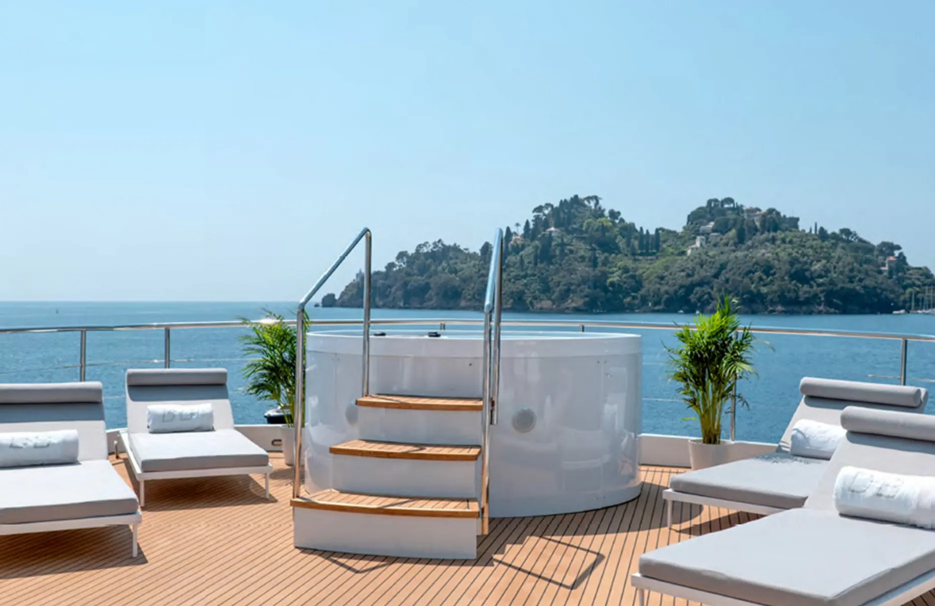 Aboard Deep Blue II, every detail has been thoughtfully curated to enhance your journey. Picture yourself savoring a sunset cocktail in the jacuzzi, the gentle sea breeze accompanying your evening. The yacht’s sun-drenched deck invites leisurely afternoons, while the sophisticated owner’s study offers a private retreat for those moments of solitude. As the evening unfolds, the exterior bar becomes the heart of social gatherings, where conversations flow as freely as the ocean beneath you. With Wi-Fi connectivity keeping you in touch with the world and the comfort of climate control, your onboard lifestyle is both serene and invigorating.