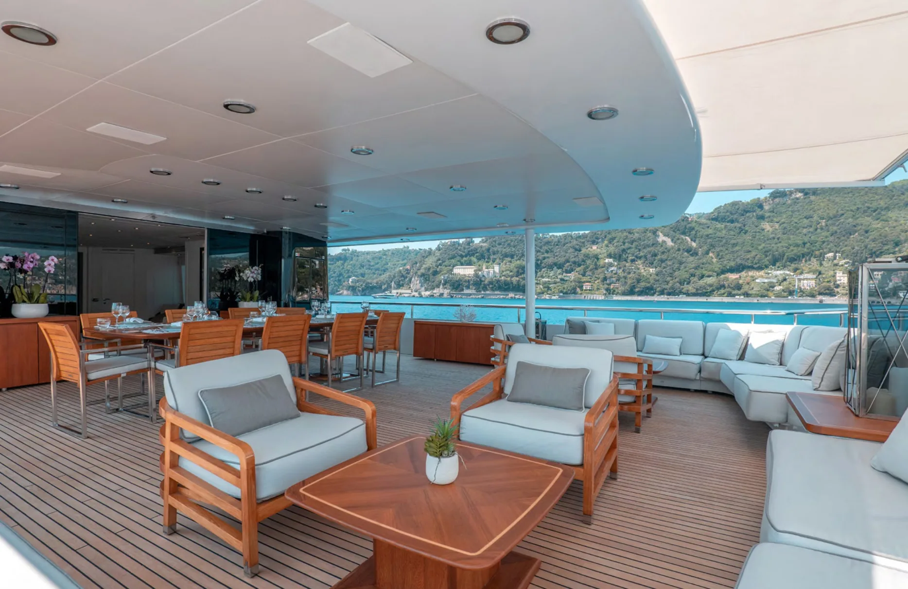 For those with an eye for the extraordinary, Deep Blue II offers an experience that transcends the ordinary. Crafted by the esteemed Oceanco and designed by Donald Starkey, this 44-meter masterpiece invites you to explore the world from the comfort of an exquisite floating sanctuary. With the capability to cruise at a swift 19 knots and a range of over 2,800 nautical miles, the adventures aboard Deep Blue II promise to be as expansive as the seas themselves. Whether you are drawn to serene days anchored in secluded coves or the allure of vibrant coastal harbors, this yacht is your gateway to a week of boundless exploration both at sea and ashore.