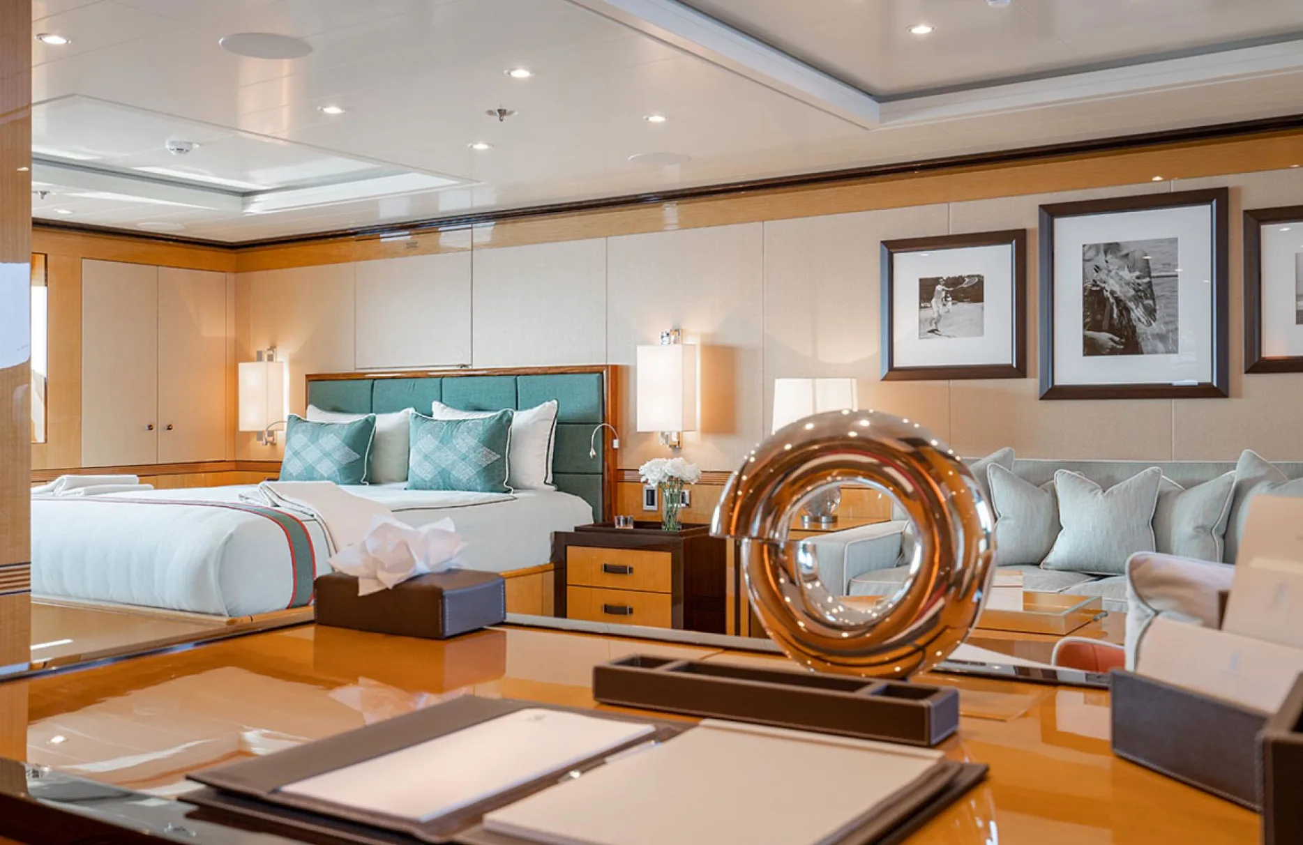Aboard Deep Blue, the art of living reaches new heights. Find yourself enveloped in comfort and style with features like the deck jacuzzi—a perfect retreat for soaking up awe-inspiring views. An invitation to linger waterside is extended by the elegant beach club, while the interior spaces, styled by Laura Sessa Romboli, provide a seamless blend of sophistication and ease. Whether you’re enjoying quiet moments in the foredeck seating area or relishing the vibrant atmosphere at the exterior bar, each space is crafted to enhance your enjoyment and relaxation, ensuring your time aboard is as fulfilling as the destinations you explore.