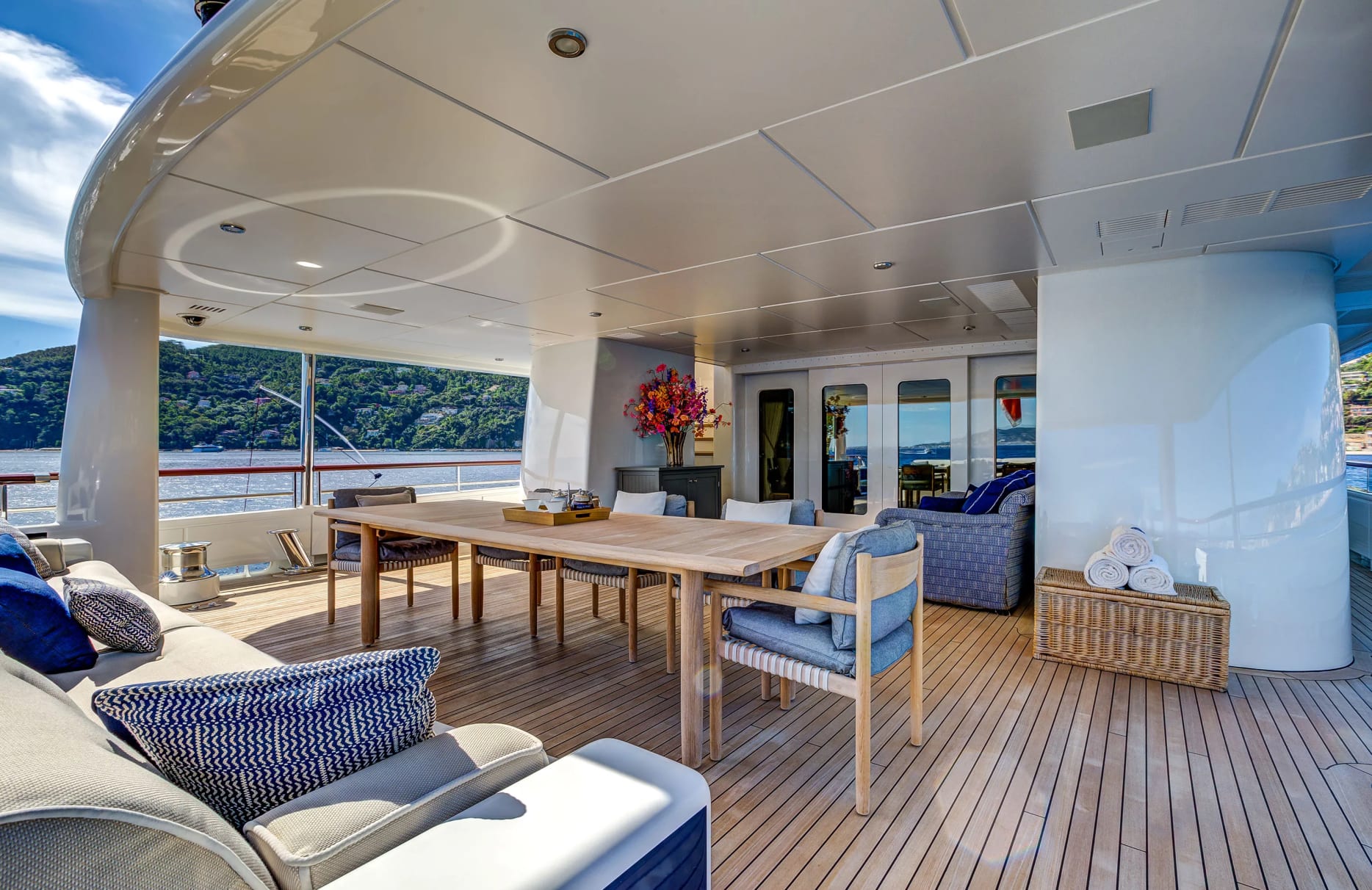 Aboard Deniki, the day unfolds with endless possibilities for indulgence and rejuvenation. Begin your morning with a workout in the fully equipped gym, where panoramic views inspire your exercise routine. As the sun climbs higher, retreat to the deck jacuzzi, where the gentle bubbles and a chilled glass in hand create a haven of tranquility. For those who cherish connection, Wi-Fi is available throughout the yacht, ensuring you remain effortlessly in touch. As evening descends, gather on the deck for a sumptuous BBQ under the starlit sky, the laughter of your companions harmonizing with the gentle sounds of the sea.