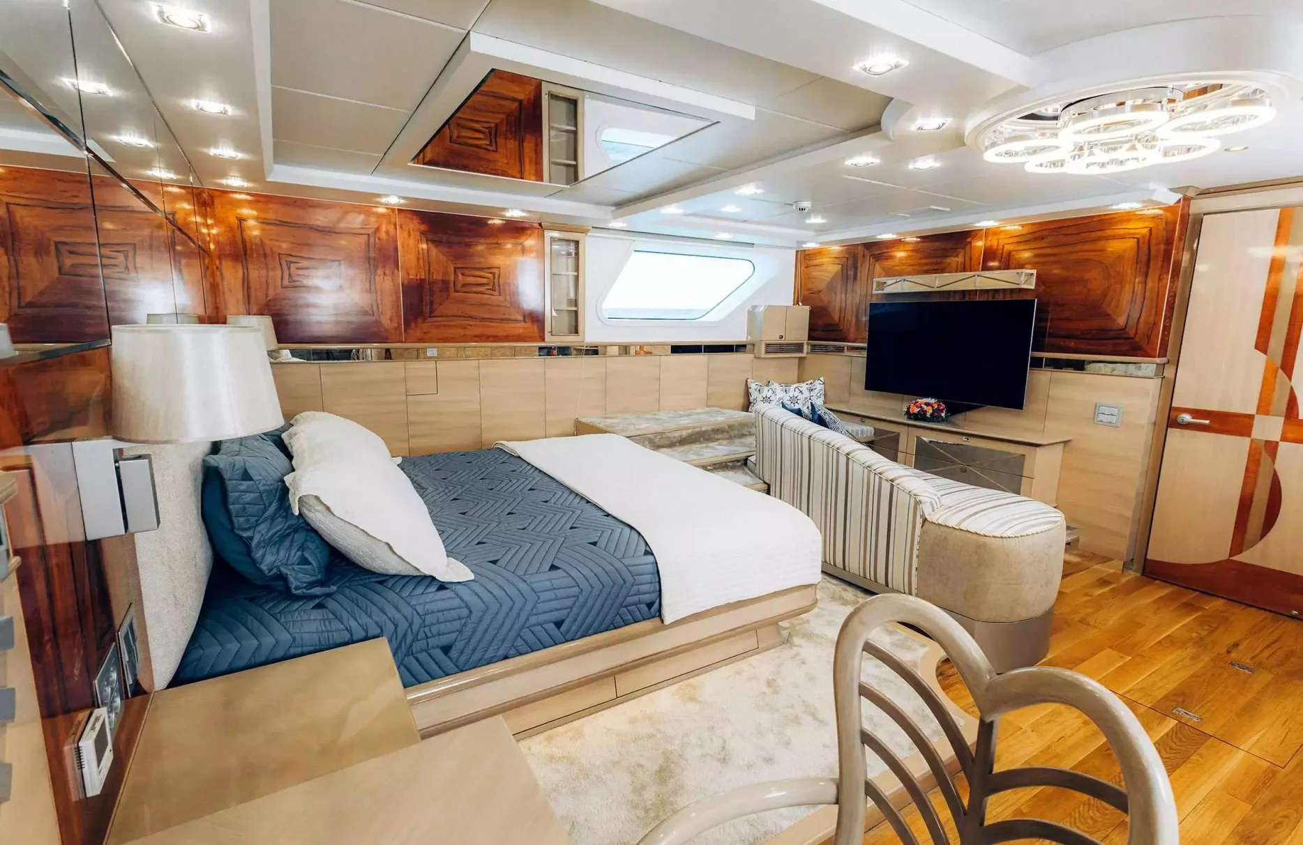 Destiny offers a sanctuary for up to 12 guests within her six beautifully appointed cabins. Each morning, awaken to the gentle lull of the sea in suites that blend modern elegance with timeless comfort. The master suite and VIP cabin promise an elevated experience, while four additional double cabins ensure everyone enjoys their own private retreat. With a dedicated crew of six attending to every detail, your stay is marked by both tranquility and attentive service, making each moment aboard the yacht feel like a cherished escape.