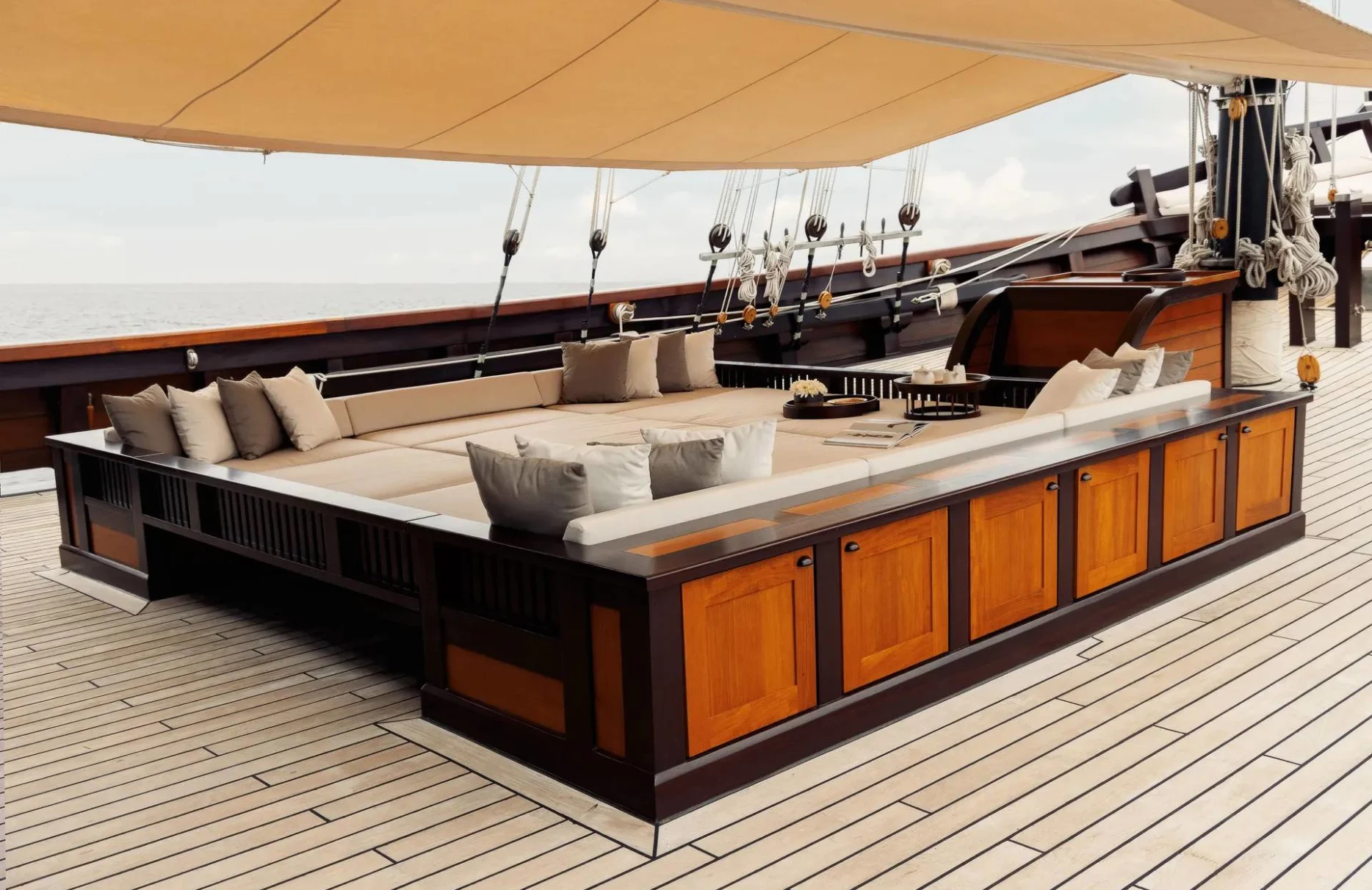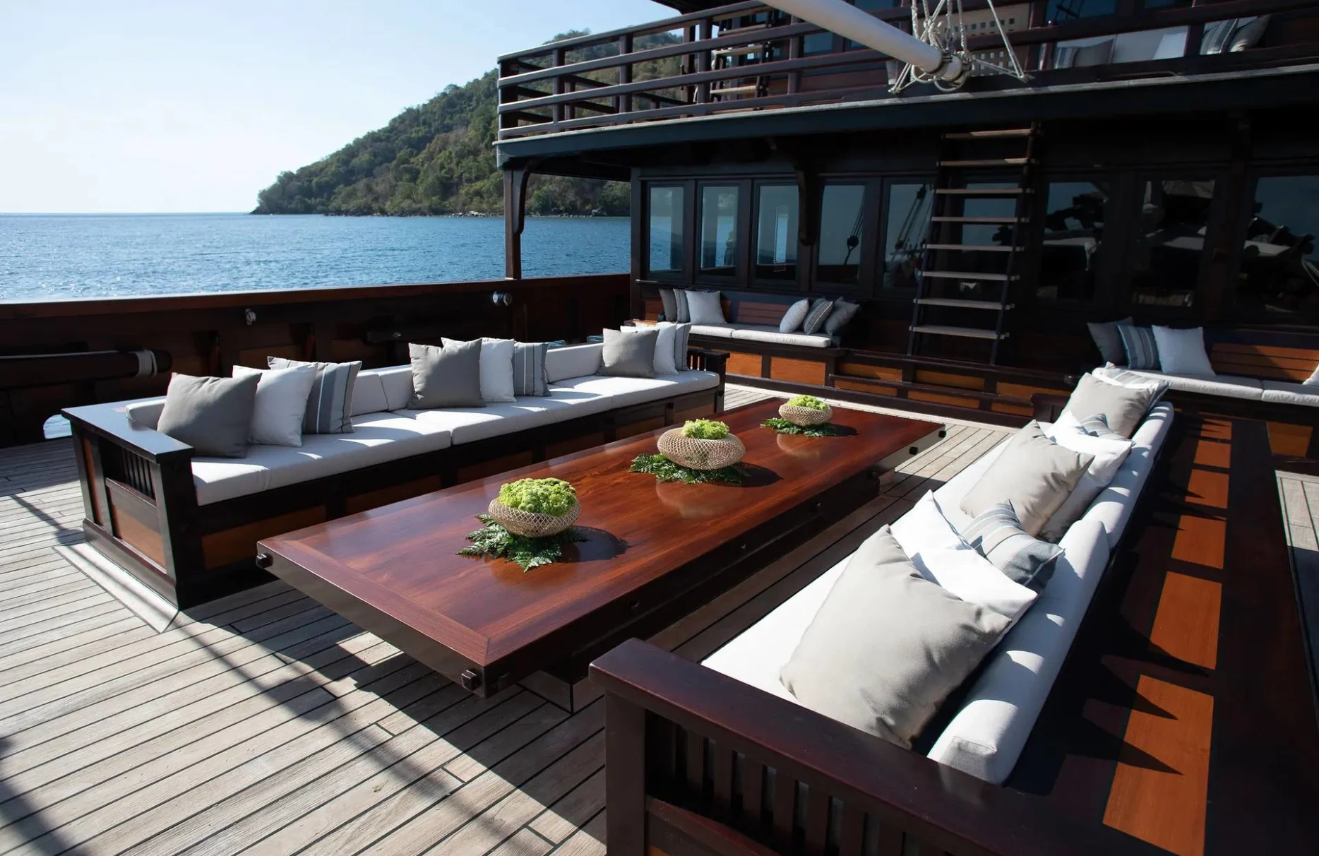 With roots steeped in history and an eye toward contemporary elegance, Dunia Baru is more than a yacht; she is a gateway to a world of discovery. Her interior, a testament to the skill of Balinese carpenters, exudes a warm and inviting ambiance, creating the perfect backdrop for both relaxation and social gatherings. Whether you’re taking in the panoramic views from the observation platform or unwinding in the main salon, Dunia Baru ensures every moment on board is filled with joy and tranquility.