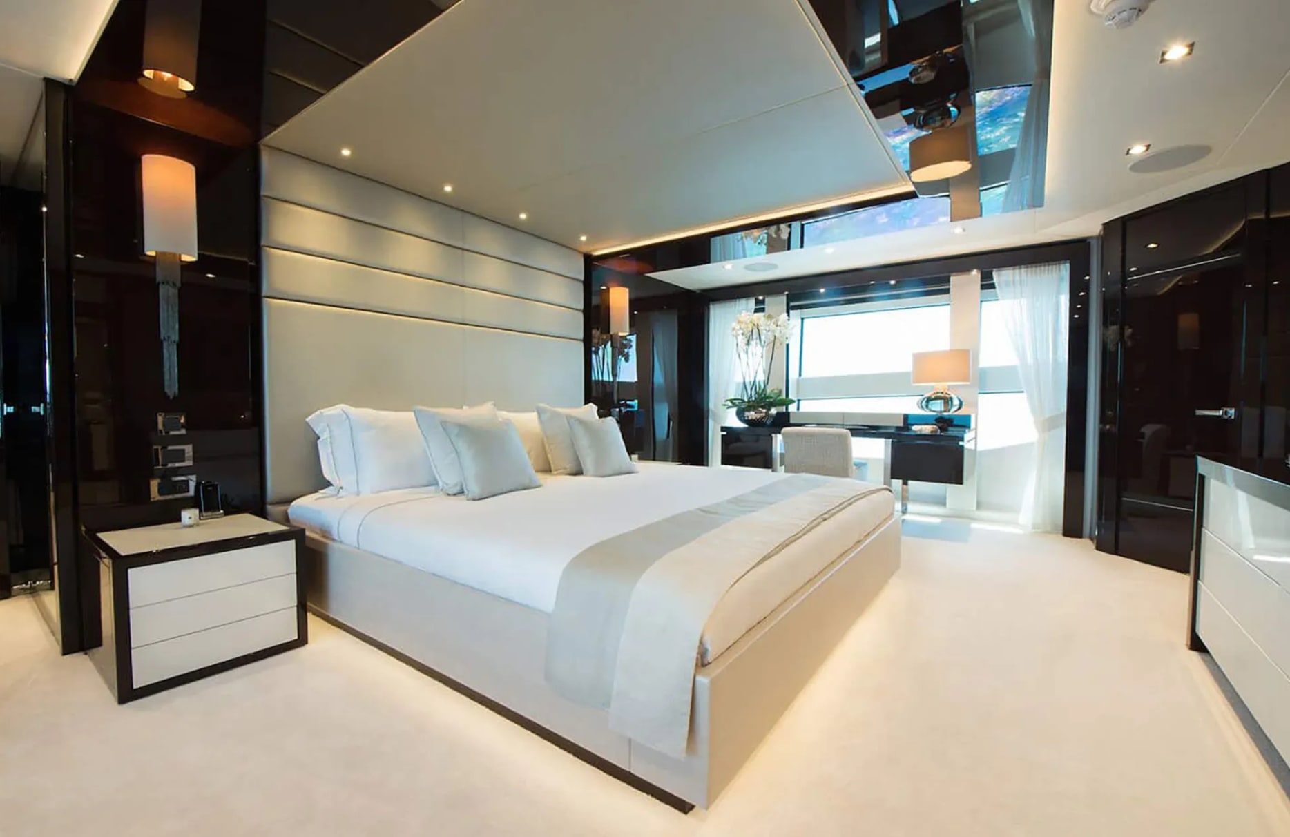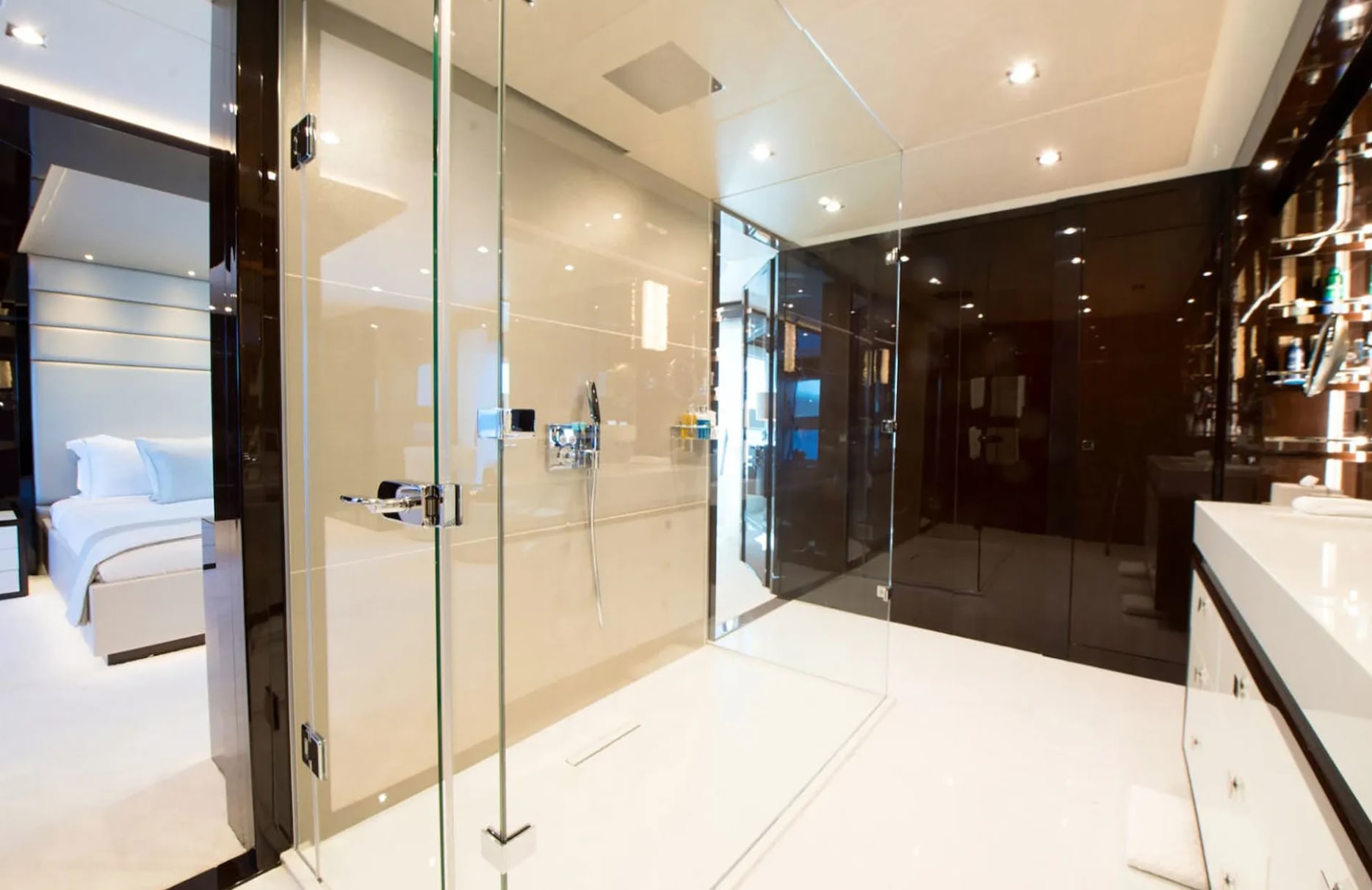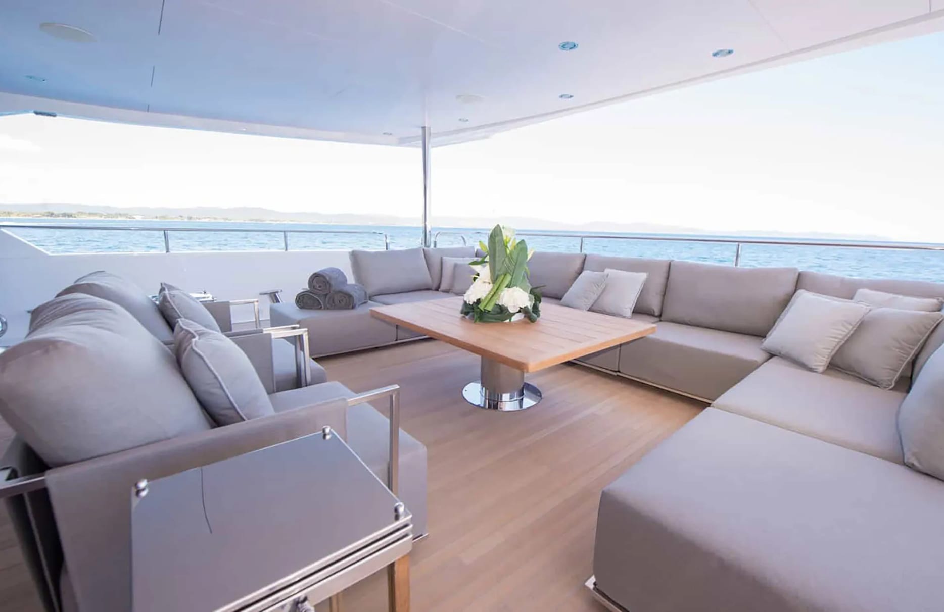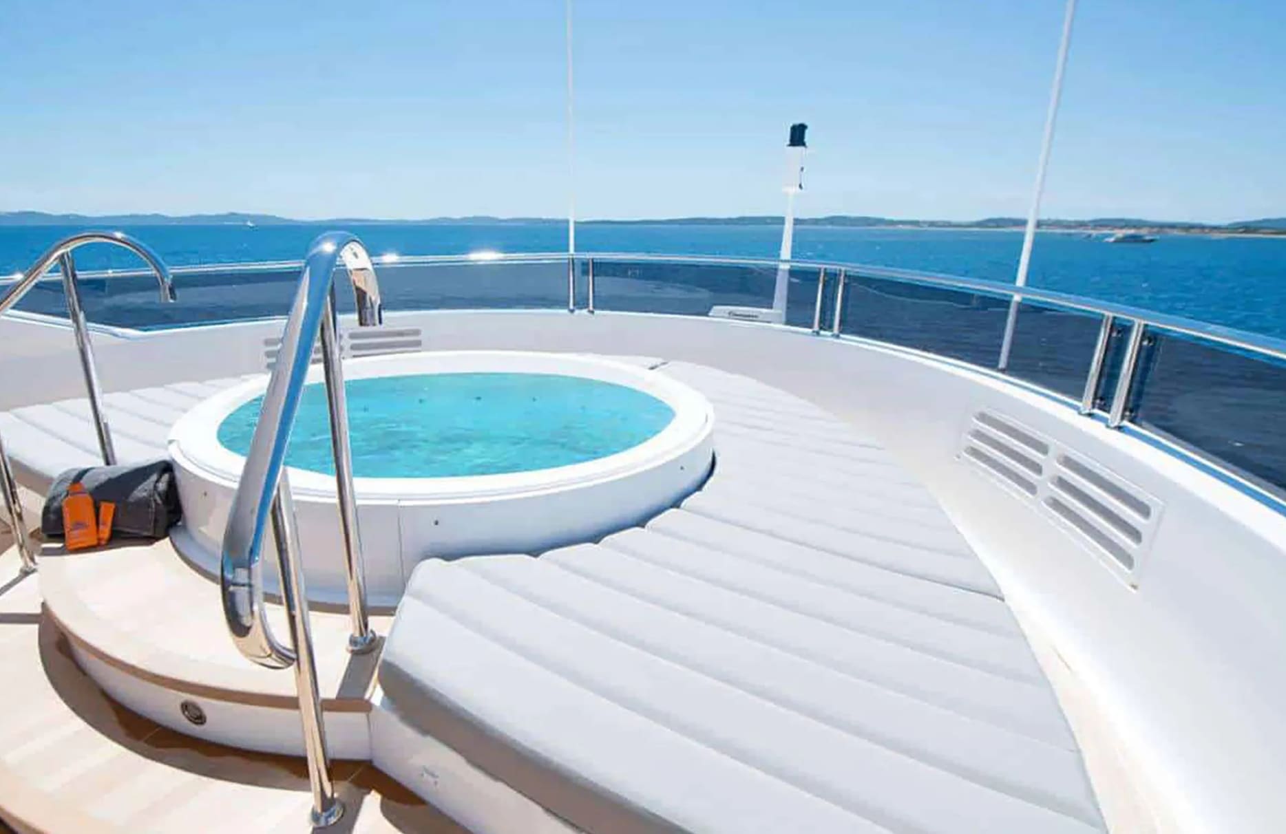 Onboard E-Motion, every detail is designed to enhance your journey. The deck jacuzzi beckons for a sunset dip, while the foredeck seating area provides a perfect setting for al fresco dining under the stars. Experience the joy of morning workouts with state-of-the-art gym equipment, followed by a refreshing outdoor shower. As the day unfolds, retreat to the sunpads or the exterior bar, where handcrafted cocktails await. Whether it’s a tranquil evening or an energetic day, the yacht’s amenities cater to every mood.