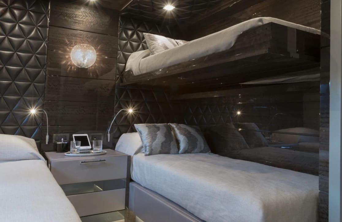 Edesia’s five beautifully appointed cabins offer a sanctuary of rest and relaxation for up to ten guests. As dawn breaks, awaken to the gentle sound of waves and the promise of a new day in the serene surroundings of the master suite, complete with its own private study and dressing room. The double and twin cabins provide a harmonious blend of comfort and style, where every detail is designed to enhance your stay. This is a place where mornings begin with the soft glow of natural light, and evenings conclude in the embrace of exquisite tranquility.