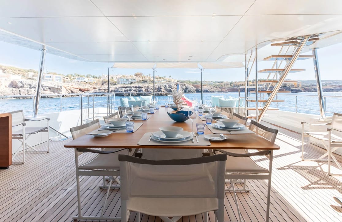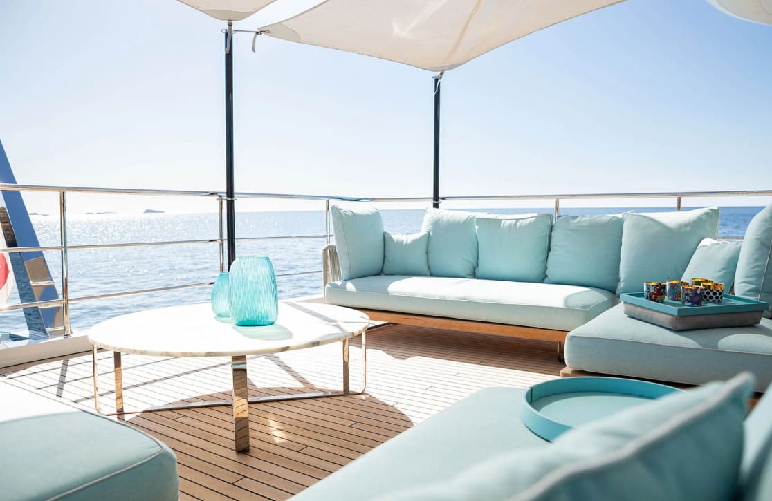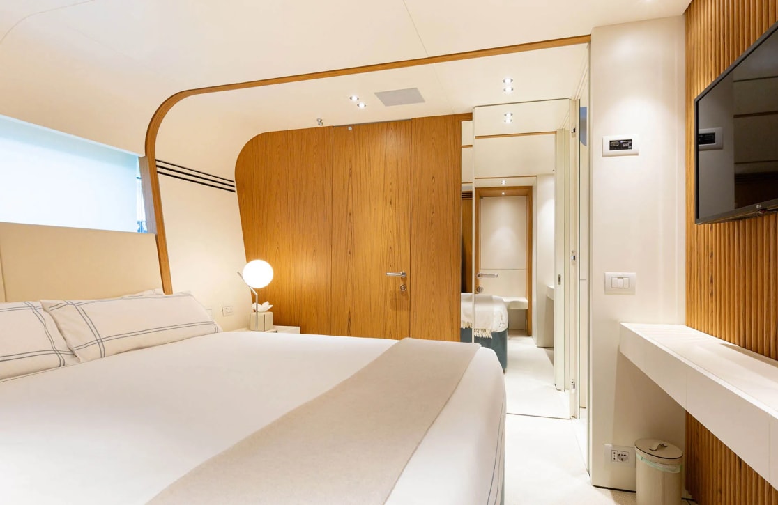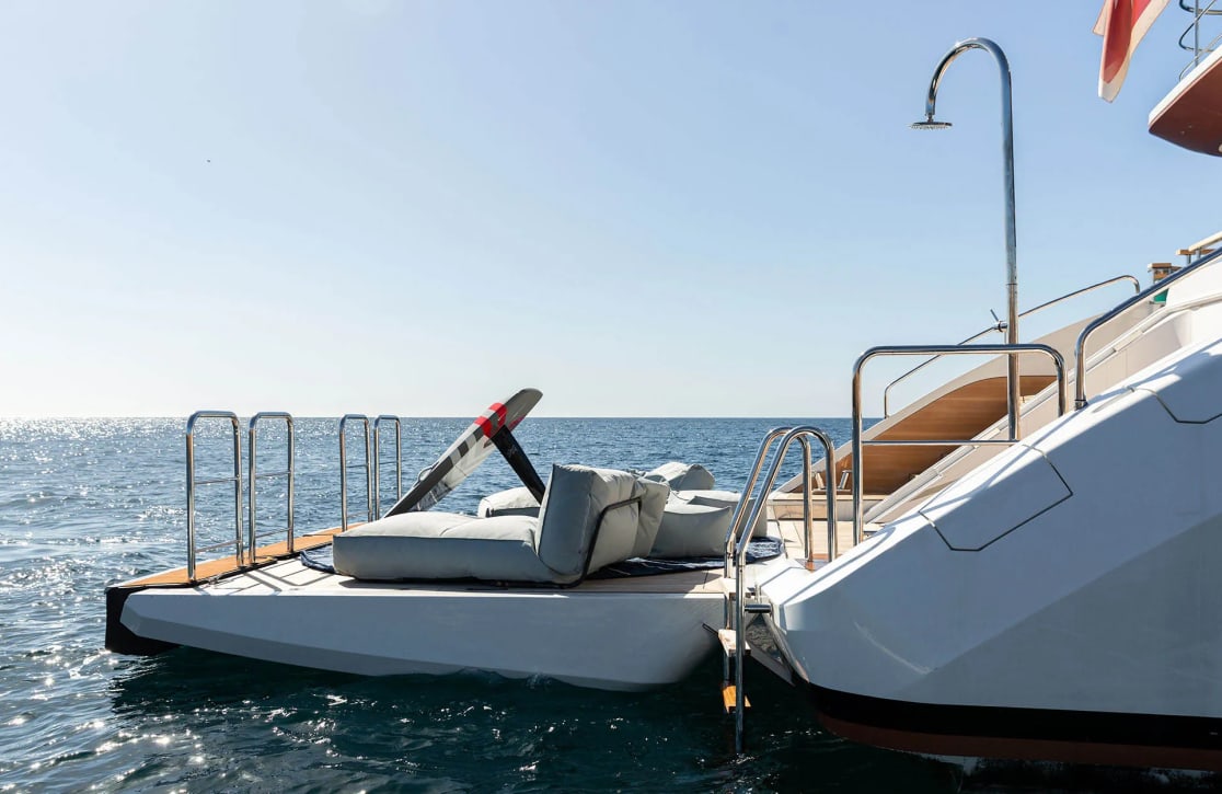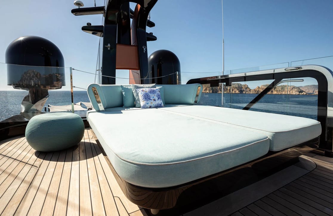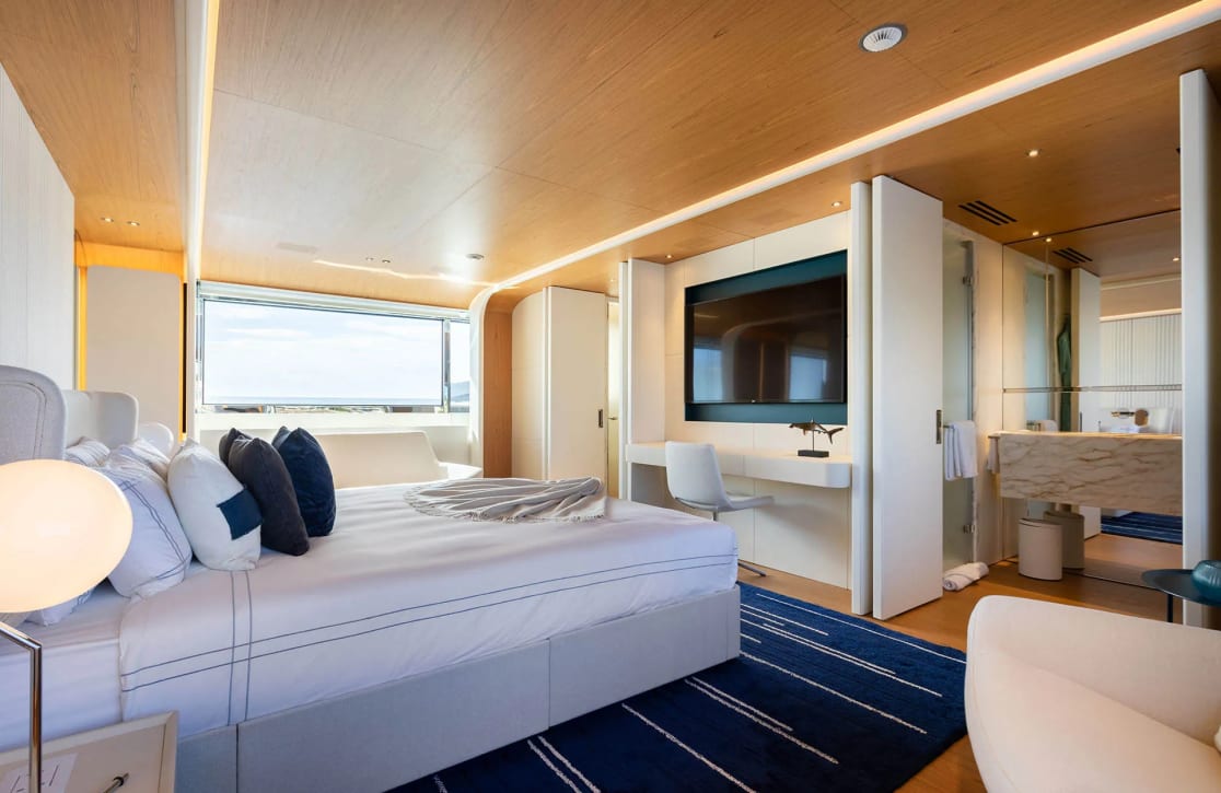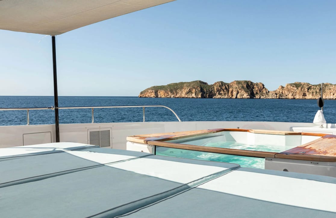 Onboard the EH2, each moment is an invitation to indulge in refined relaxation. As you recline on the sunpads with a gentle sea breeze caressing your skin, the world seems to pause. The deck jacuzzi offers a serene retreat, where evenings unfold with the sparkle of stars mirrored in your glass of champagne. Inside, modern conveniences like Wi-Fi and air conditioning ensure connectivity and comfort, while the beach club at the water’s edge beckons for tranquil afternoons. The gym equipment promises invigorating workouts against the backdrop of an ever-changing seascape.