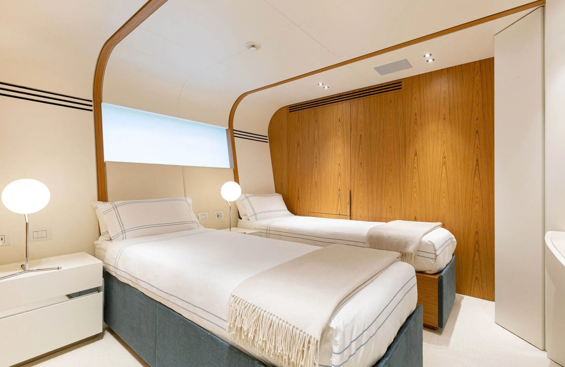 EH2 is designed to host up to 10 guests in five exquisitely appointed cabins, each offering a sanctuary of tranquility. The master suite is a haven of elegance, while four additional cabins provide versatility with configurations that suit families or friends. Every morning, wake to the gentle lapping of waves and sunlight streaming through expansive windows, as the dedicated crew of six ensures your stay is seamless and delightful. The thoughtful design and plush surroundings make every night aboard a luxurious escape.
