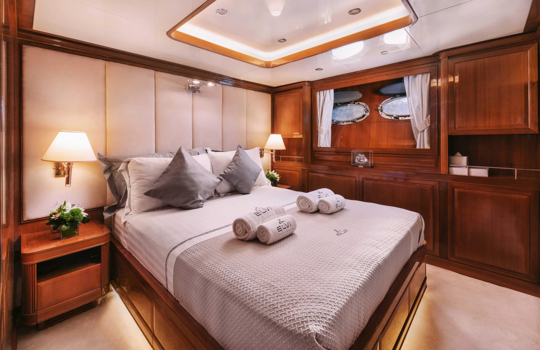 Elvi hosts up to 11 guests in five elegantly appointed cabins, each offering a serene escape after a day of adventure. The master suite is a private oasis, while the VIP and double cabins offer their own unique charm. Twin cabins provide ample space for additional guests, ensuring everyone experiences the serene rhythm of life at sea. Waking up to the gentle rocking of the yacht and the promise of another day of exploration is an experience like no other.