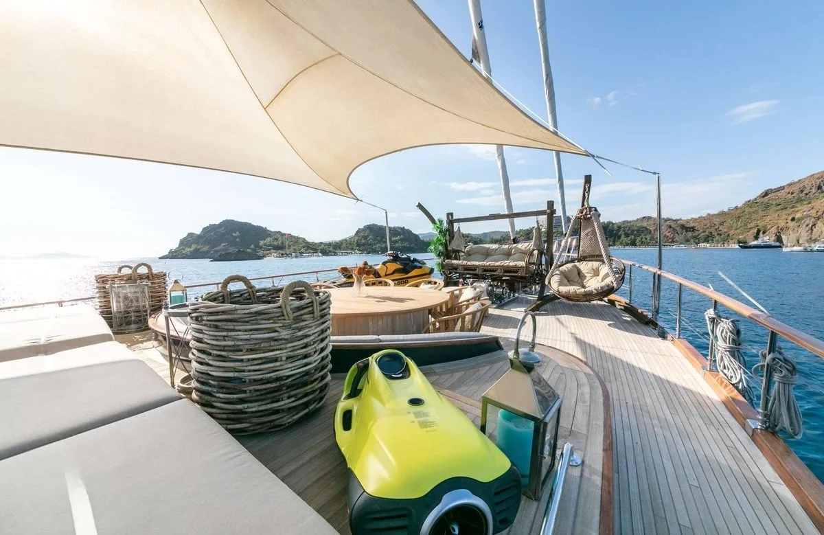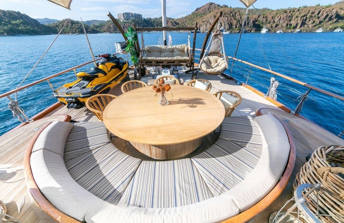 The 39-meter gulet yacht Emanuel invites you to embark on a maritime journey that seamlessly blends relaxation and adventure. Crafted by the esteemed Custom shipyard, Emanuel is an elegant vessel offering expansive decks and premier outdoor living spaces. As you traverse the azure waters of the Mediterranean, each day unfolds with new horizons to explore both onboard and ashore. With a cruising speed of 10 knots and the capability to cover 1,500 nautical miles, Emanuel ensures your voyage is as smooth as it is memorable. The wooden hull and superstructure, combined with twin Cummins engines, reflect both tradition and performance, making Emanuel a distinguished choice for those seeking an unforgettable yachting experience.