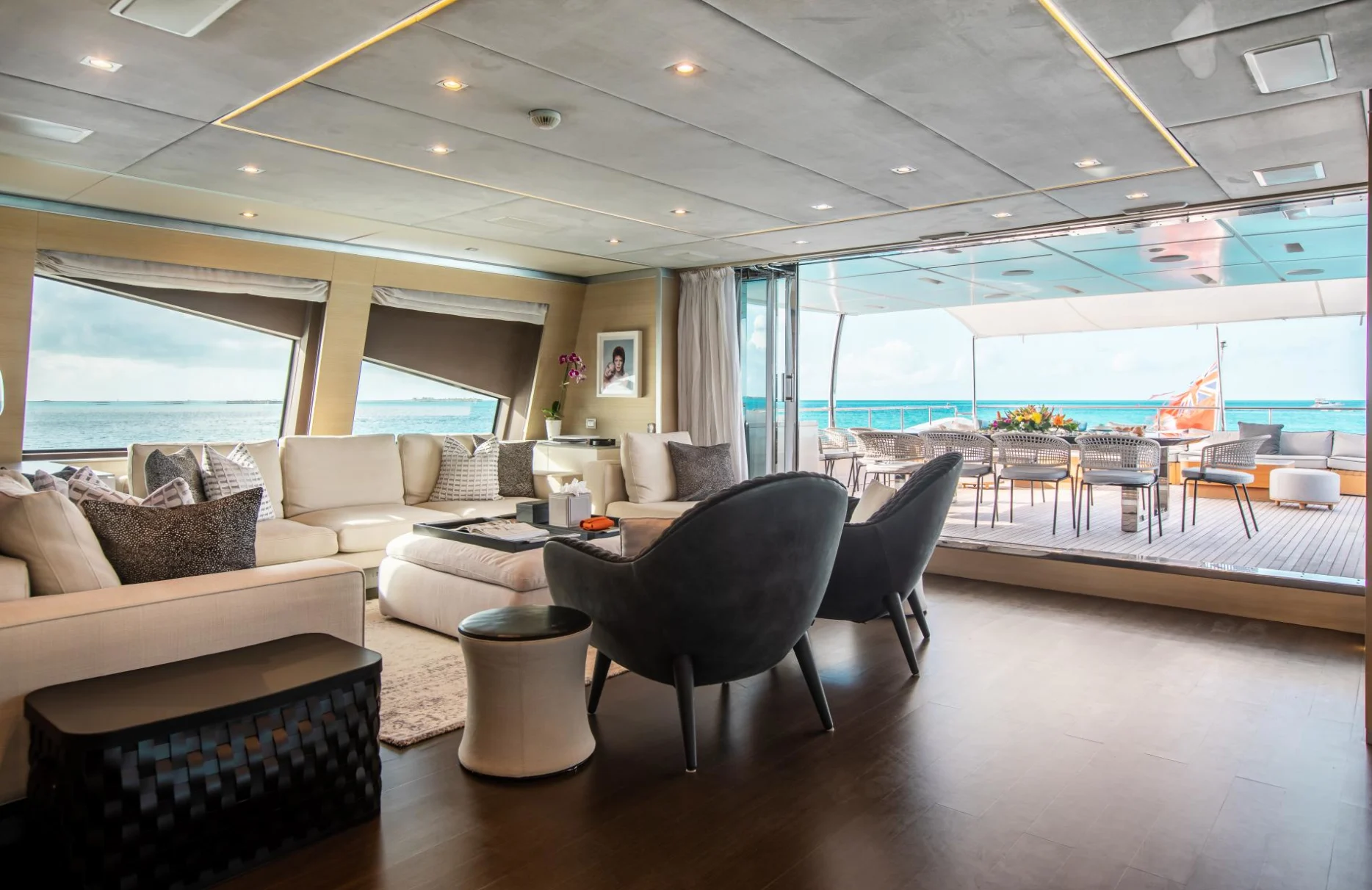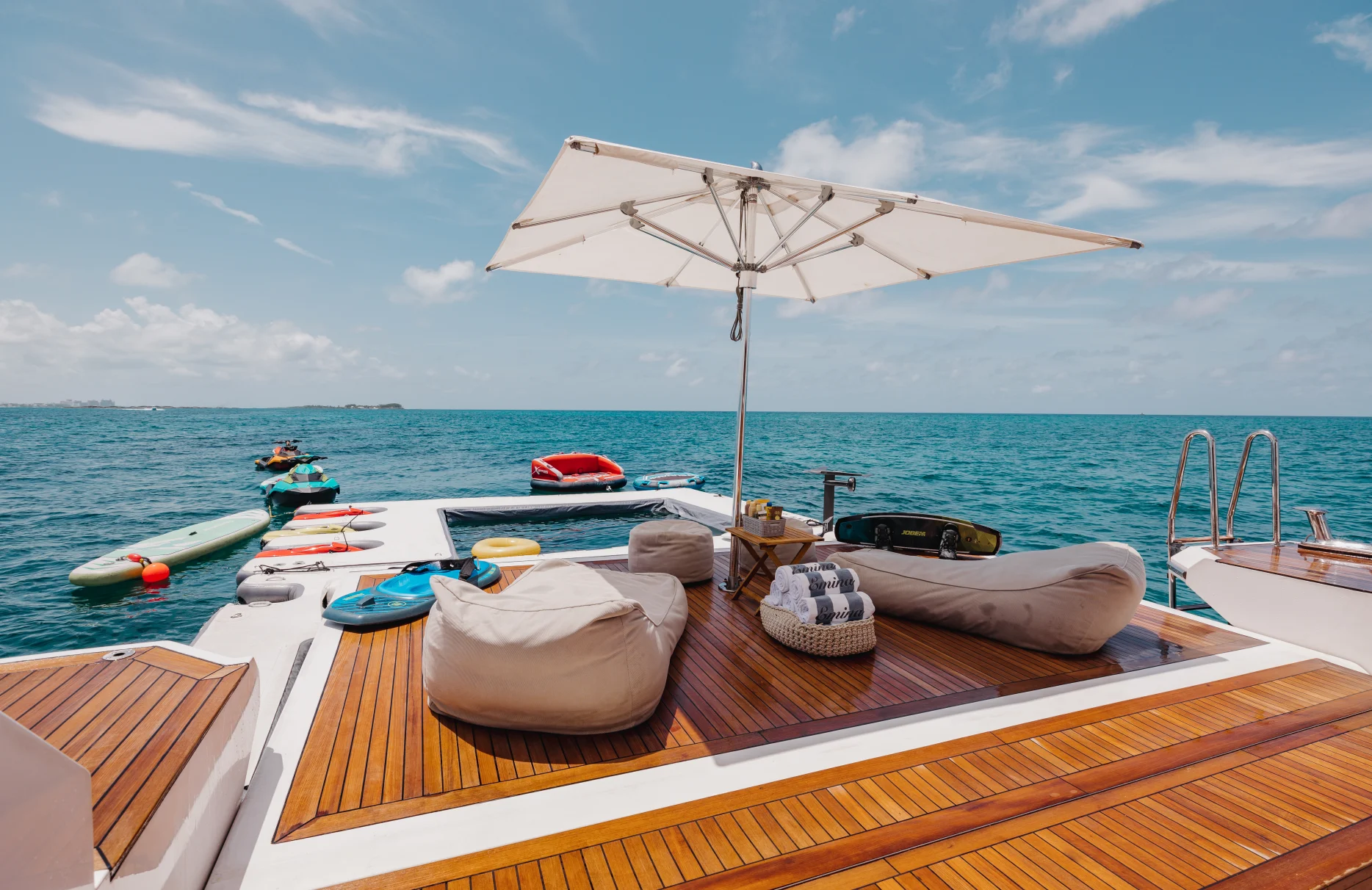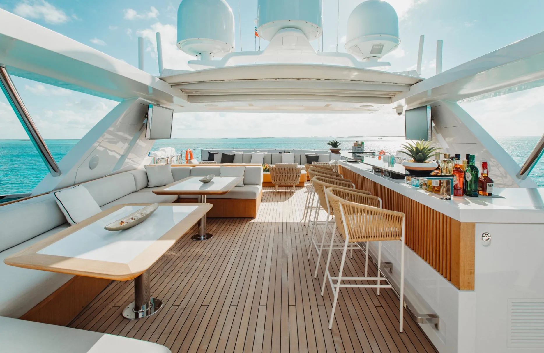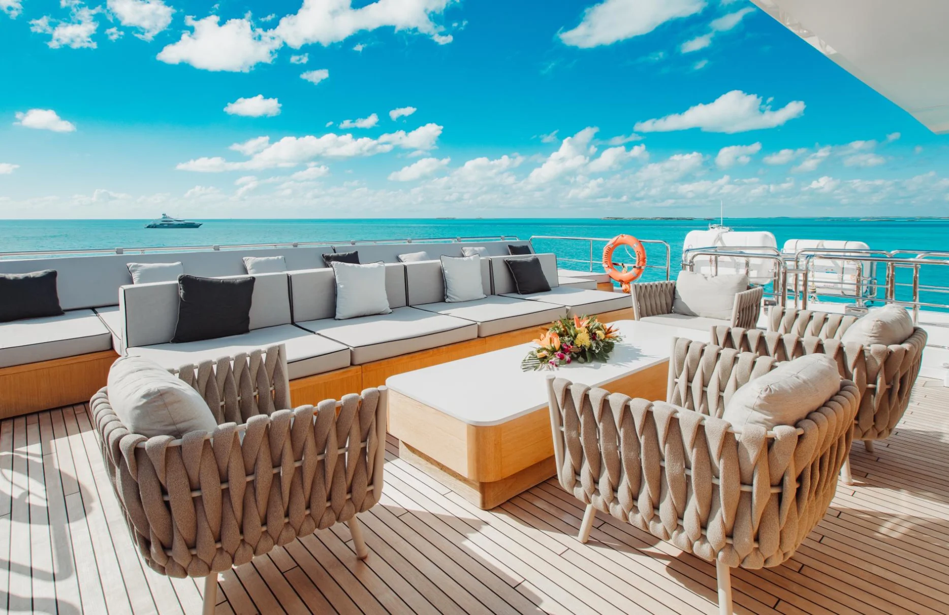 Onboard Emina, each day unfolds with a promise of rejuvenation and delight, thanks to an array of thoughtfully designed spaces and amenities. Begin your morning with an invigorating workout in the state-of-the-art gym, followed by a refreshing dip in the pool, where the water mirrors the azure sky. As the day transitions to evening, the deck jacuzzi becomes the ideal retreat for unwinding, a glass of champagne in hand, under a canopy of stars. The beach club offers a sanctuary for those moments when indoor-outdoor living beckons, while modern conveniences like Wi-Fi and air conditioning ensure a seamless blend of connectivity and comfort.