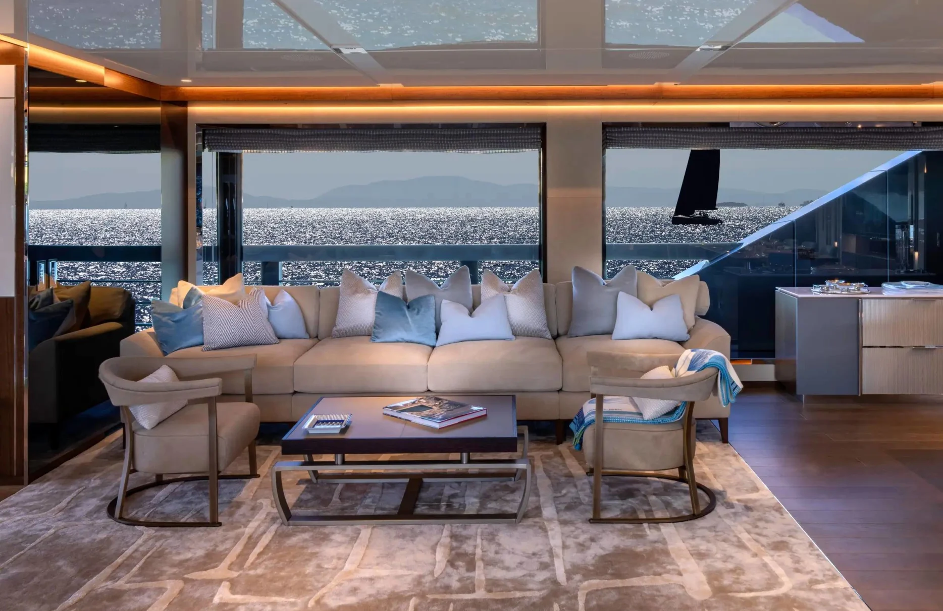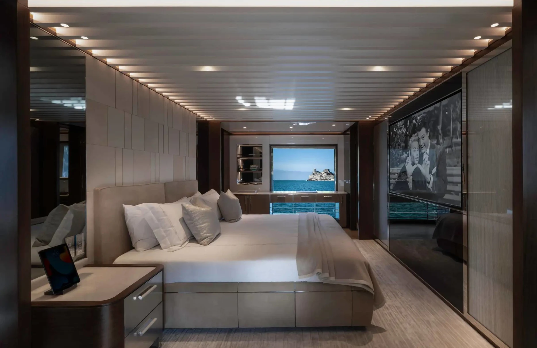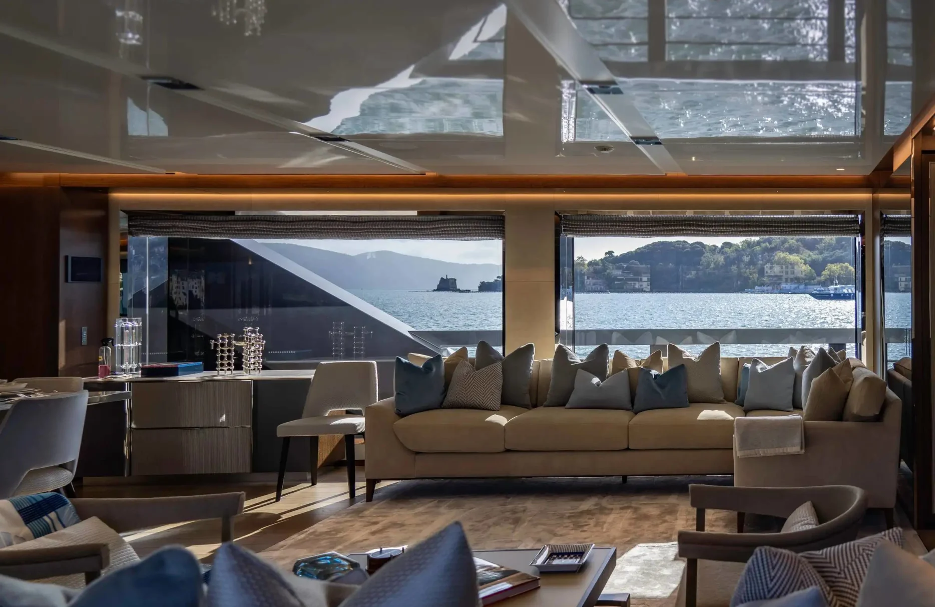The Enterprise accommodates up to 10 guests in five splendid cabins, each a sanctuary of comfort and sophistication. The master suite is a private oasis with its own study and his-and-hers bathroom, ensuring a restful retreat. Two VIP cabins and two flexible cabins, which can be configured as twins or doubles, cater to every guest’s preference. As the morning sun filters through your window, waking up aboard the Enterprise is an exquisite experience, where the gentle sway of the yacht and the sound of waves provide the most serene alarm clock.
