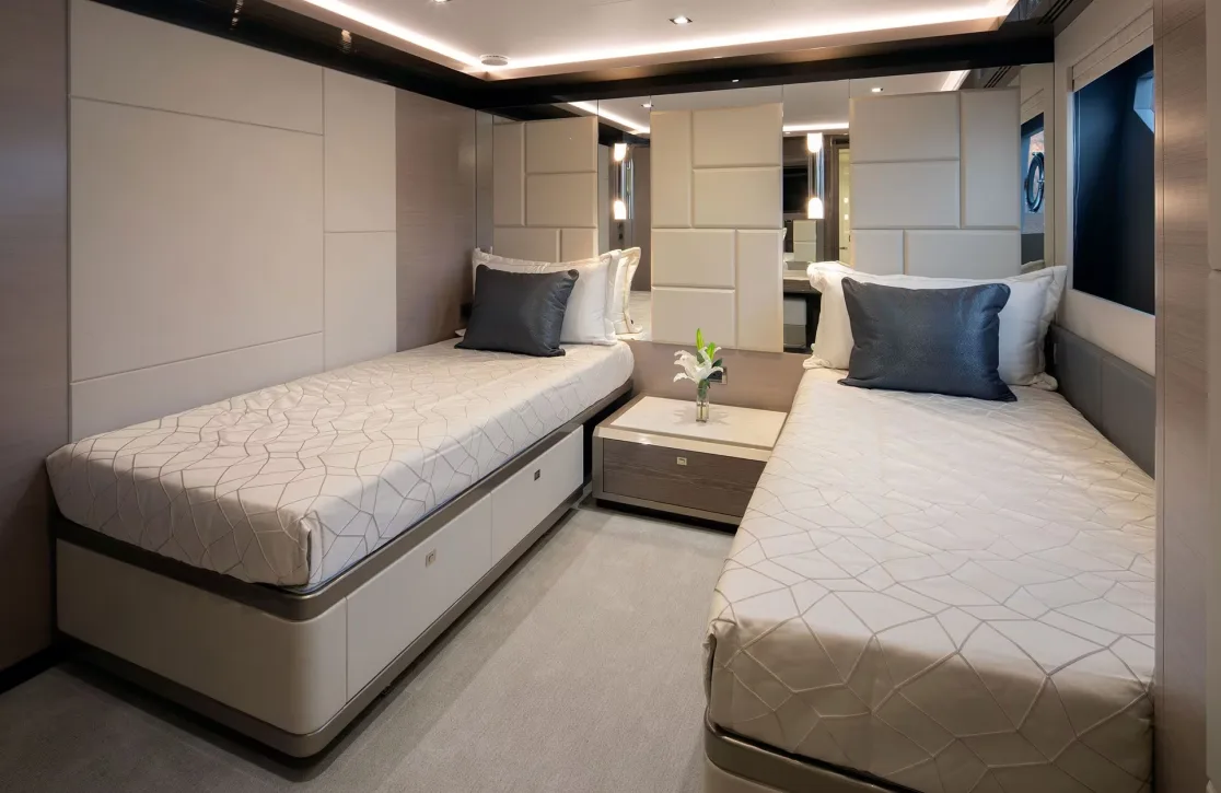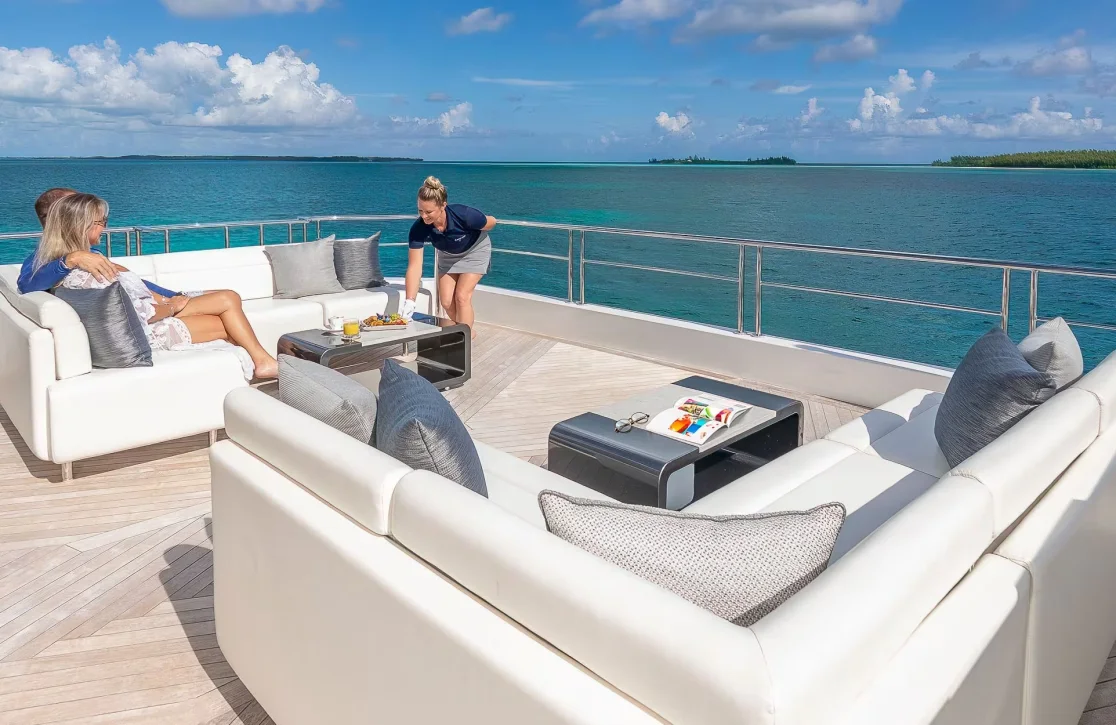 The accommodations on the Entrepreneur are a testament to refined comfort. With five rooms, including sumptuous master and VIP suites, the yacht graciously hosts up to 10 guests. Each cabin is a sanctuary, offering panoramic views that greet you each morning with the promise of a new adventure. The gentle sway of the yacht and the whisper of the sea create a cocoon of tranquility, ensuring a restful sleep and invigorating mornings.