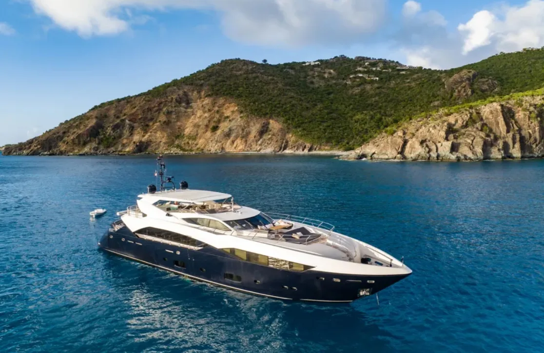 Imagining your next oceanic journey? The 115-foot Ever East, crafted by the esteemed Sunseeker, offers an unparalleled maritime escape. This elegant vessel, with a sleek design and modern finishes, invites you into a world where sophistication meets adventure. As you cruise at a comfortable 17 knots, or reach exhilarating speeds of up to 26 knots, the sea becomes your playground. With a range extending over...