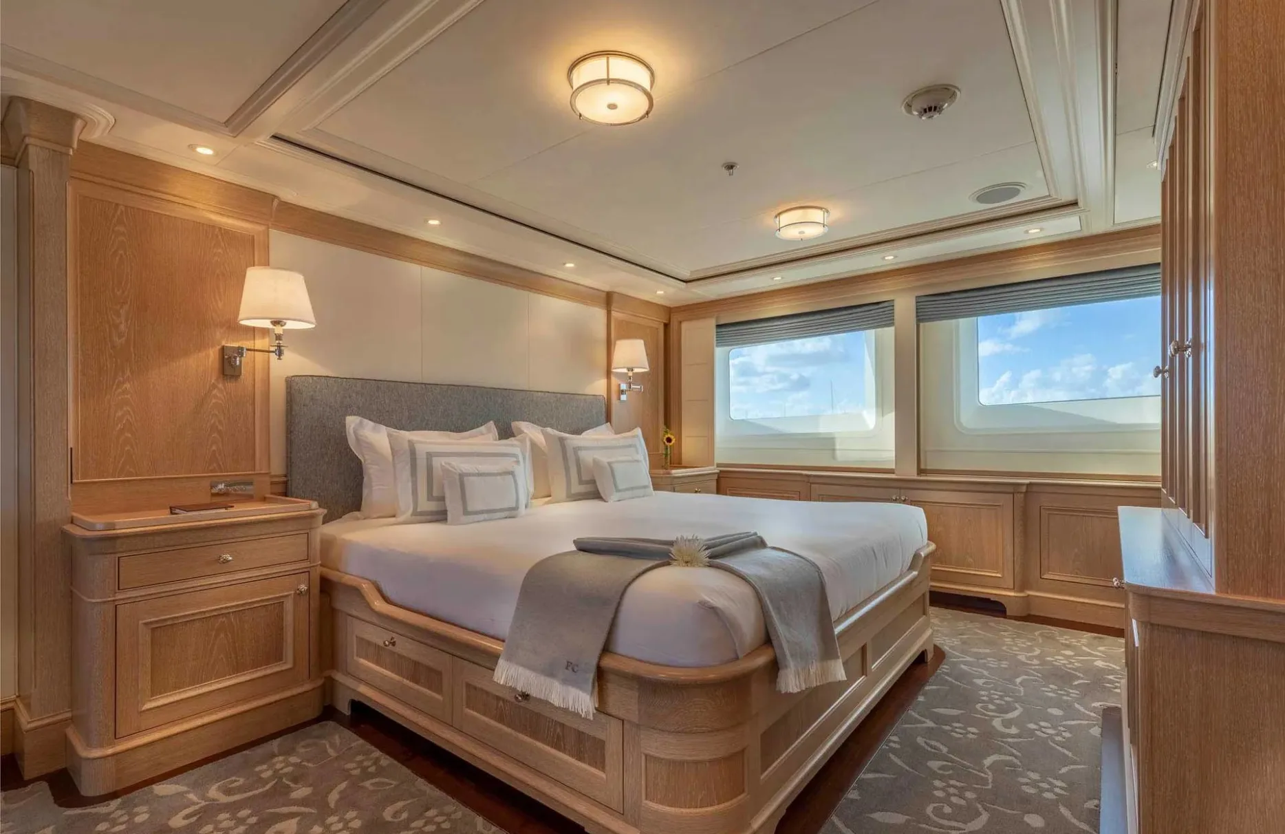Awaken to the gentle sway of the ocean in one of Fabulous Character’s five exquisitely designed cabins. Accommodating up to 10 guests, each room is a haven of rest and rejuvenation. The master suite is a sanctuary of elegance, while the two double cabins and two twin cabins offer versatile sleeping arrangements for family and friends. With the assurance of a dedicated crew catering to your every need, your stay promises to be as restful as it is refined.