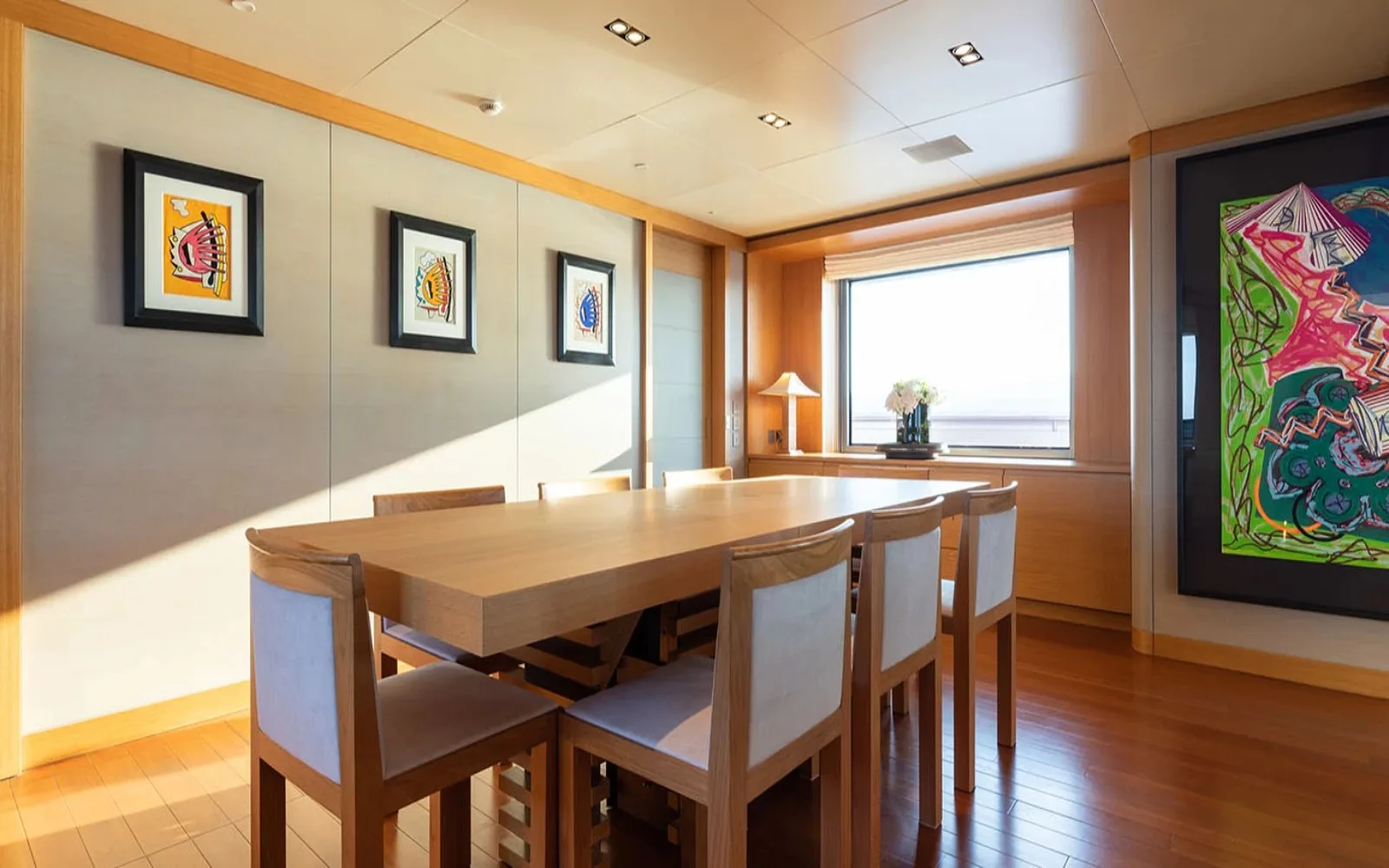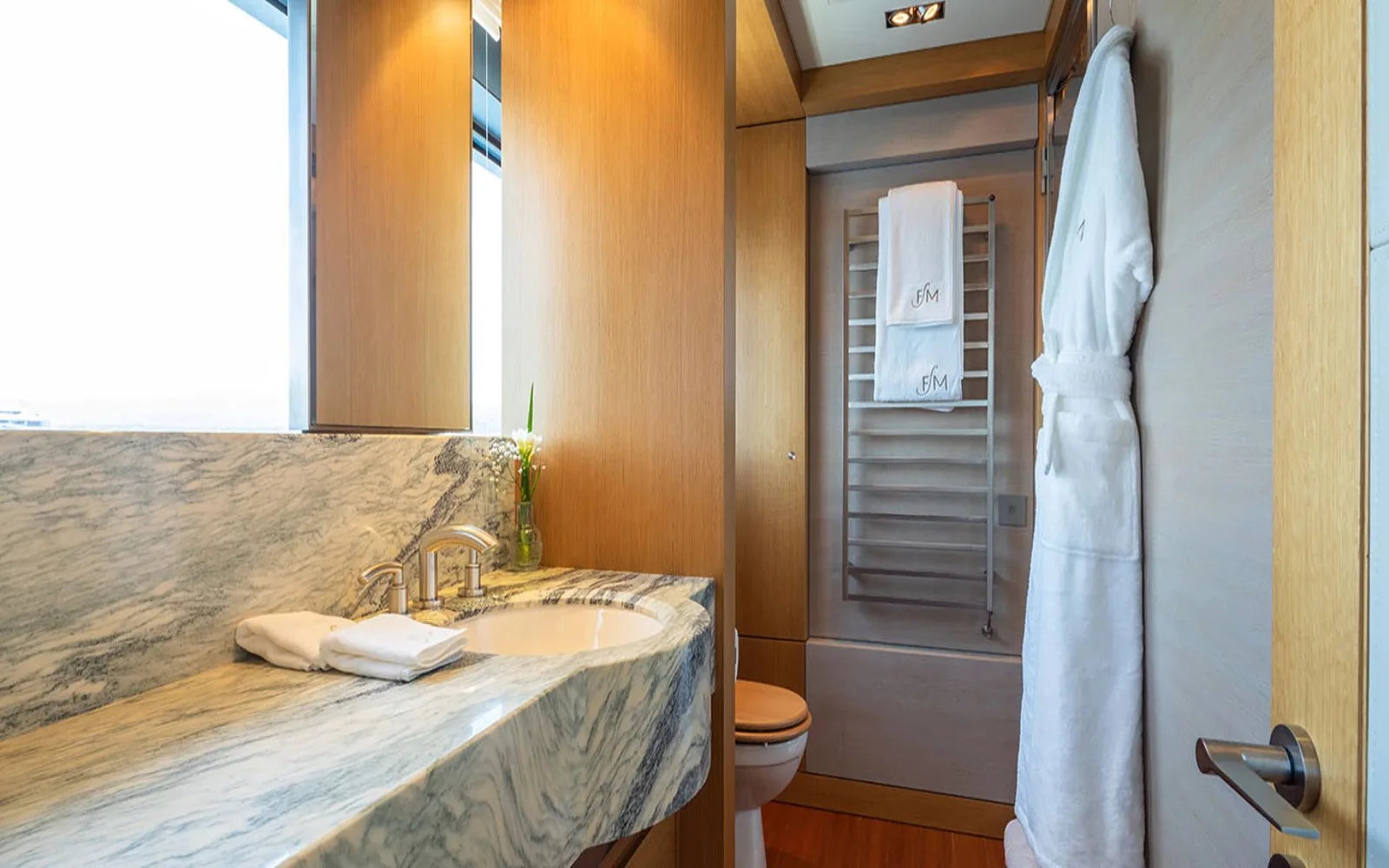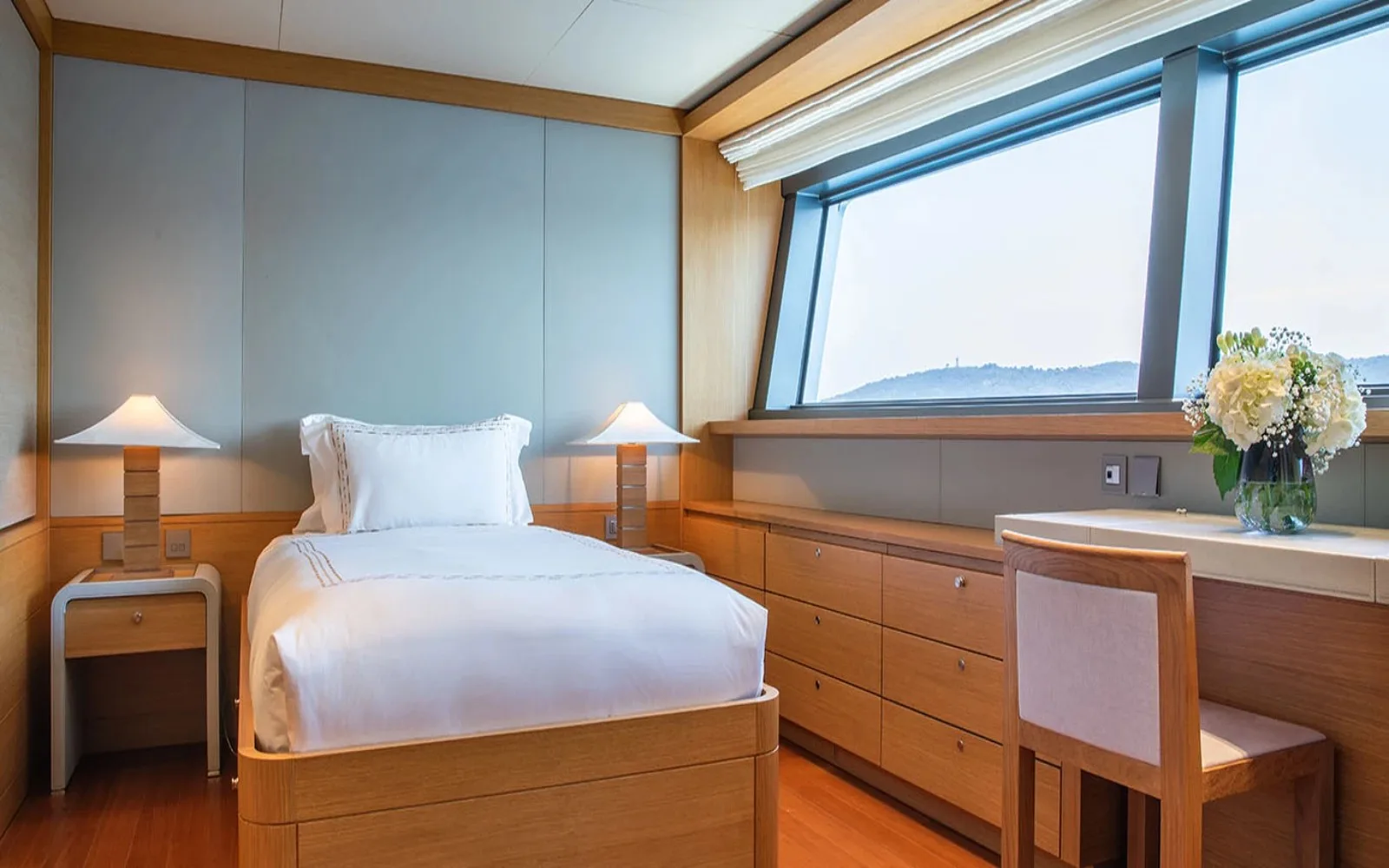The Falco Moscata accommodates up to 9 guests in five beautifully appointed cabins, offering an intimate retreat after days of exploration. Awaken to the gentle sway of the ocean in the master suite or one of the two VIP cabins, where luxurious furnishings and thoughtful design details create a serene haven. The twin cabin provides a cozy sanctuary, ensuring restful slumber for all aboard. Each cabin is a testament to elegance, where waking up to panoramic ocean views becomes a daily pleasure, and the gentle rhythm of the sea lulls you into restful nights.