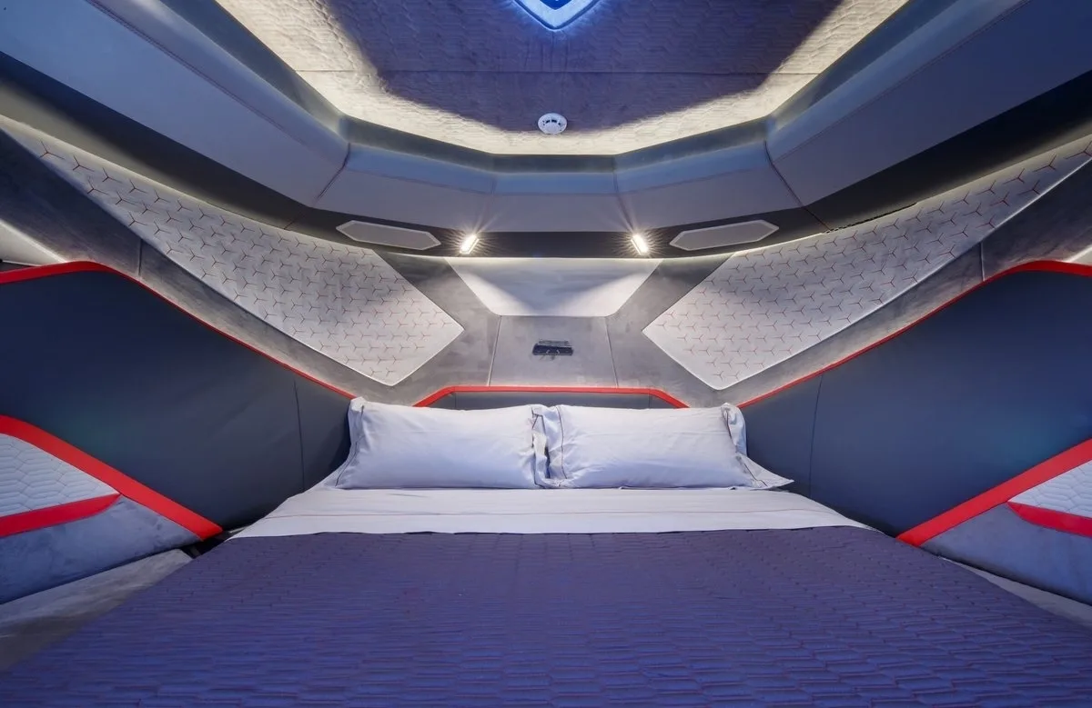 Fast One seamlessly marries the thrill of speed with the elegance of a refined getaway. This exceptional creation from Tecnomar, in collaboration with Lamborghini, stretches 66 feet across the azure waters, promising an experience that is as exhilarating as it is opulent. Launched in 2022, she invites you to blaze through the Mediterranean, where every moment on board is a testament to her pedigree of performance and style. With the capability to reach speeds of up to 60 knots, Fast One makes every journey a spirited adventure, yet offers the tranquility needed to enjoy the serene beauty of destinations like the French Riviera and the Amalfi Coast.