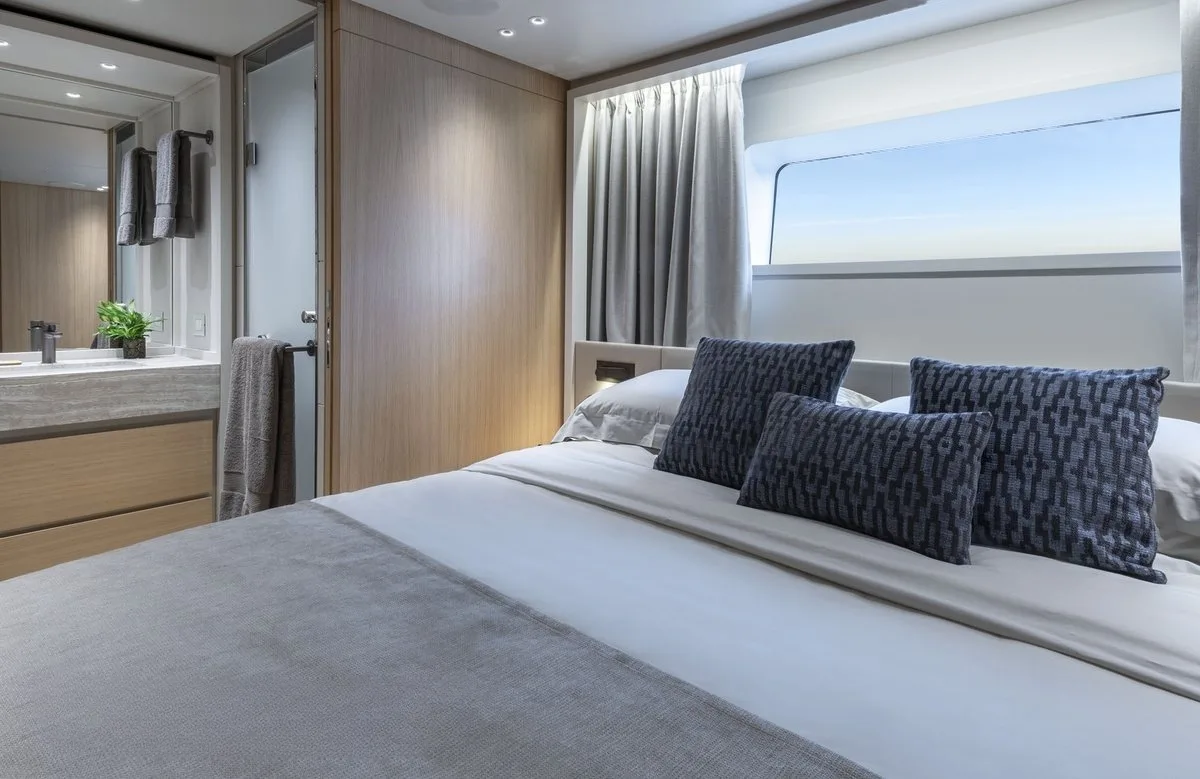 Retreat to Fatsa’s five spacious cabins, offering a sanctuary for up to 11 guests. Each room is a testament to refined elegance, where waking up to the gentle rock of the sea is a daily luxury. The master suite, VIP, double, and twin cabins are thoughtfully designed with a blend of king, queen, and single beds, ensuring a restful night’s sleep after a day of exploration. Here, personal space becomes a haven, a place to rejuvenate in preparation for another day of Mediterranean discovery.