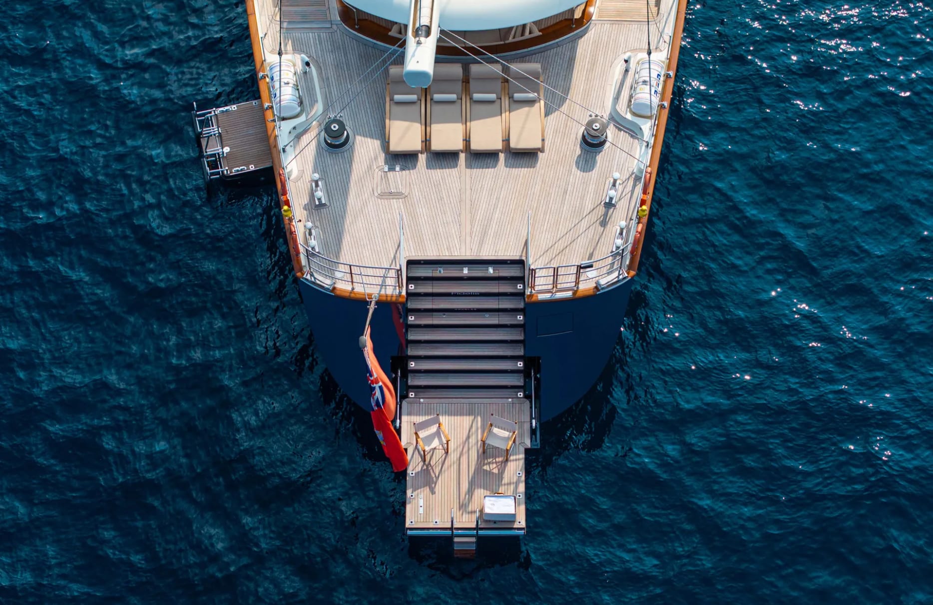 Step into a world of refined elegance aboard Fidelis, a 56-meter masterpiece crafted by the esteemed Perini Navi. As you set sail on this majestic vessel, you are invited to indulge in a journey where timeless beauty meets modern sophistication. With her graceful lines and spacious decks, Fidelis offers an exquisite sanctuary on the open sea, seamlessly blending the thrill of sailing with the serenity of a floating retreat. Whether basking in the sun on her expansive decks or savoring an alfresco meal under the stars, every moment aboard is designed for ultimate relaxation and enjoyment.