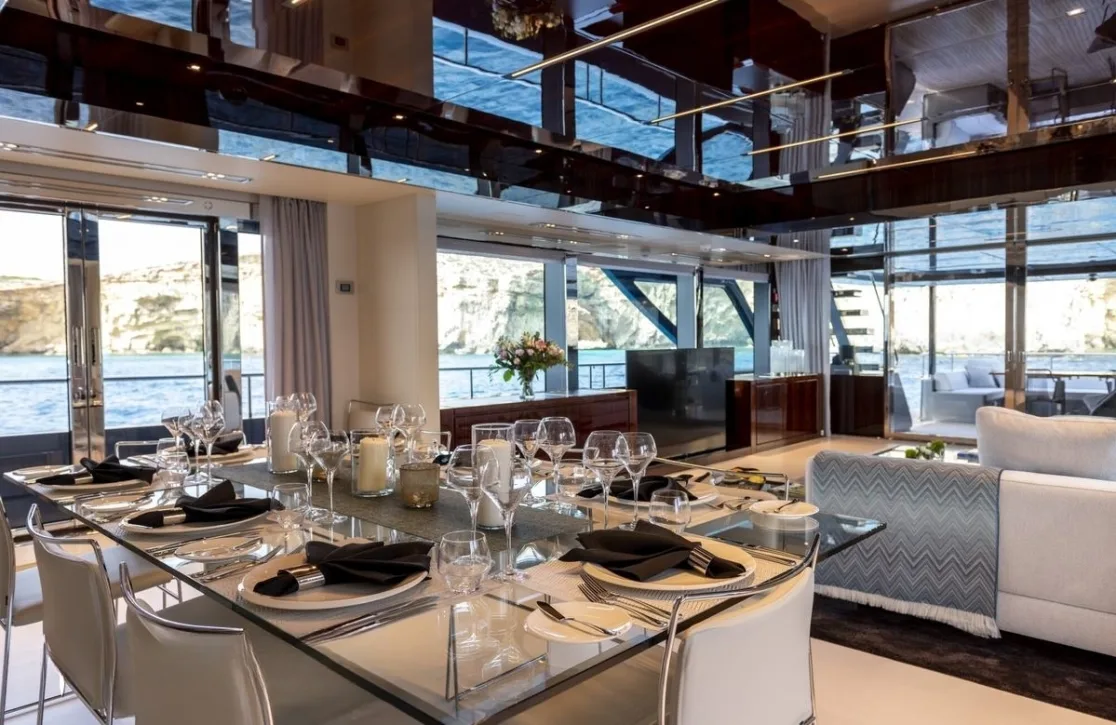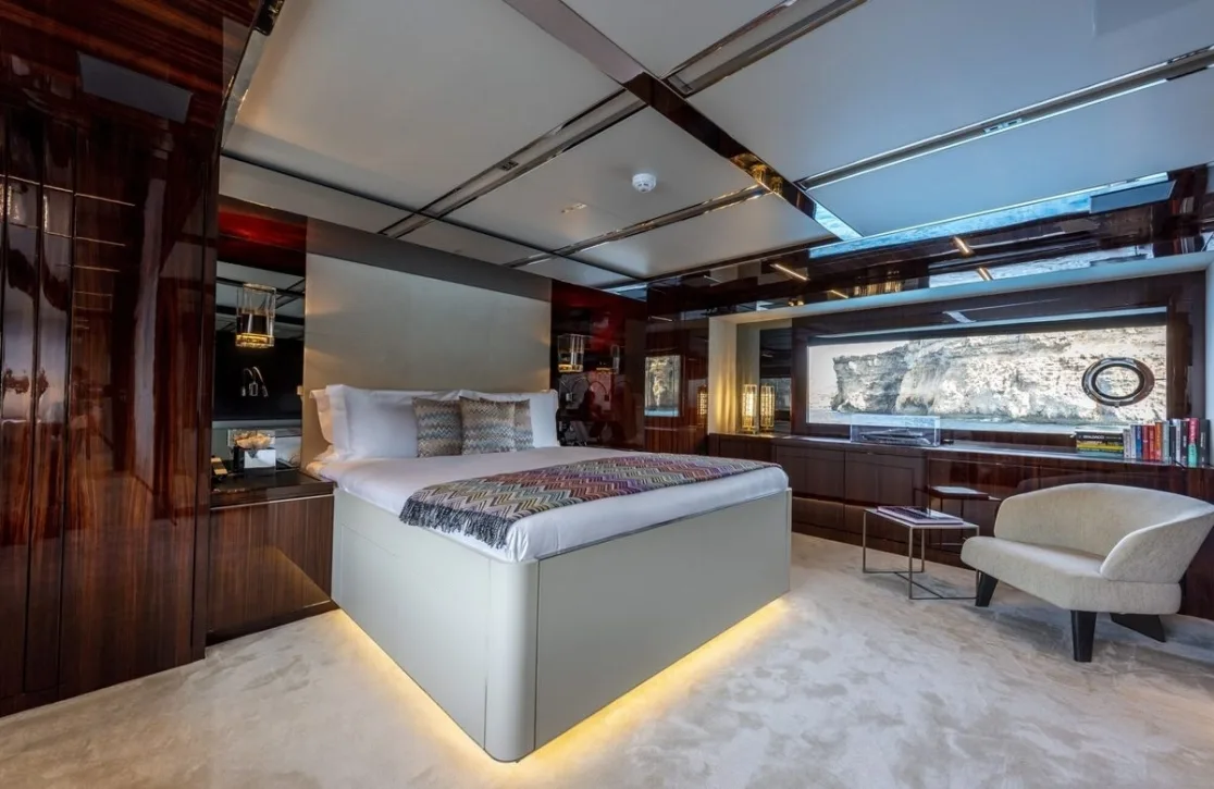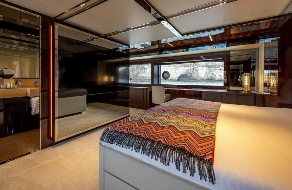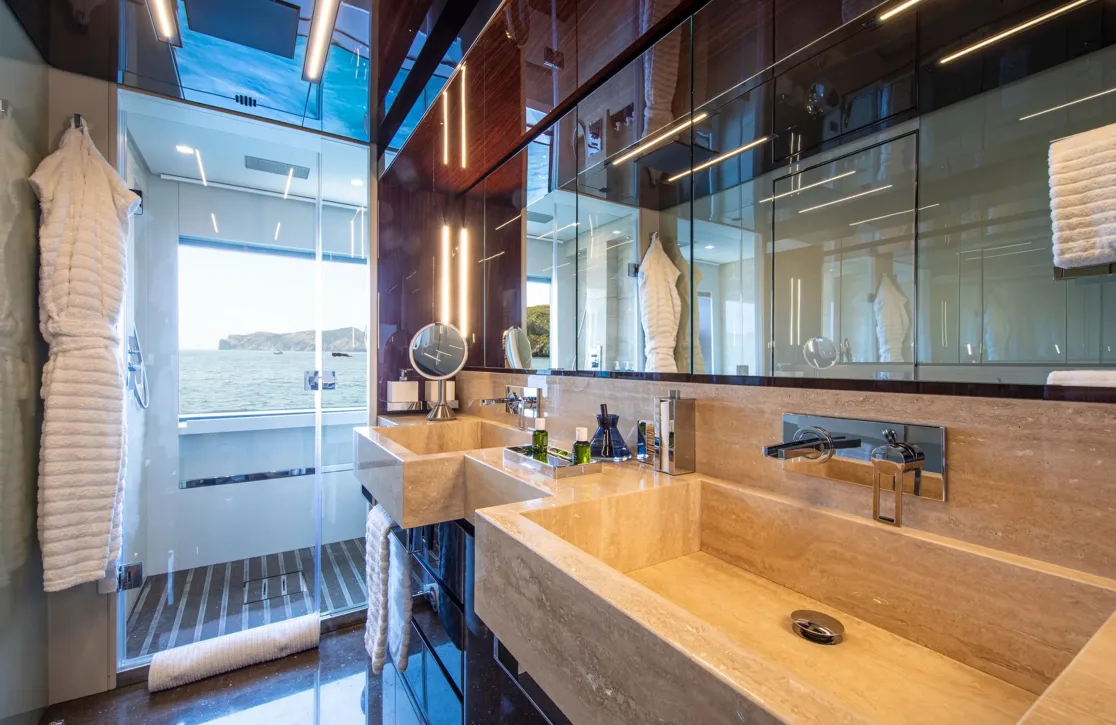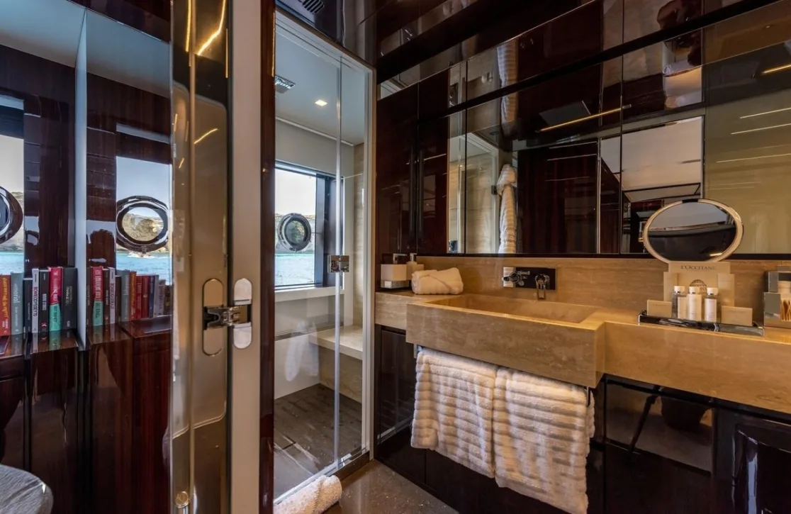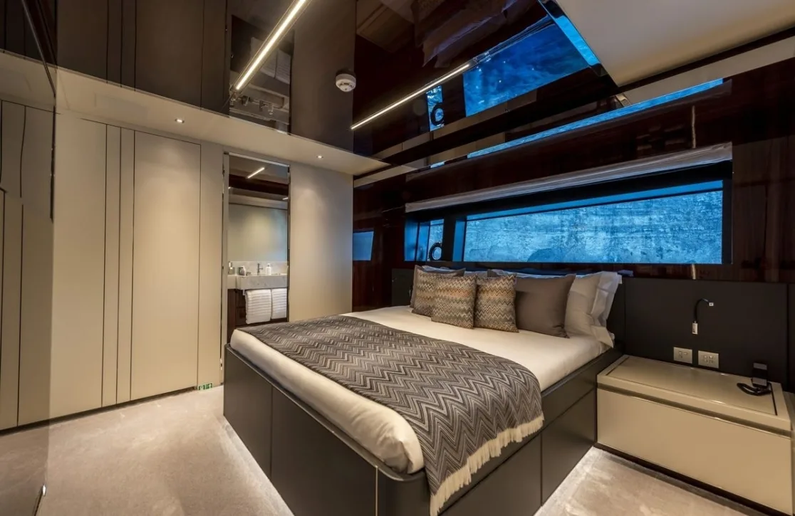 Figurati welcomes up to ten guests into a world of refined comfort across five impeccably designed cabins. The master suite offers a serene retreat with its spacious layout and plush king-size bed. Two additional double cabins and two versatile twin/double cabins ensure every guest experiences unparalleled comfort. Waking up to the gentle sway of the sea and panoramic views from your window is a daily reminder of the unique privilege of life aboard Figurati.