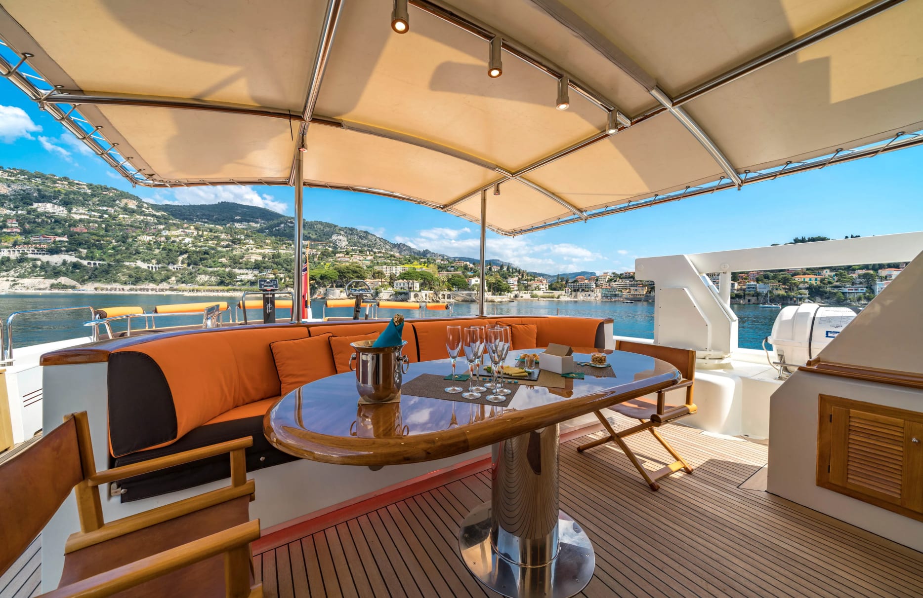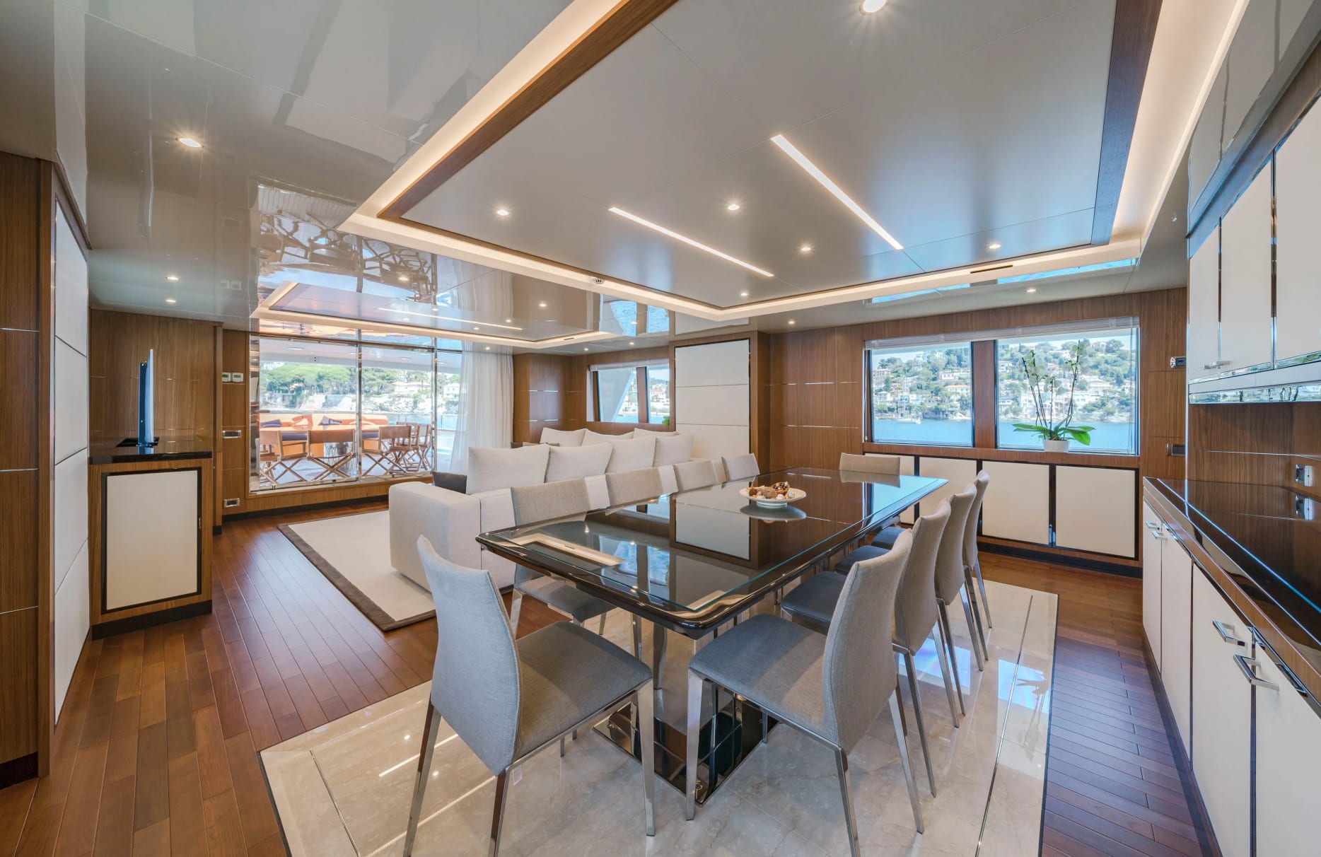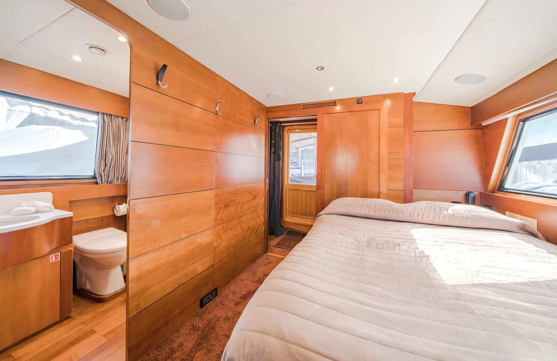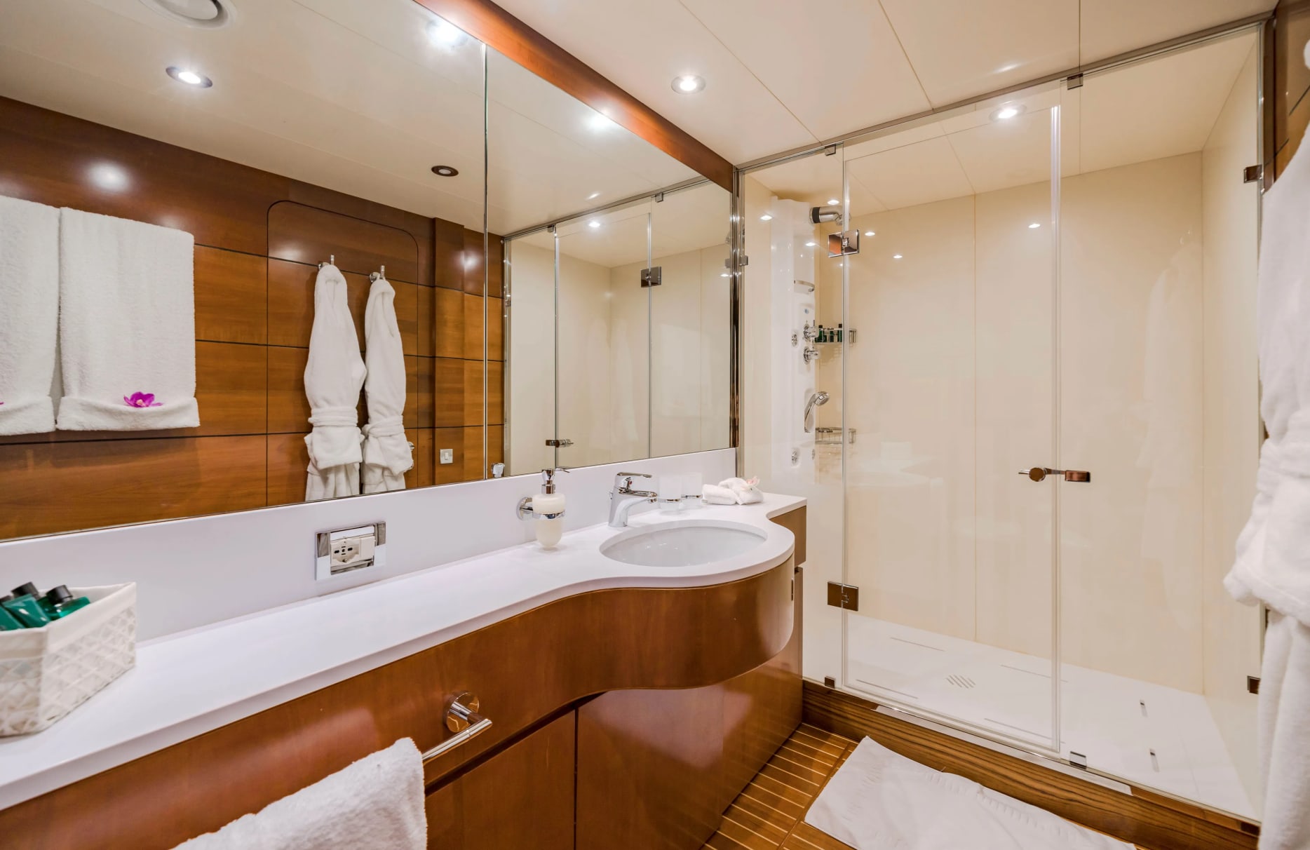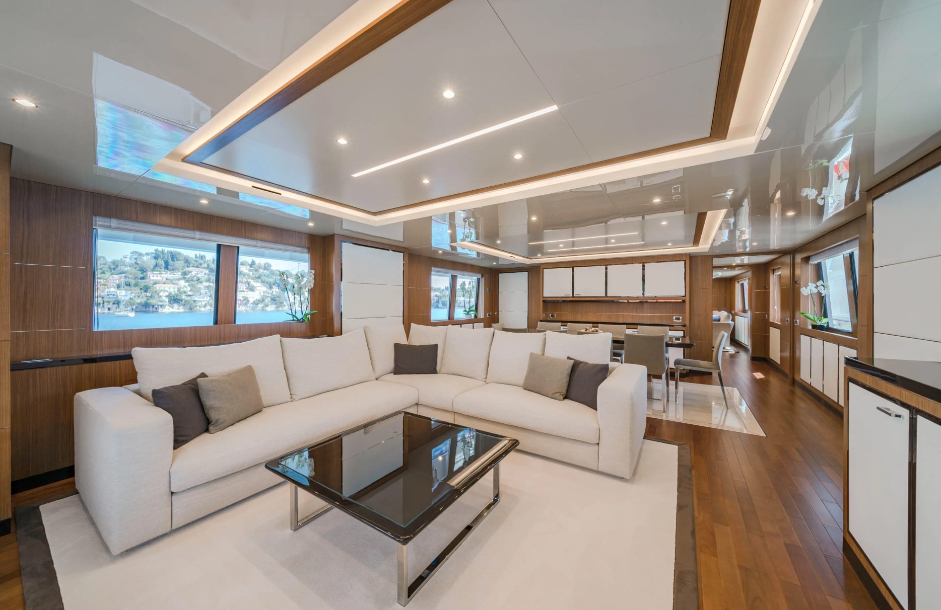 Onboard Fiorente, indulgence meets tranquility in spaces designed to soothe and inspire. The spacious decks elegantly blend indoor and outdoor living, offering an idyllic backdrop for both intimate gatherings and grand celebrations. With Wi-Fi to keep you connected and stabilizers ensuring a smooth passage, you can enjoy each moment without a care in the world. As the day fades, the allure of satellite TV adds a touch of home, bringing familiar comforts to your ocean retreat. Every detail aboard is curated to enhance your experience, from the gentle sea breeze to the refined interiors.