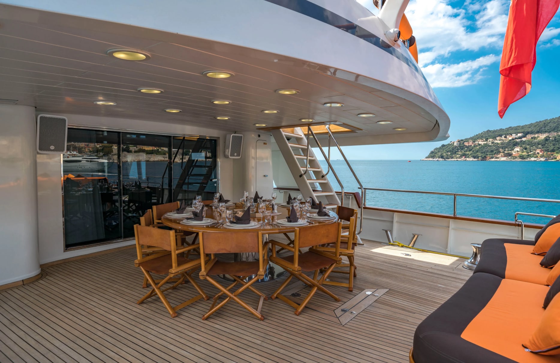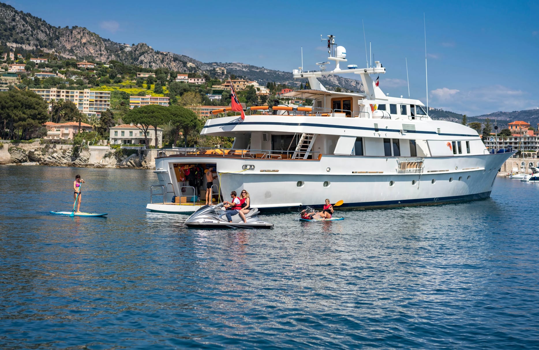 Fiorente invites you to step into a world where the sea is both your playground and your sanctuary. This 37-meter vessel, crafted by Ferronavale, seamlessly merges elegance and comfort, thanks to the touch of designer Alberto Pinto. With a cruising speed of 10 knots and the capability of reaching up to 14 knots, Fiorente is not just a yacht but a passage to the enchanting locales of the Mediterranean. Her full-displacement hull ensures a smooth journey, letting you focus on the art of relaxation and the thrill of exploration. As you embark on this journey, the experienced crew of six stands ready to cater to your every need, ensuring a week on the water that is as serene as it is invigorating.