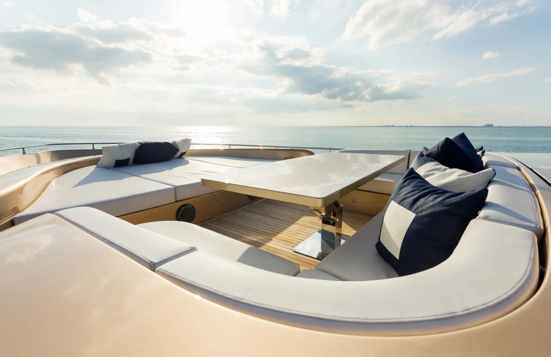 Aboard ‘Five Waves,’ each moment is an invitation to unwind and indulge. Sun-drenched days are spent lounging on sumptuous sunpads or soaking in the deck jacuzzi, with panoramic views as your backdrop. As evening descends, the yacht transforms with enchanting underwater lights, setting the stage for elegant gatherings or tranquil solitude. The air-conditioned interiors provide a cool retreat, while an exterior bar offers a perfect spot for a refreshing cocktail as you recount the day’s adventures.