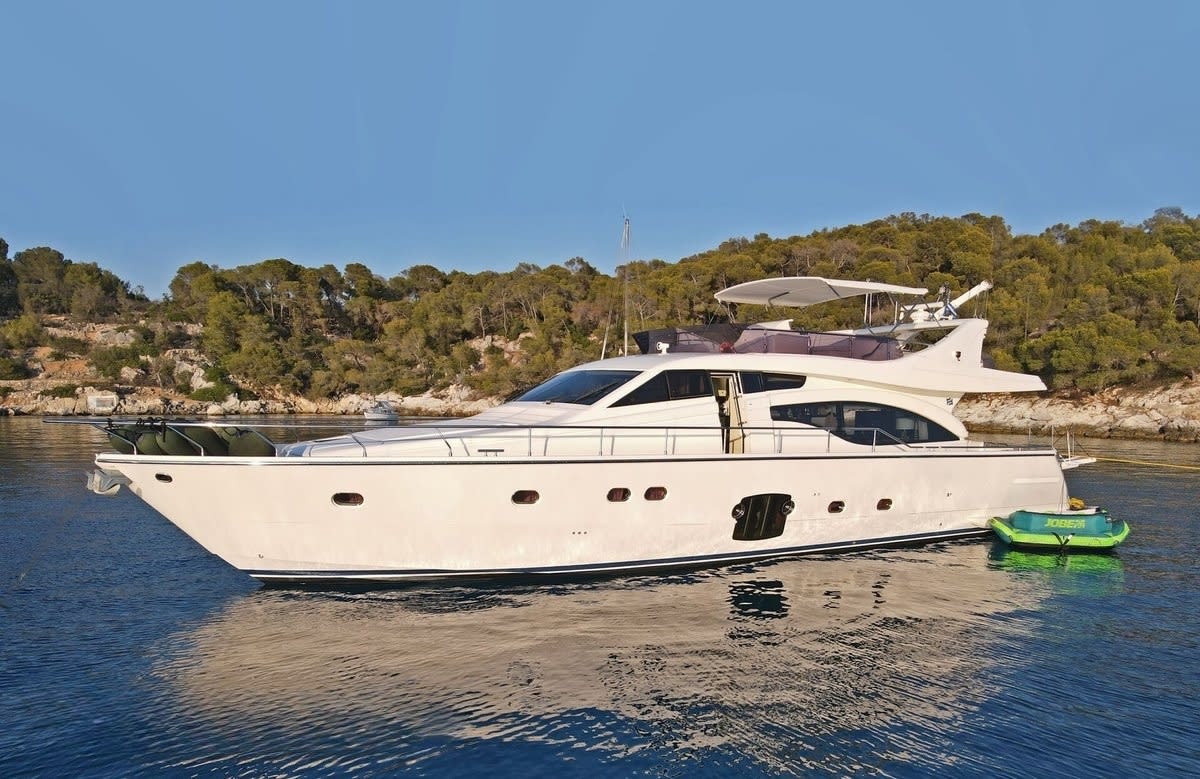 Imagine your next escape aboard the 21-meter motor yacht ‘Flow’, a marvel crafted by the esteemed Ferretti Yachts. As you embark on this nautical voyage, you’ll find yourself enveloped in an atmosphere of sophistication and exploration. Built in 2008 and maintained to the highest standards, Flow invites you to discover secluded coves and bustling harbors alike, thanks to her shallow draft of 1.7 meters, allowing...