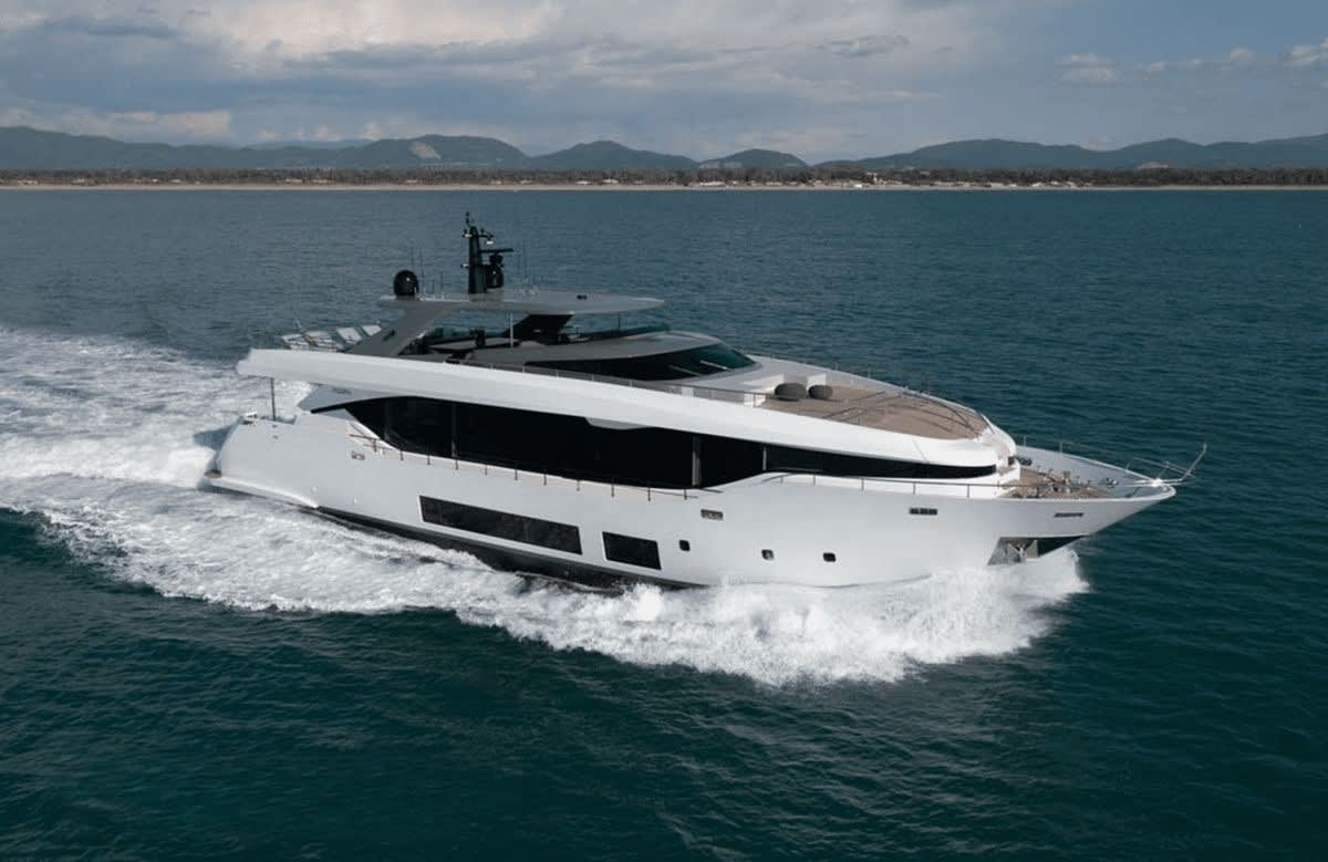 Step into a world of sophistication and elegance aboard the 100-foot motor yacht ‘Four Joys.’ Crafted in 2023 by the illustrious Maiora shipyard, this magnificent vessel seamlessly marries sleek modern design with the timeless allure of the open sea. With a cruising speed of 17 knots and a remarkable range of 1,350 nautical miles, ‘Four Joys’ offers an invitation to explore the Mediterranean’s most enchanting locales. Whether you’re savoring the sun-kissed coastlines or delving into the rich cultural tapestry ashore, every moment aboard promises to be an unforgettable escape.