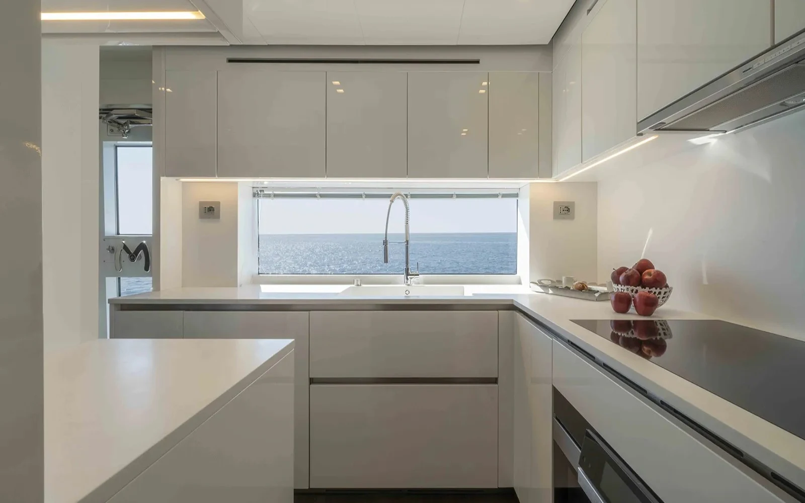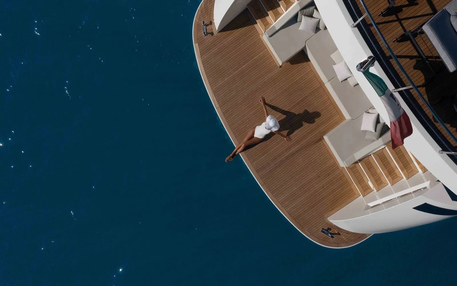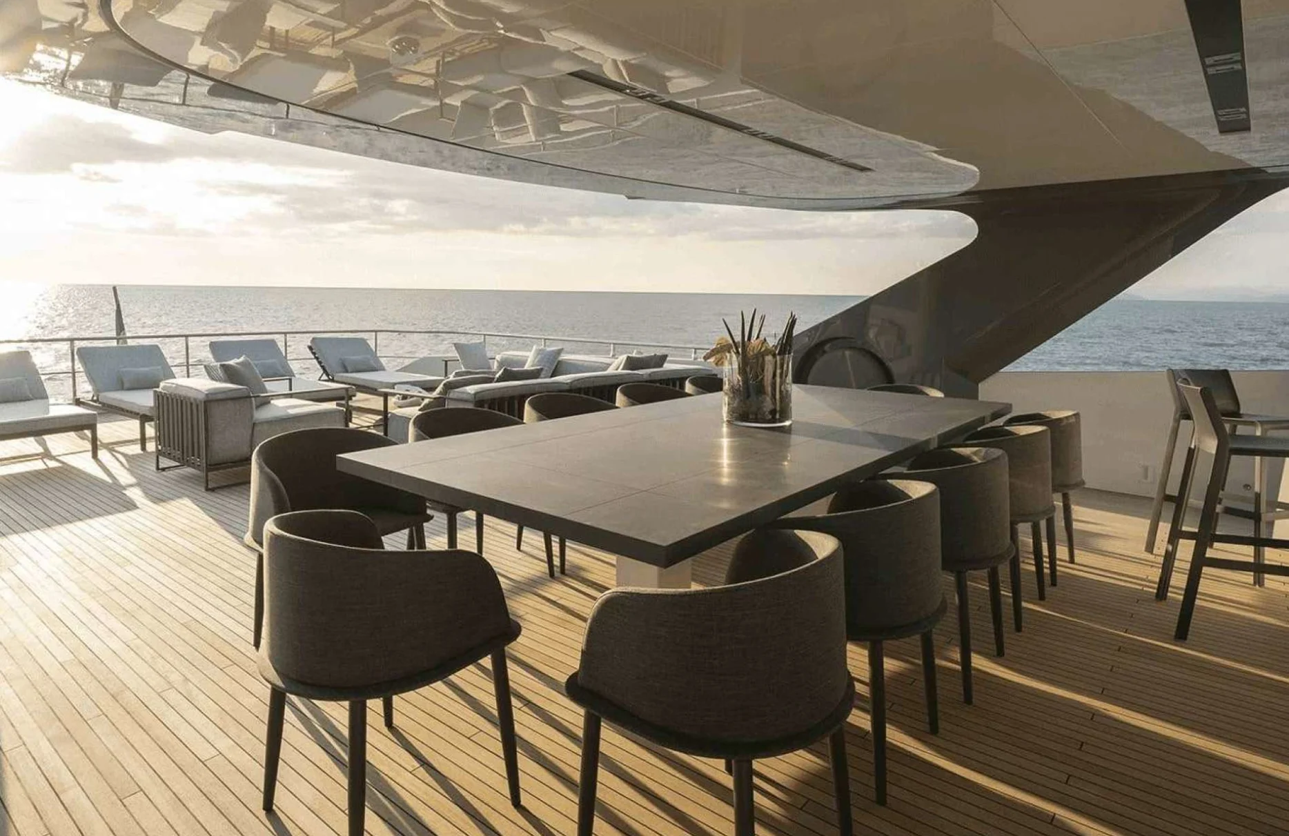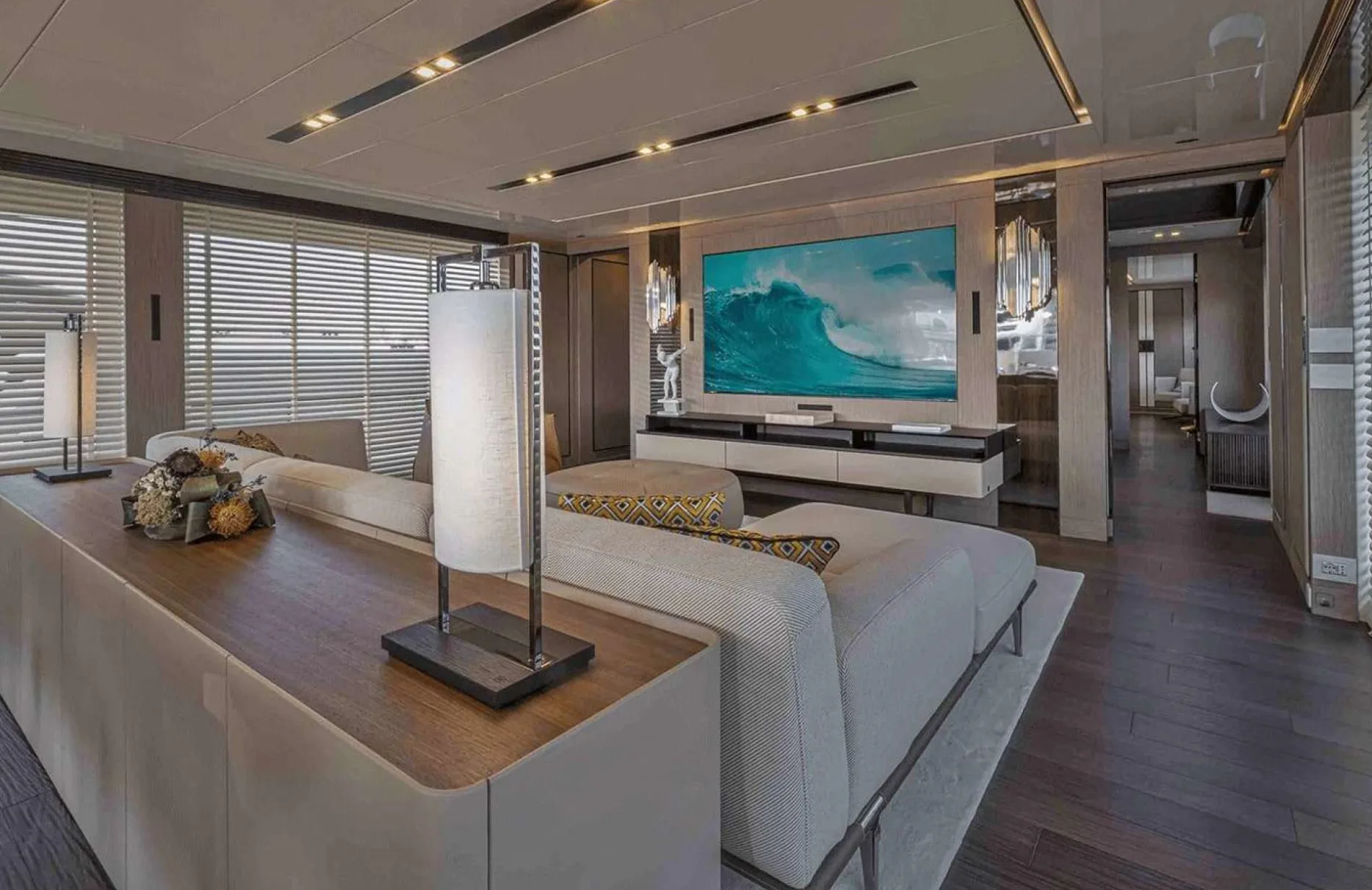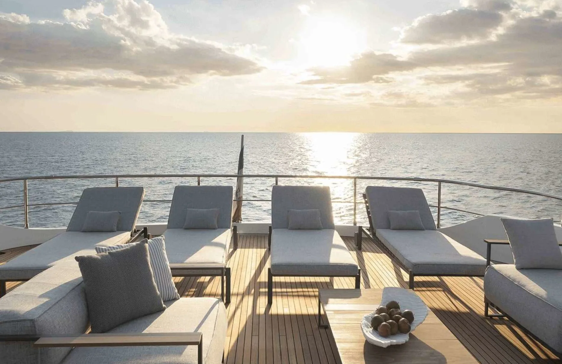 Aboard ‘Four Joys,’ the ambiance is one of refined tranquility, where every detail is designed for your comfort and delight. Unwind on the expansive sun deck, where sunpads offer a perfect spot for basking in the sun, or retreat to the beach club for moments of serene relaxation by the water. As the evening unfolds, the exterior bar becomes a hub of social activity, where laughter and conversation flow as freely as the sea breeze. With Wi-Fi connectivity, air conditioning, and at-anchor stabilizers, every aspect of life on board is tailored to ensure your utmost comfort.