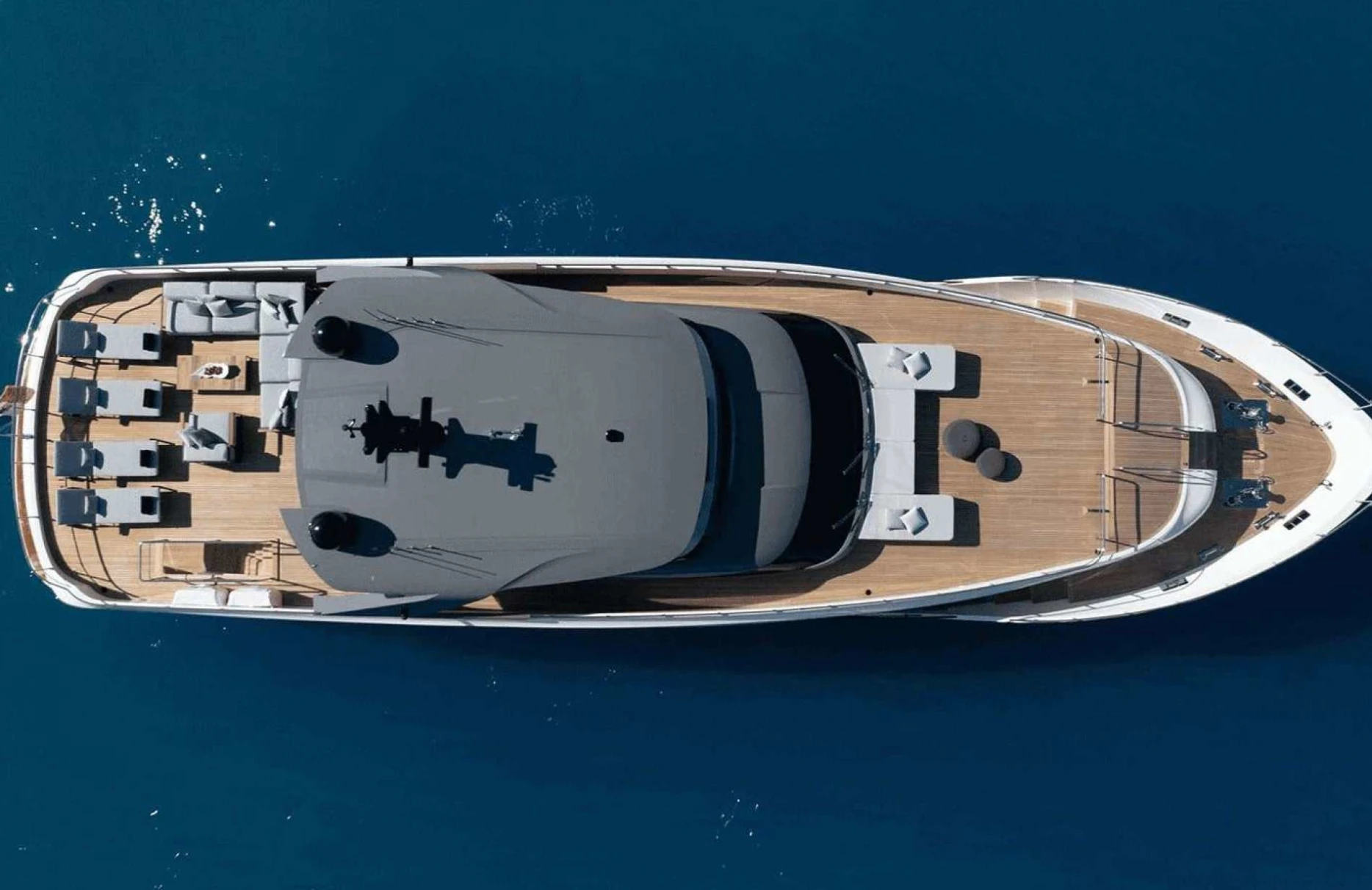 Step into a world of sophistication and elegance aboard the 100-foot motor yacht ‘Four Joys.’ Crafted in 2023 by the illustrious Maiora shipyard, this magnificent vessel seamlessly marries sleek modern design with the timeless allure of the open sea. With a cruising speed of 17 knots and a remarkable range of 1,350 nautical miles, ‘Four Joys’ offers an invitation to explore the Mediterranean’s most enchanting locales. Whether you’re savoring the sun-kissed coastlines or delving into the rich cultural tapestry ashore, every moment aboard promises to be an unforgettable escape.