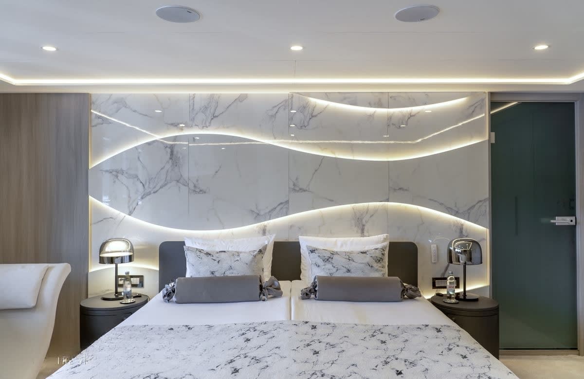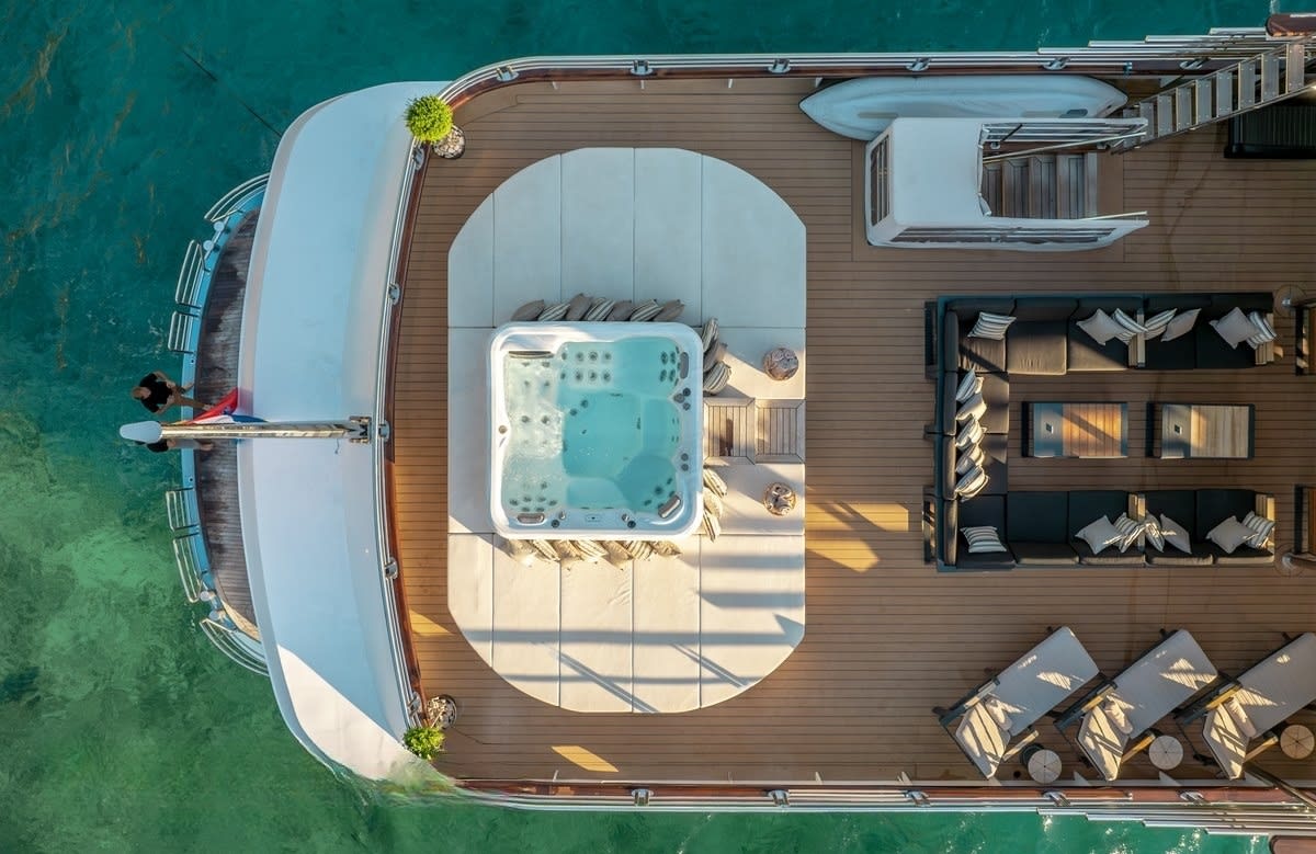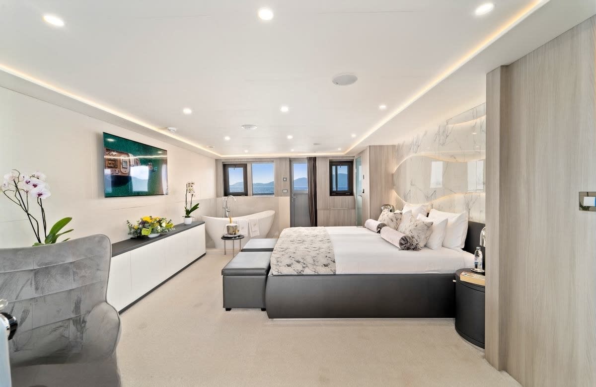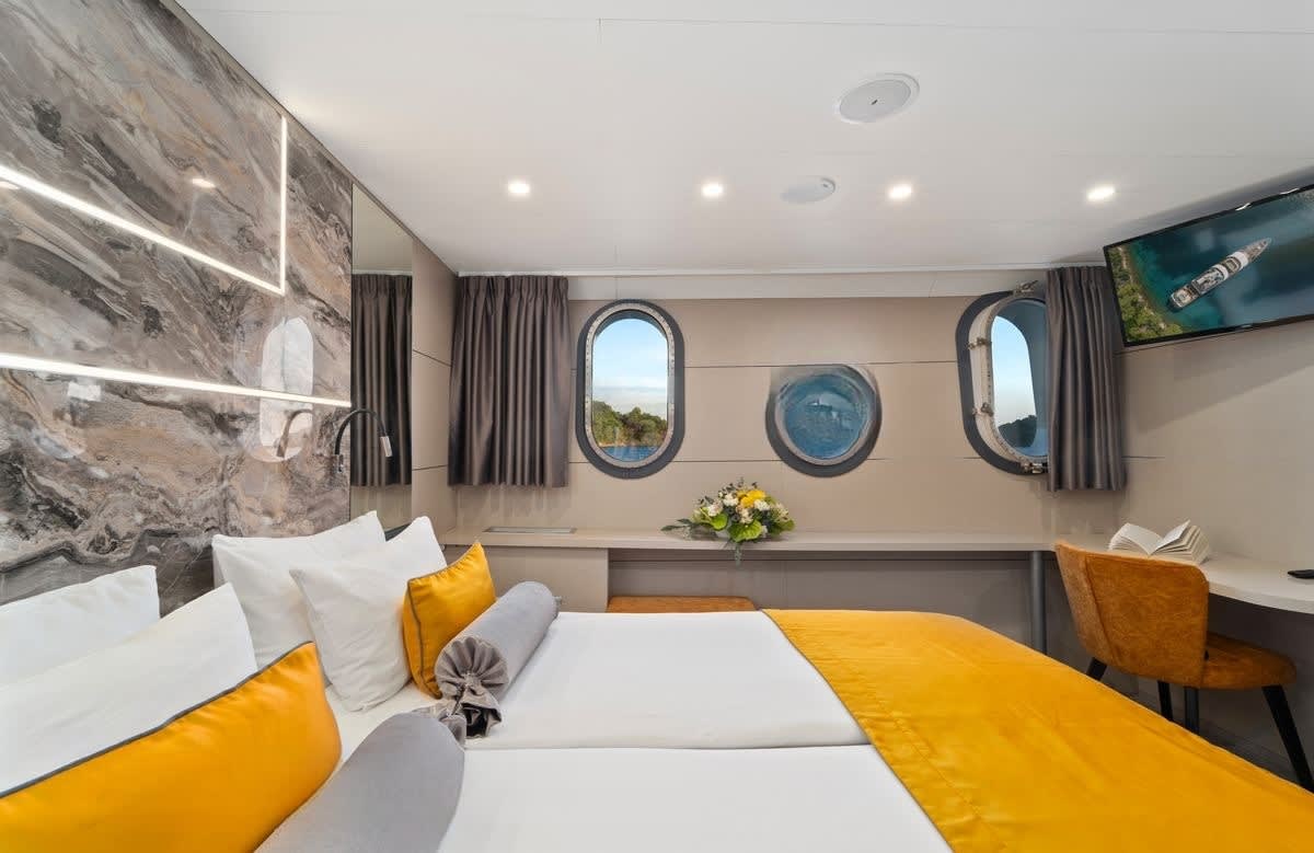Awaken to the gentle sway of the ocean in one of ‘Freedom’s’ eight sumptuous cabins, including a master suite on the main deck. With accommodations for 22 passengers, the yacht offers an intimate yet spacious retreat. Each room, from the VIP cabin to the elegant double cabins, is a haven of tranquility, where the soft linens and meticulous design create a space of unparalleled comfort. The gentle murmur of the sea provides a soothing backdrop, ensuring restful nights and invigorating mornings.