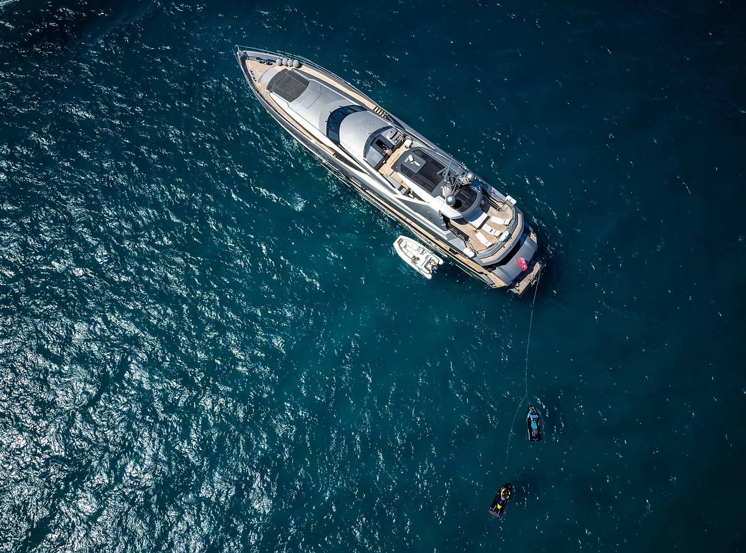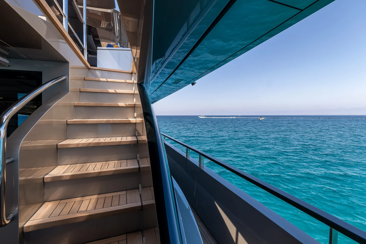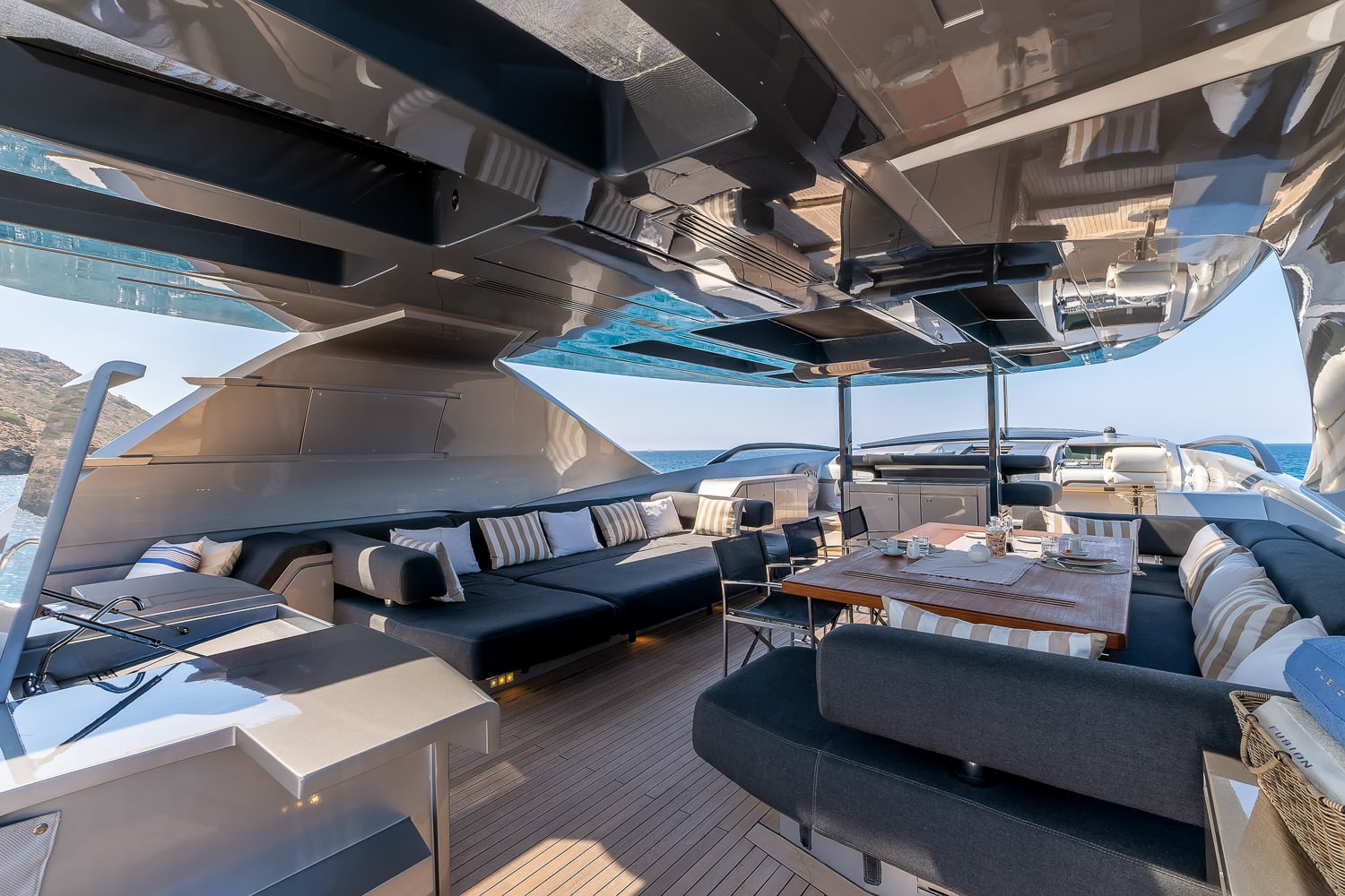 On Fusion, each day unfolds with new possibilities for relaxation and enjoyment. Begin your mornings on the sun-drenched decks, where sunpads invite you to bask in the warmth of the day. As the afternoon sun reaches its peak, retreat to the refreshing embrace of the deck jacuzzi, where the soothing bubbles and breathtaking views create an oasis of tranquility. Evenings are a time for social gatherings in the tastefully appointed indoor spaces, where the ambiance is both inviting and sophisticated. Stay connected with seamless Wi-Fi access, or disconnect entirely, as the stabilizers ensure smooth sailing whether you’re at anchor or underway. The climate-controlled interiors provide an ideal retreat after a day of sun and sea.